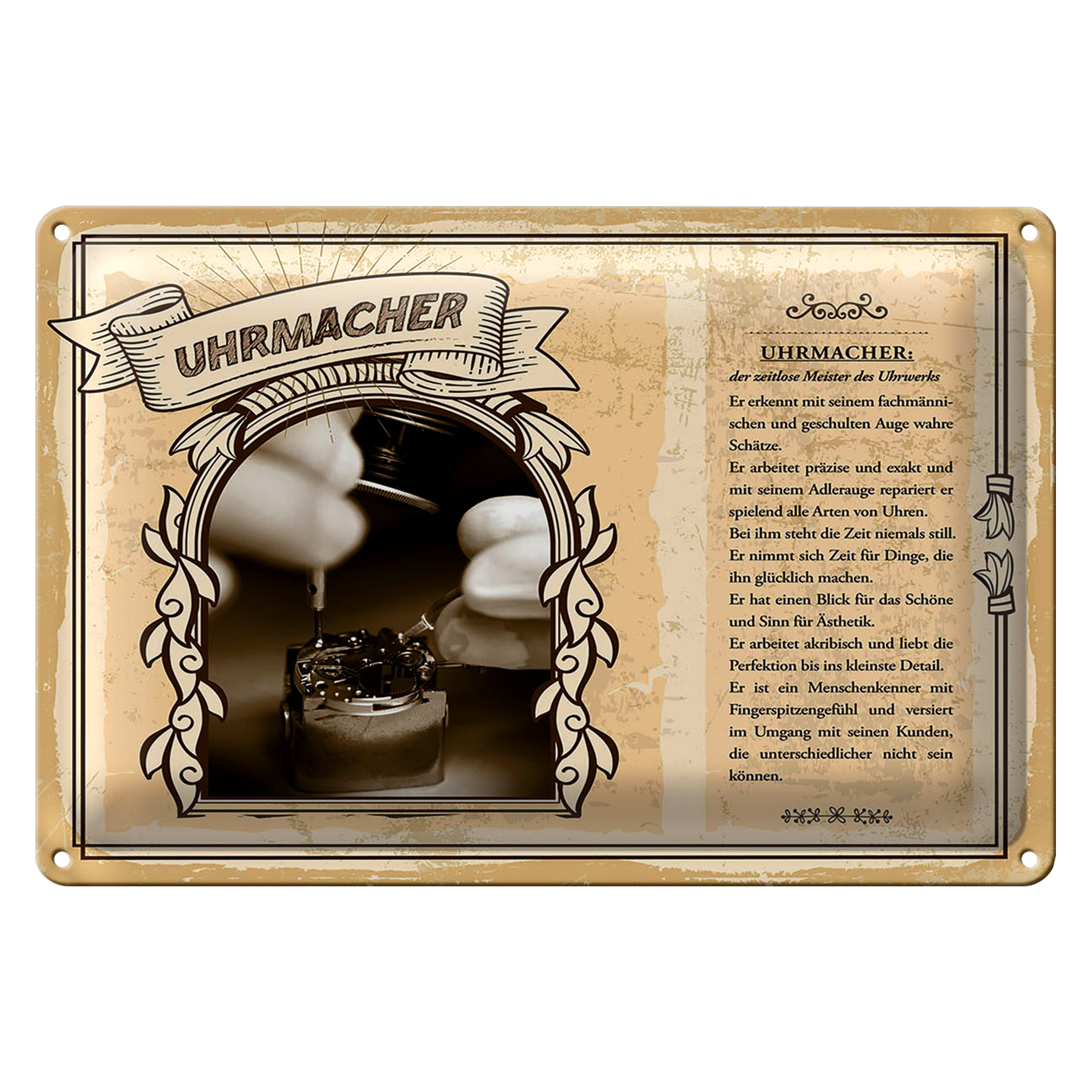 Blechschild Berufe Uhrmacher Meister zeitlos 30x20cm