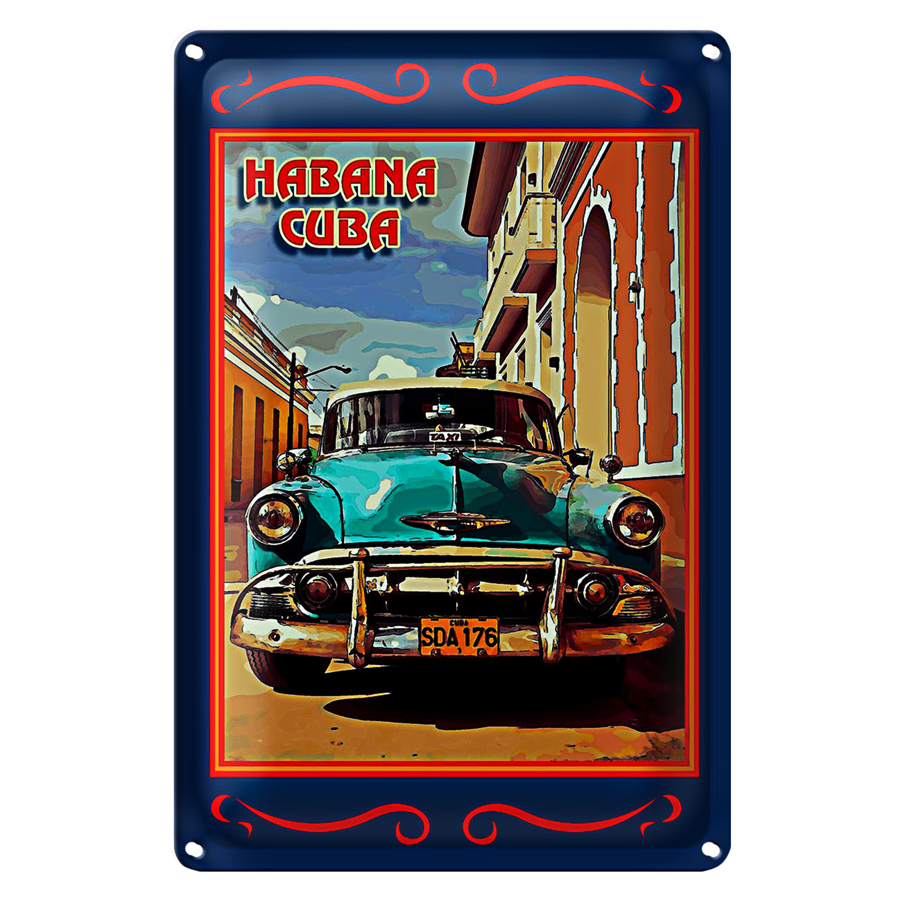 Blechschild Cuba 20x30cm Habana Cuba blaues Auto