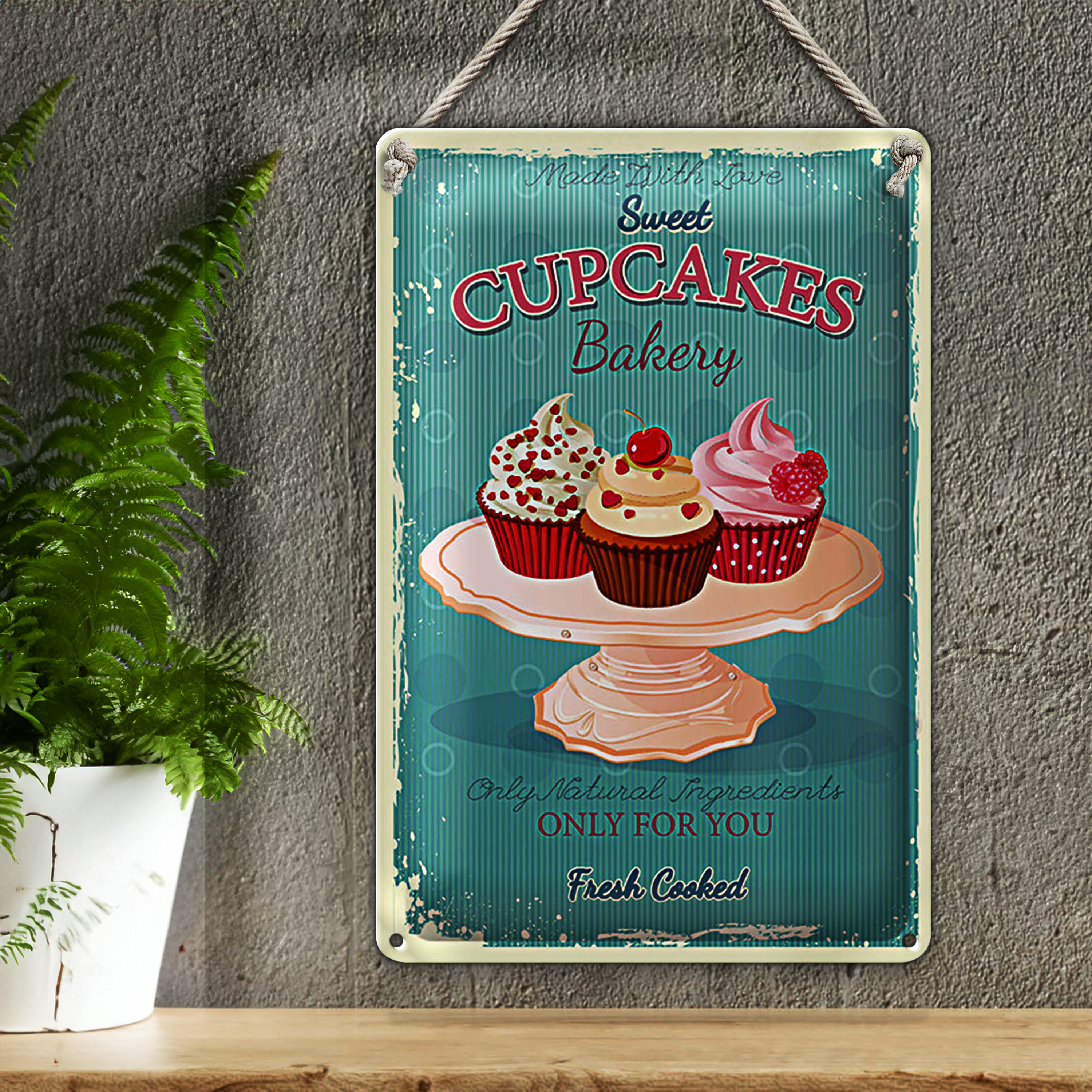 Blechschild Cupcakes 20x30cm made with love sweet bakery