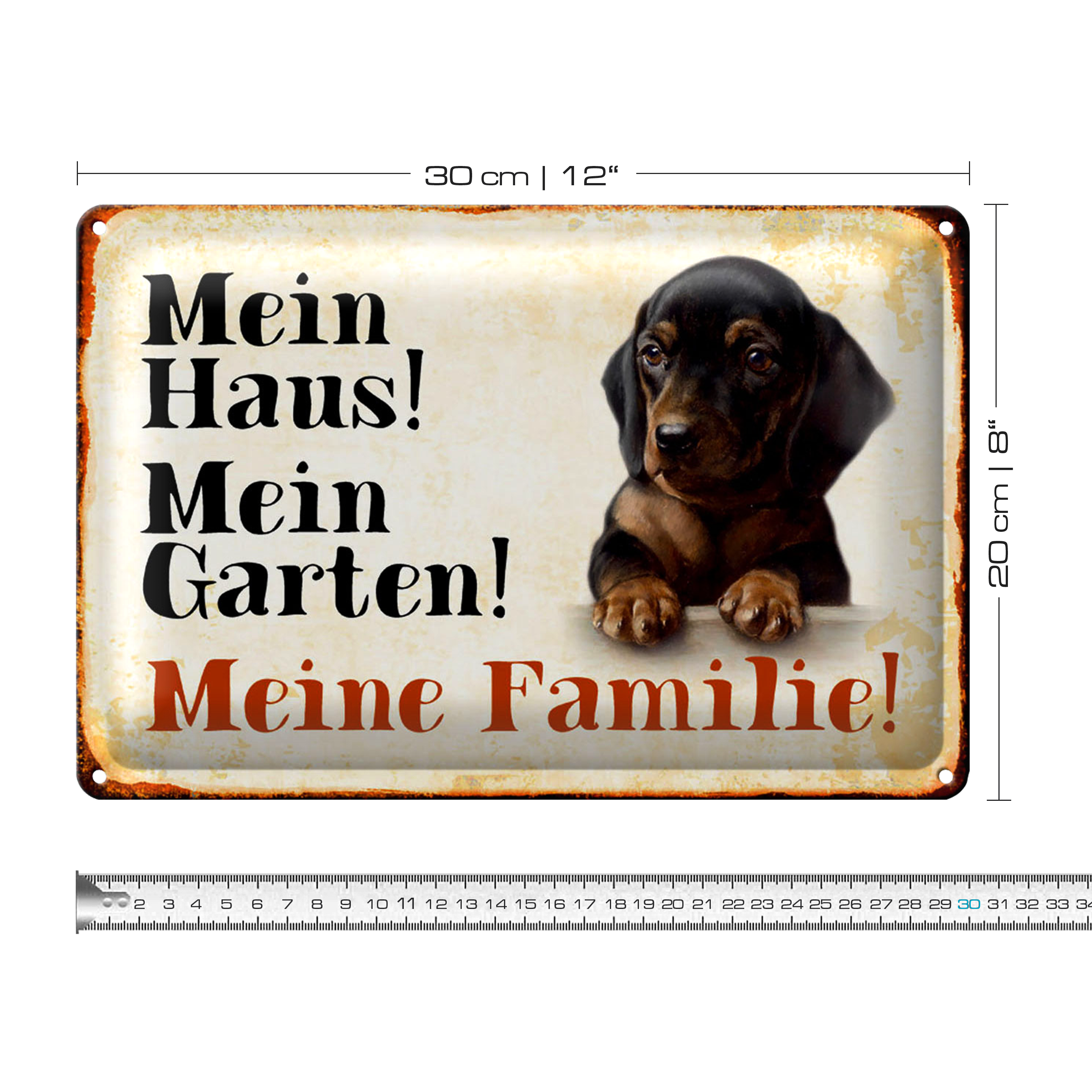 Blechschild Dackel 30x20cm mein Haus mein Garten Familie