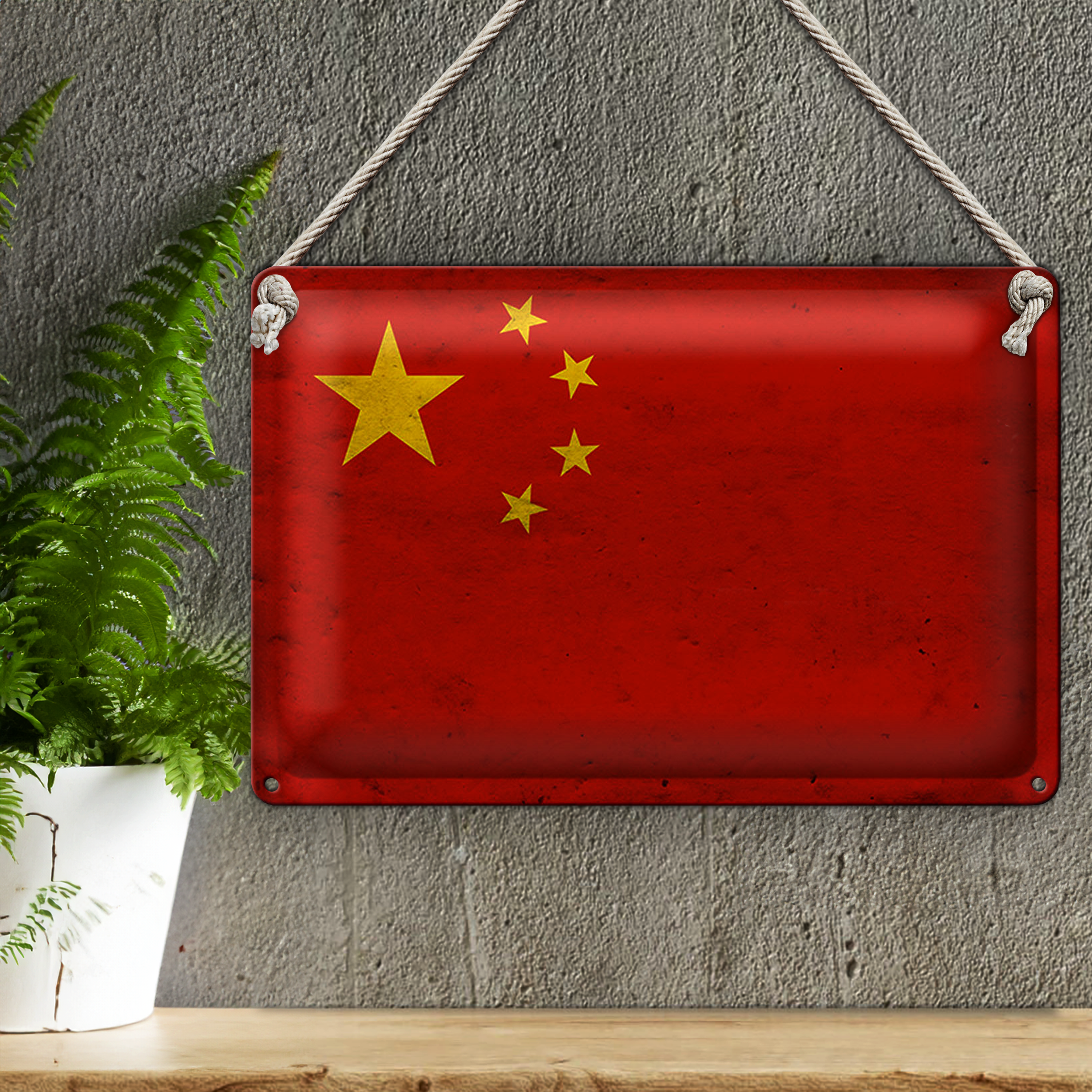 Blechschild Flagge 30x20cm China Fahne Wanddeko