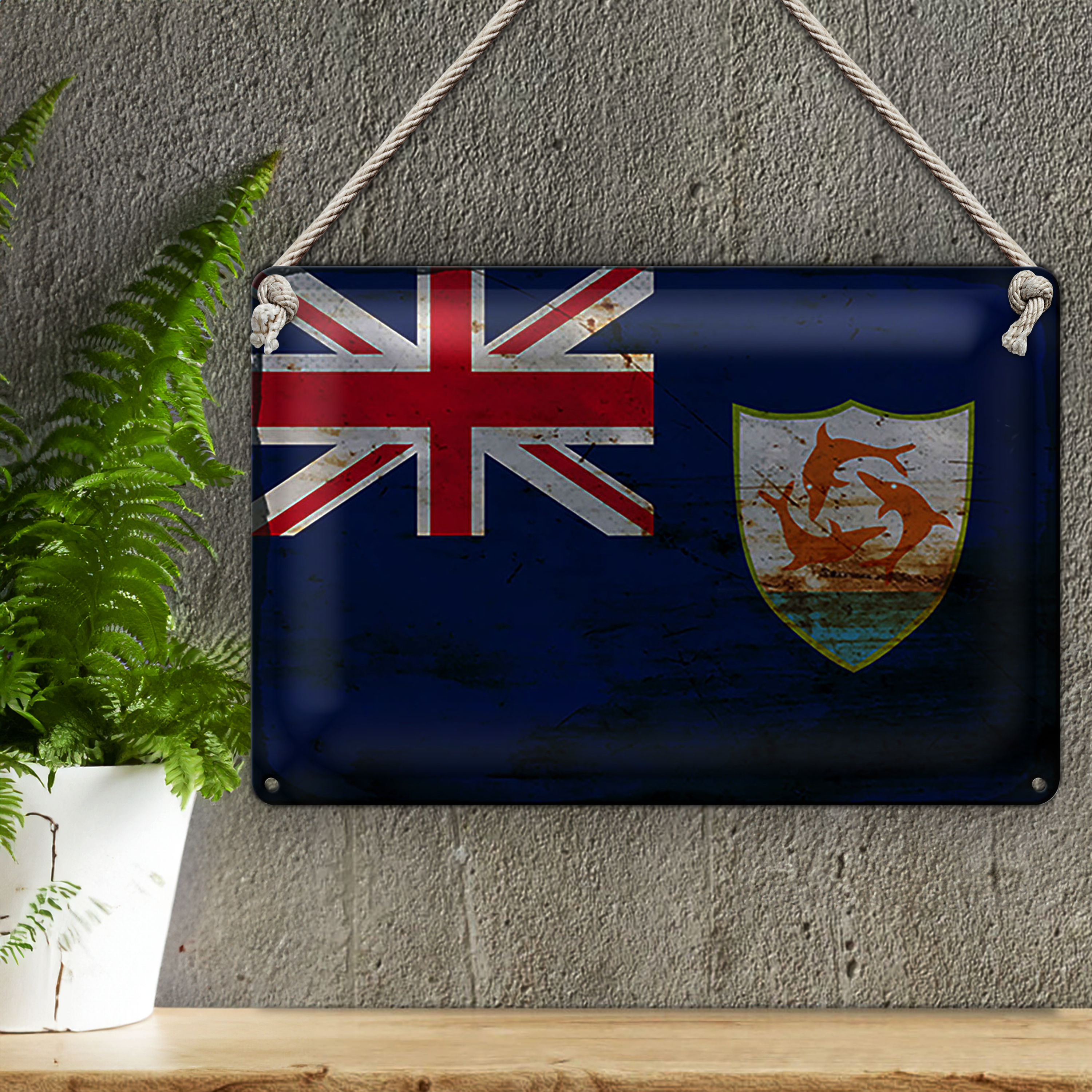 Blechschild Flagge Anguilla 30x20cm Flag of Anguilla Rost