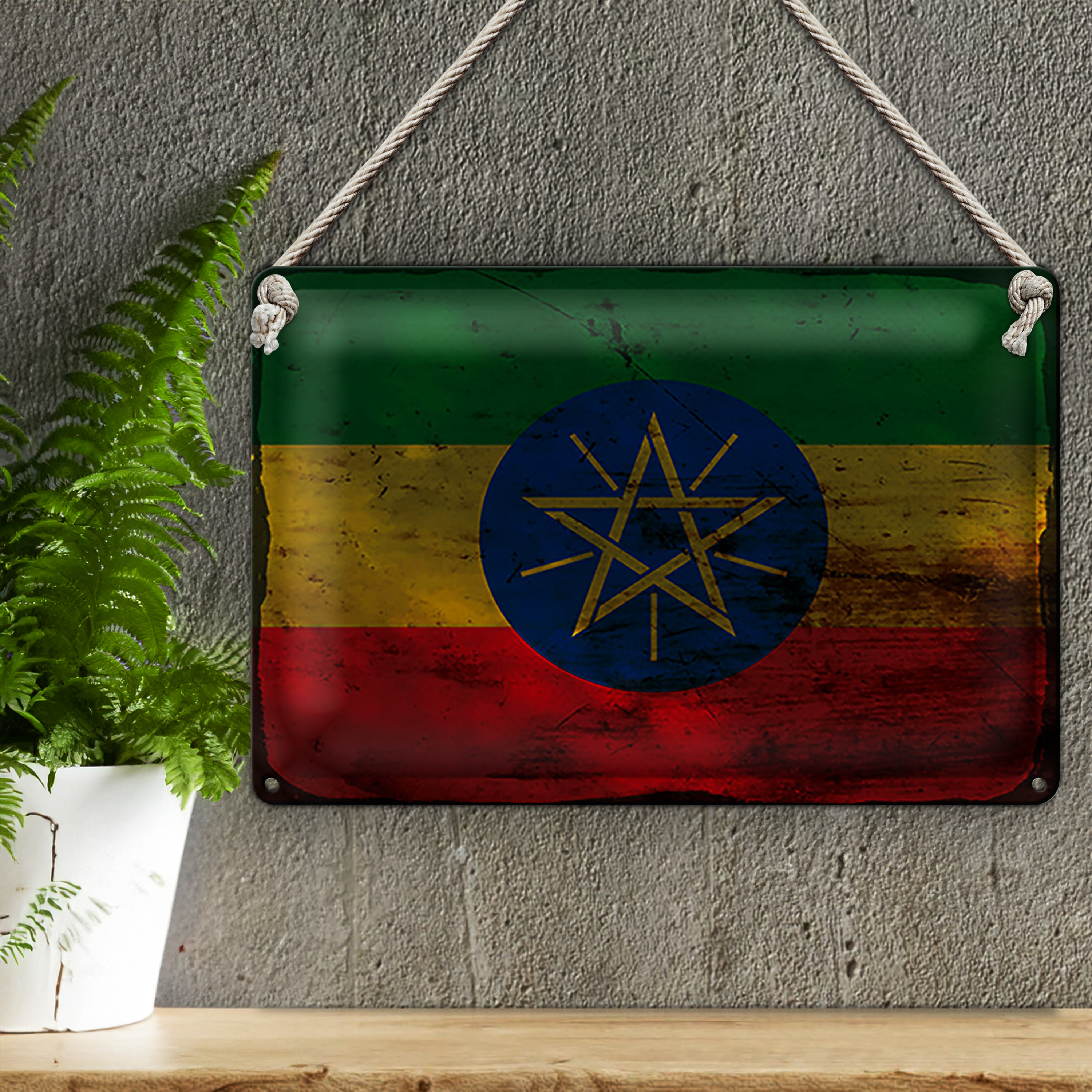 Blechschild Flagge Äthiopien 30x20cm Flag Ethiopia Rost