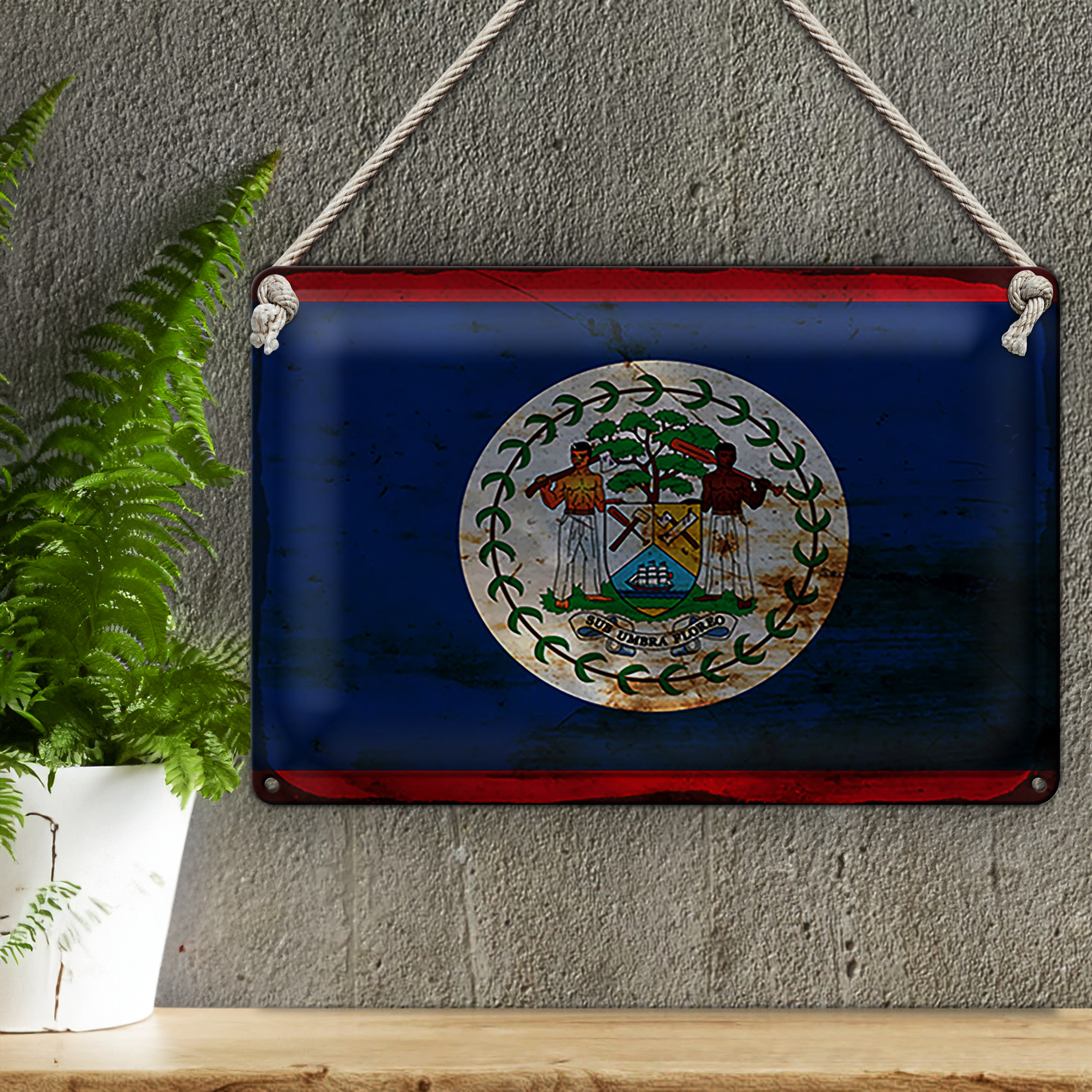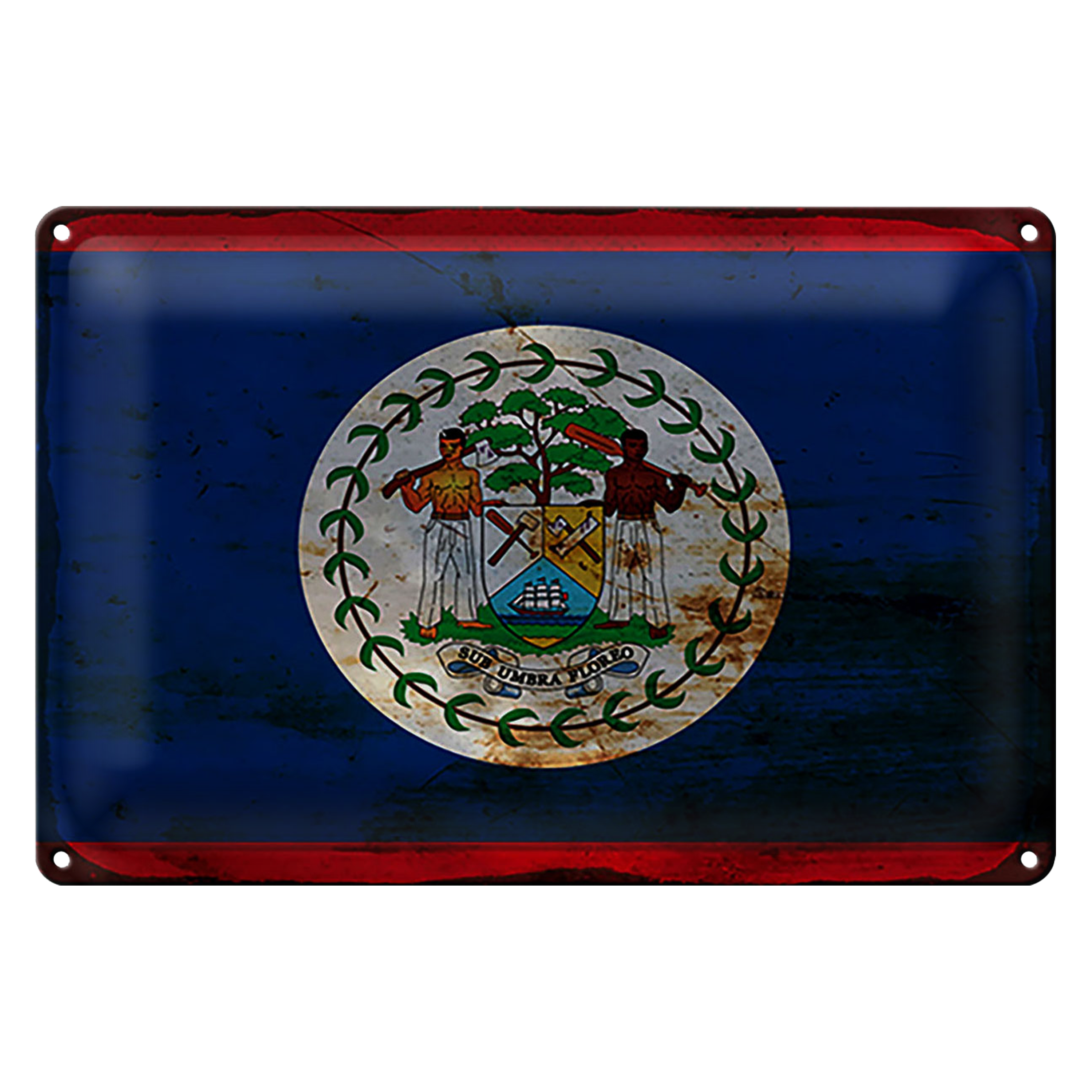 Blechschild Flagge Belize 30x20cm Flag of Belize Rost
