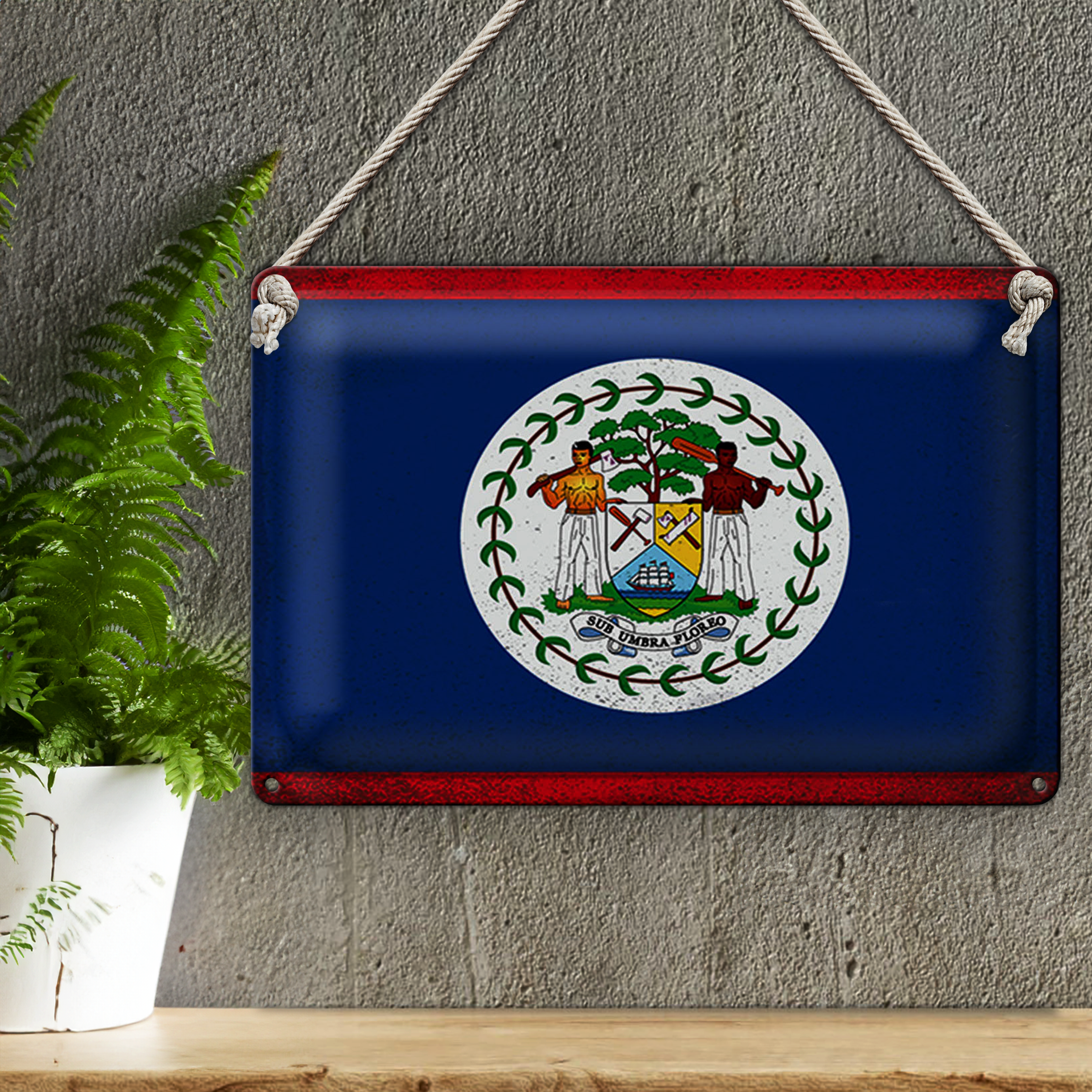 Blechschild Flagge Belize 30x20cm Flag of Belize Vintage