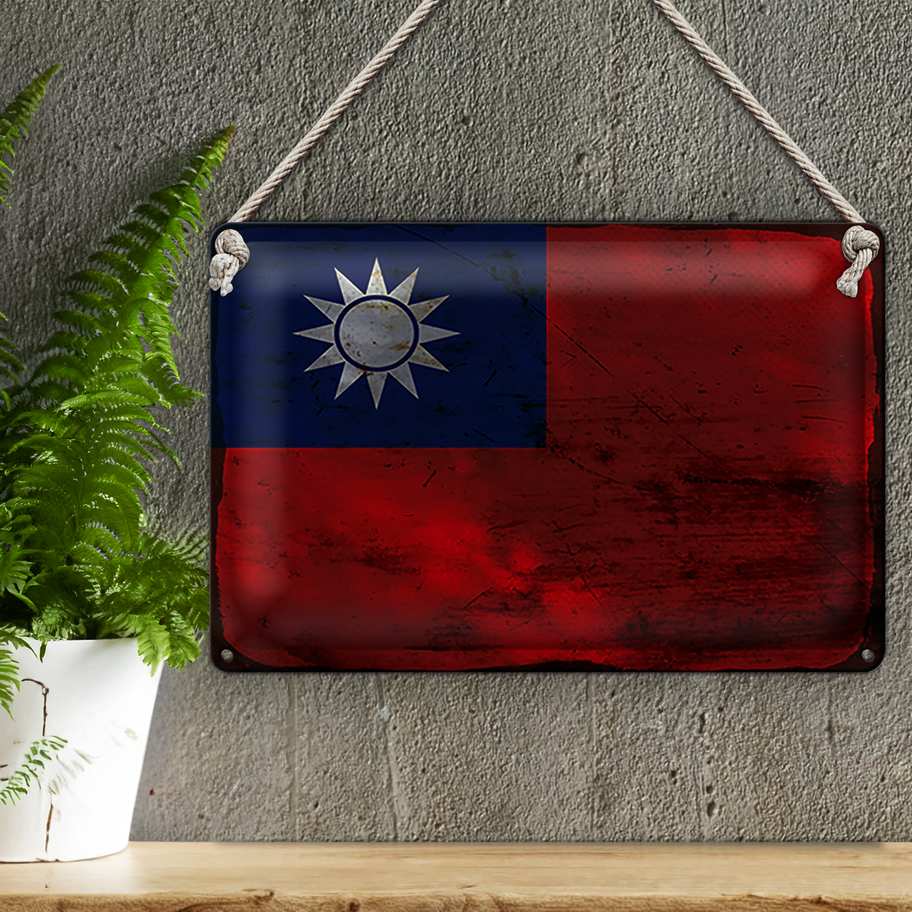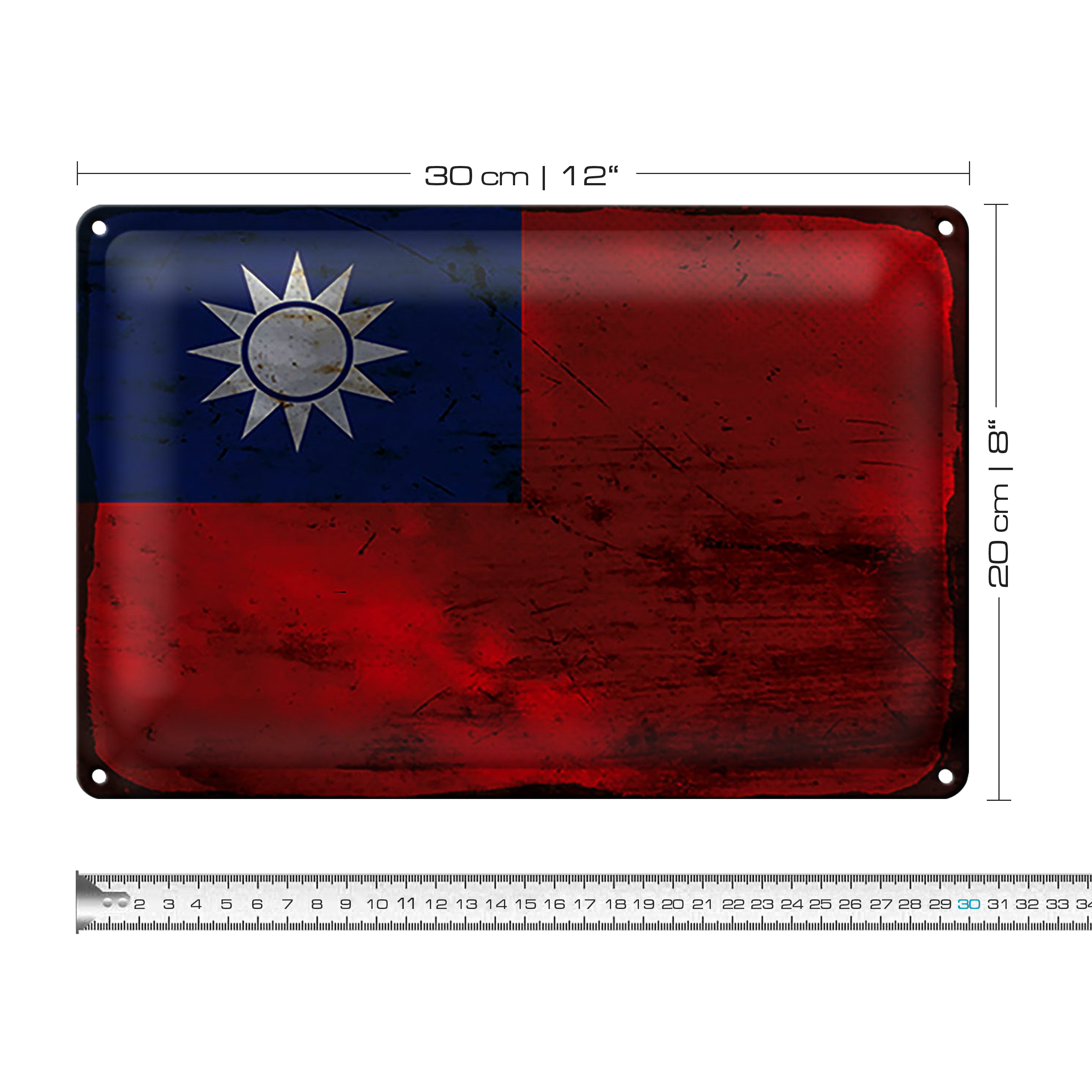 Blechschild Flagge China 30x20cm Flag of Taiwan Rost