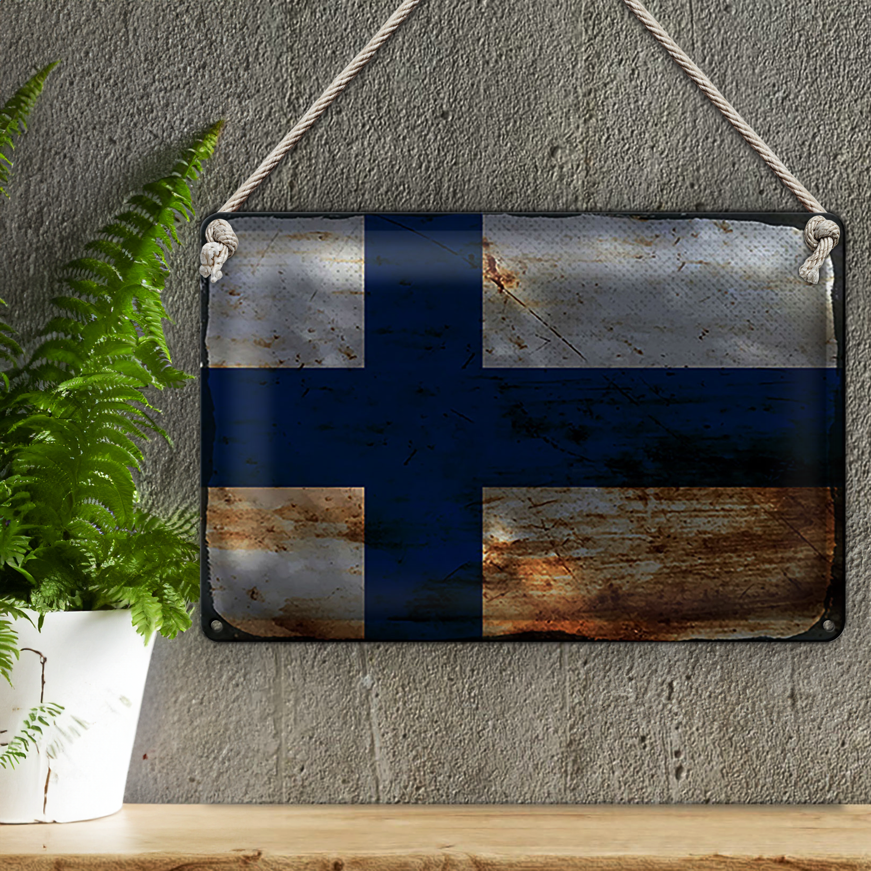Blechschild Flagge Finnland 30x20cm Flag of Finland Rost