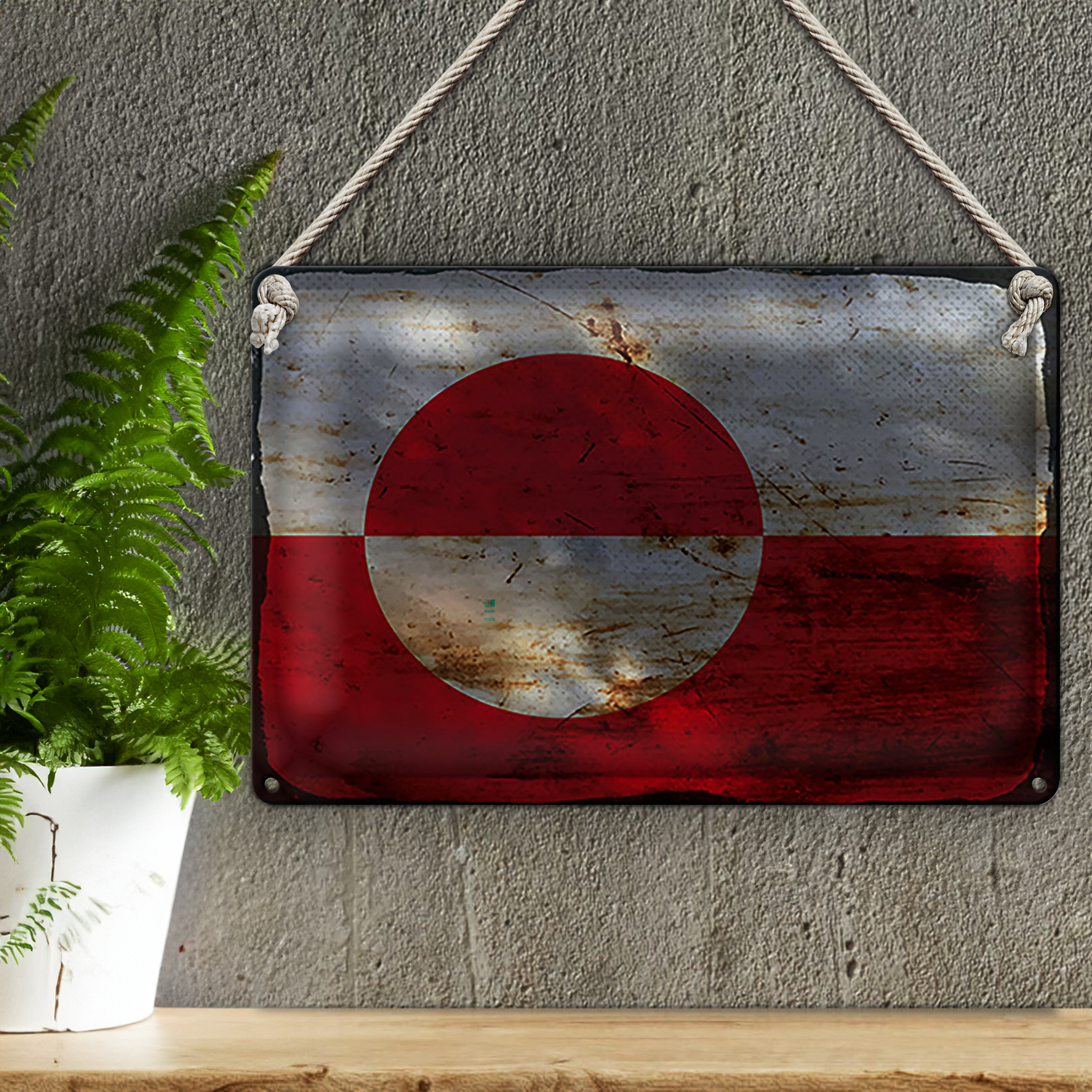 Blechschild Flagge Grönland 30x20cm Flag Greenland Rost