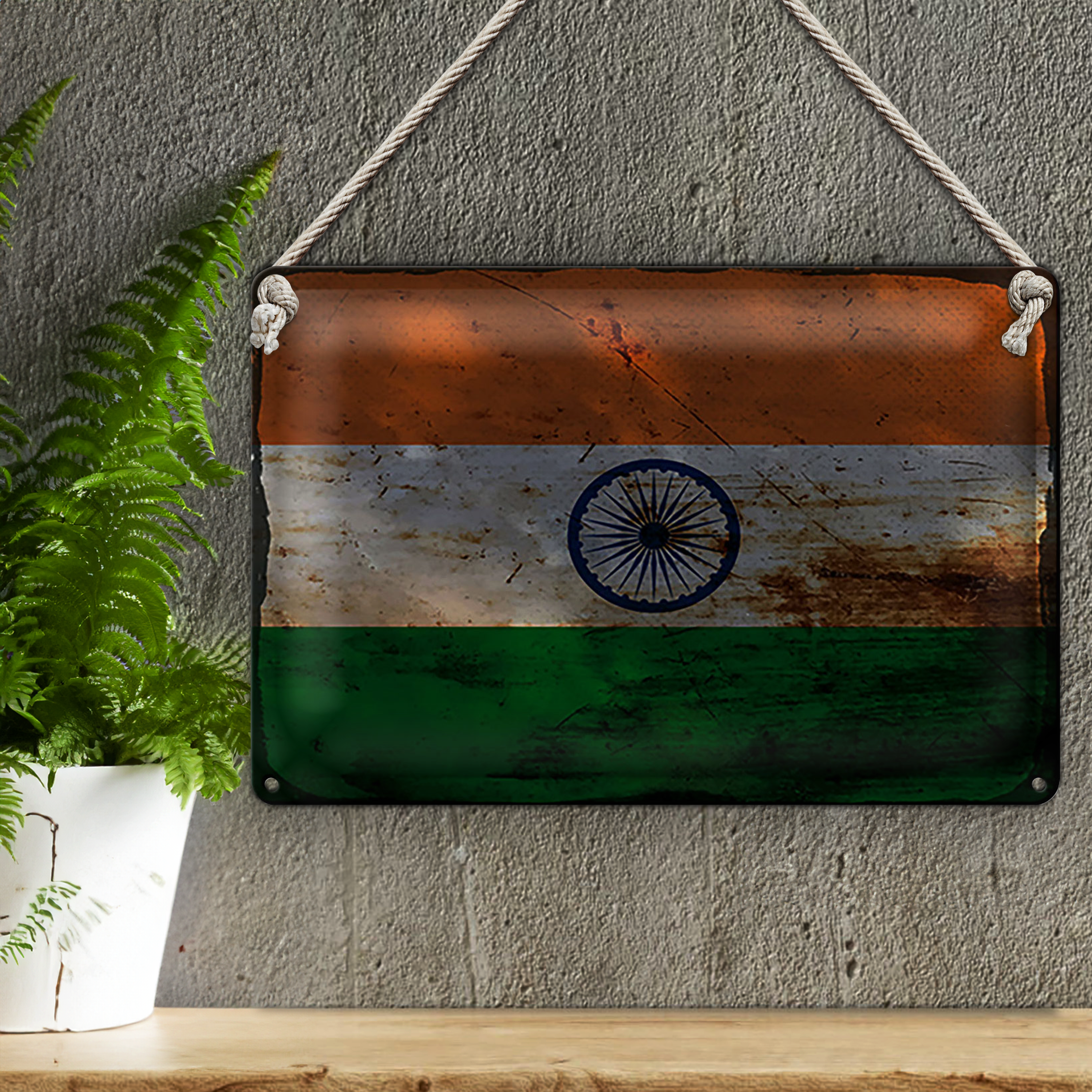 Blechschild Flagge Indien 30x20cm Flag of India Rost