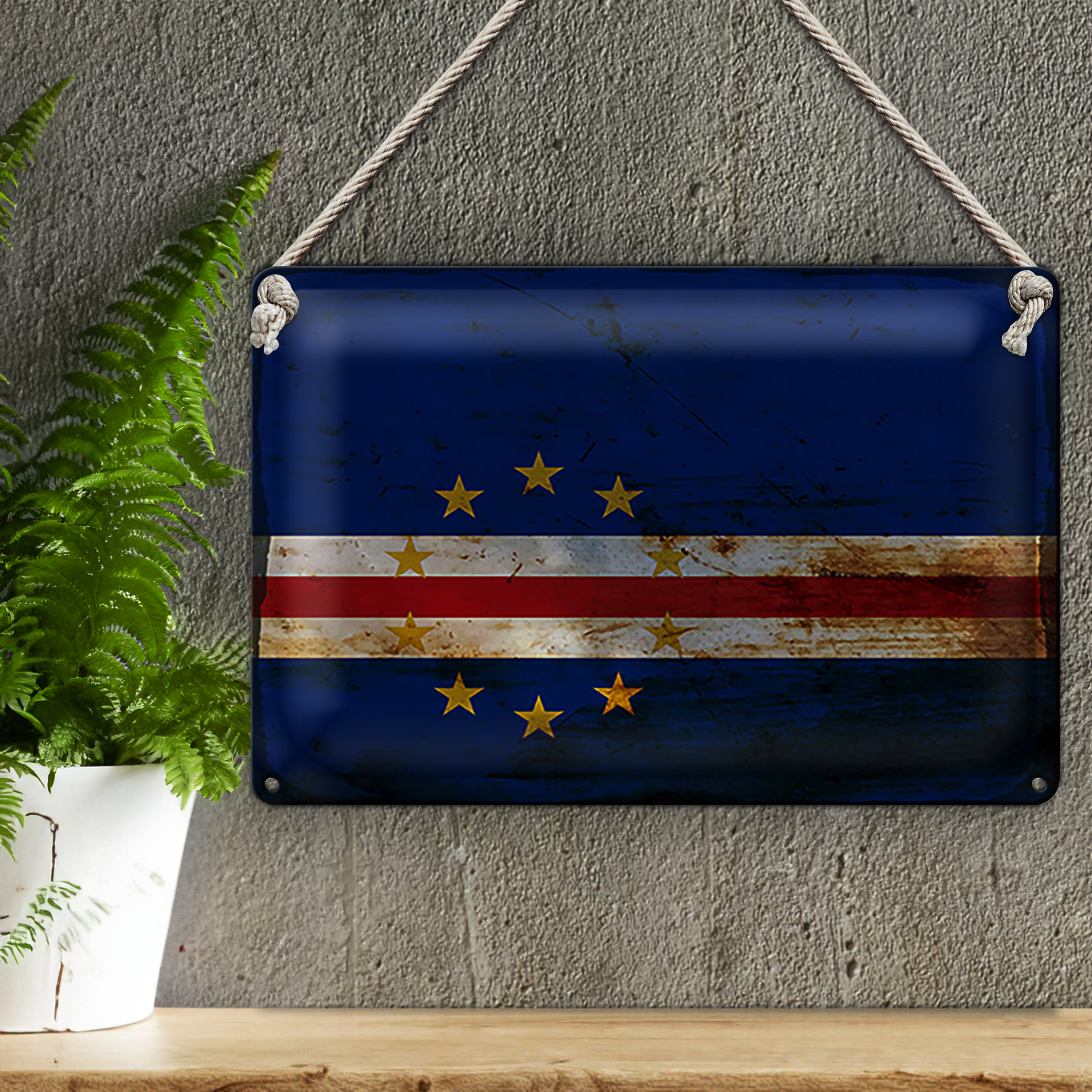 Blechschild Flagge Kap Verde 30x20cm Flag Cape Verde Rost