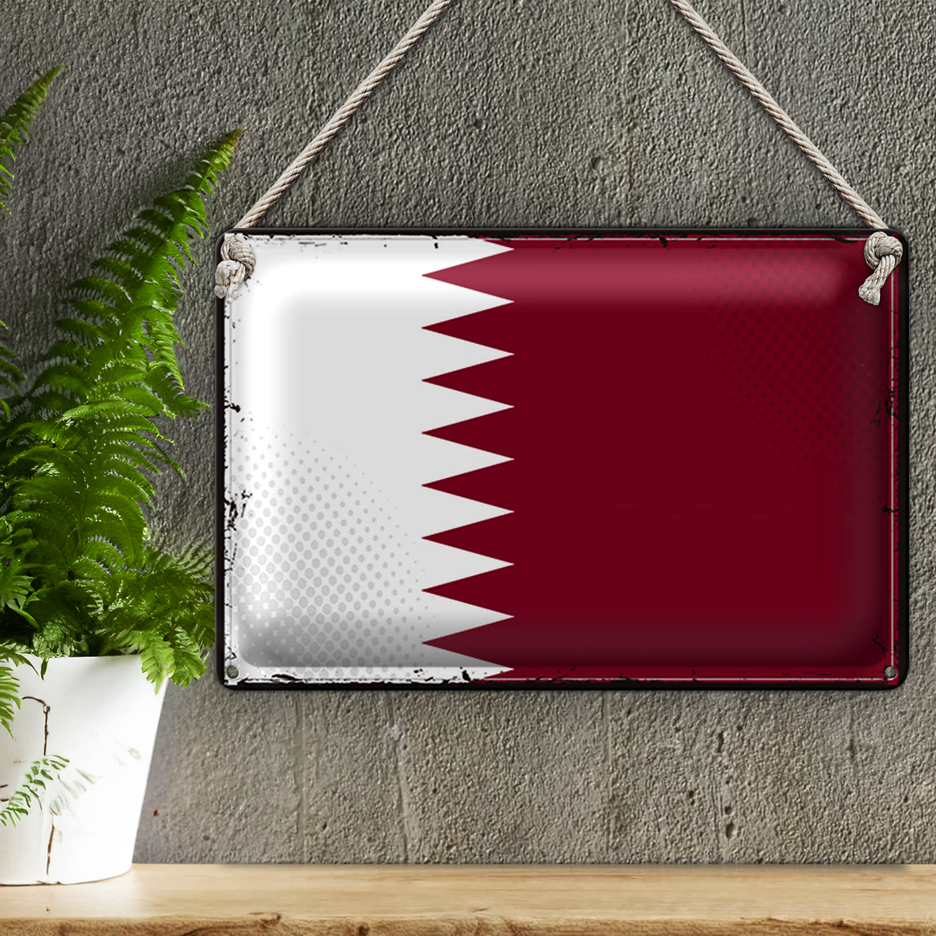 Blechschild Flagge Katar 30x20cm Retro Flag of Qatar