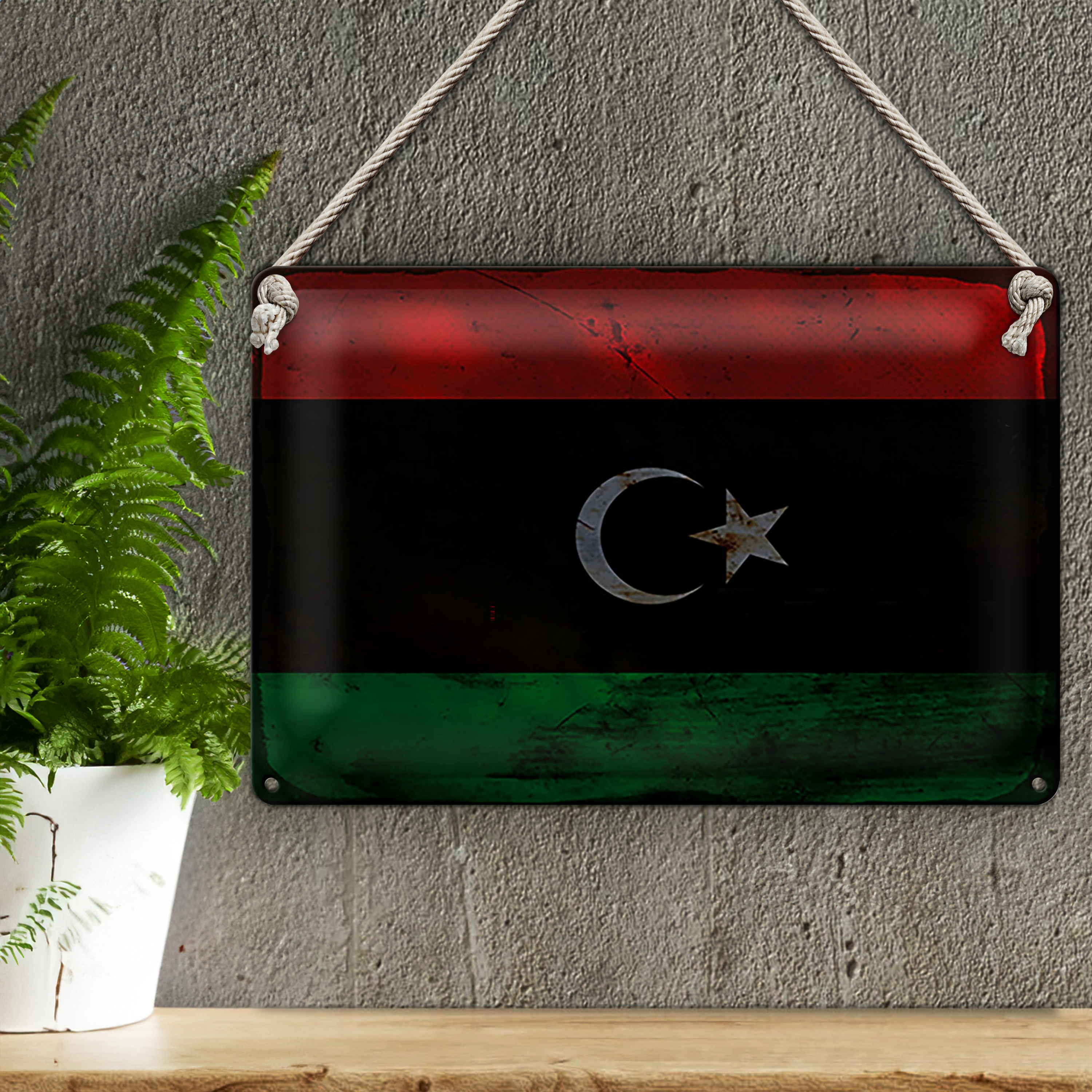 Blechschild Flagge Libyen 30x20cm Flag of Libya Rost