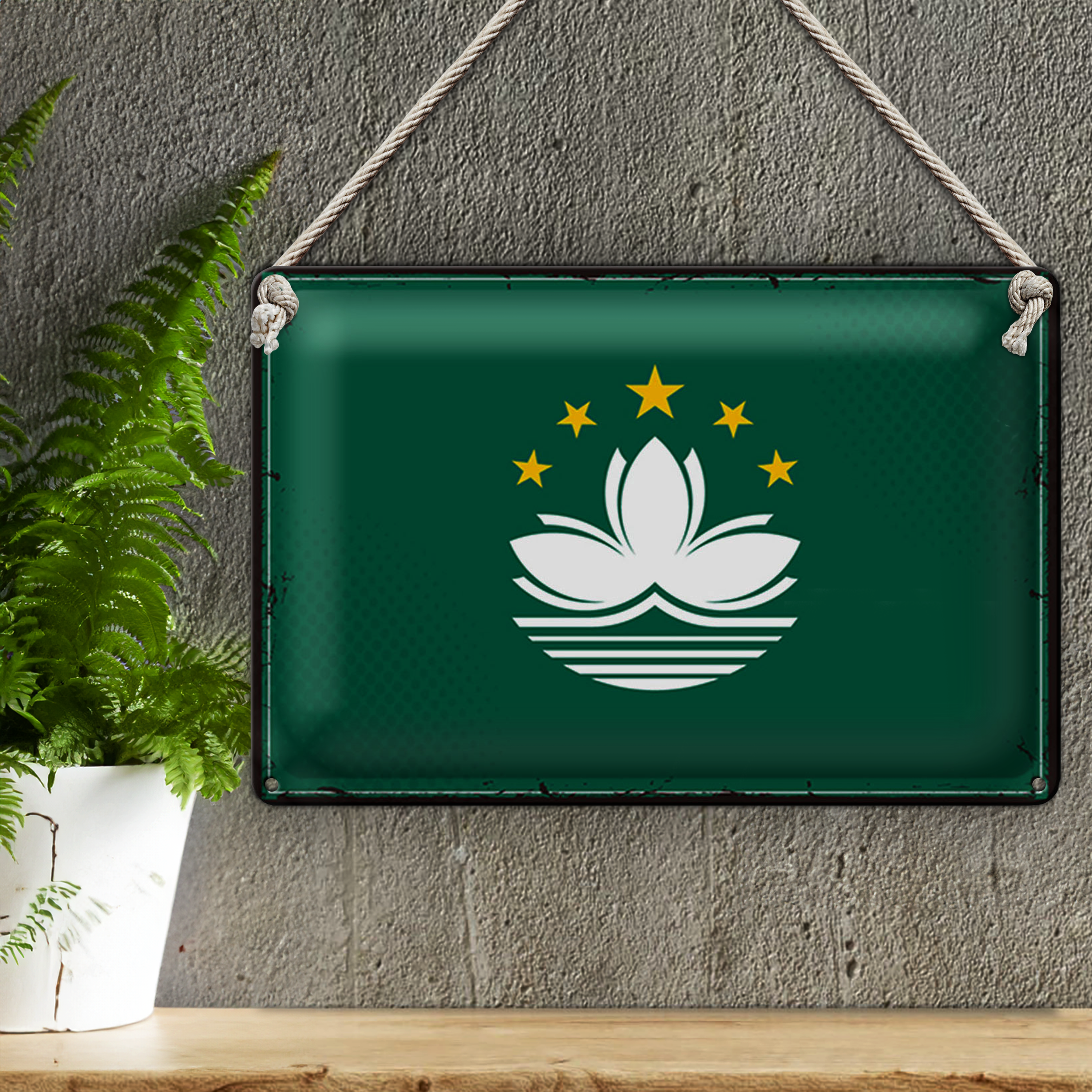 Blechschild Flagge Macau 30x20cm Retro Flag of Macau