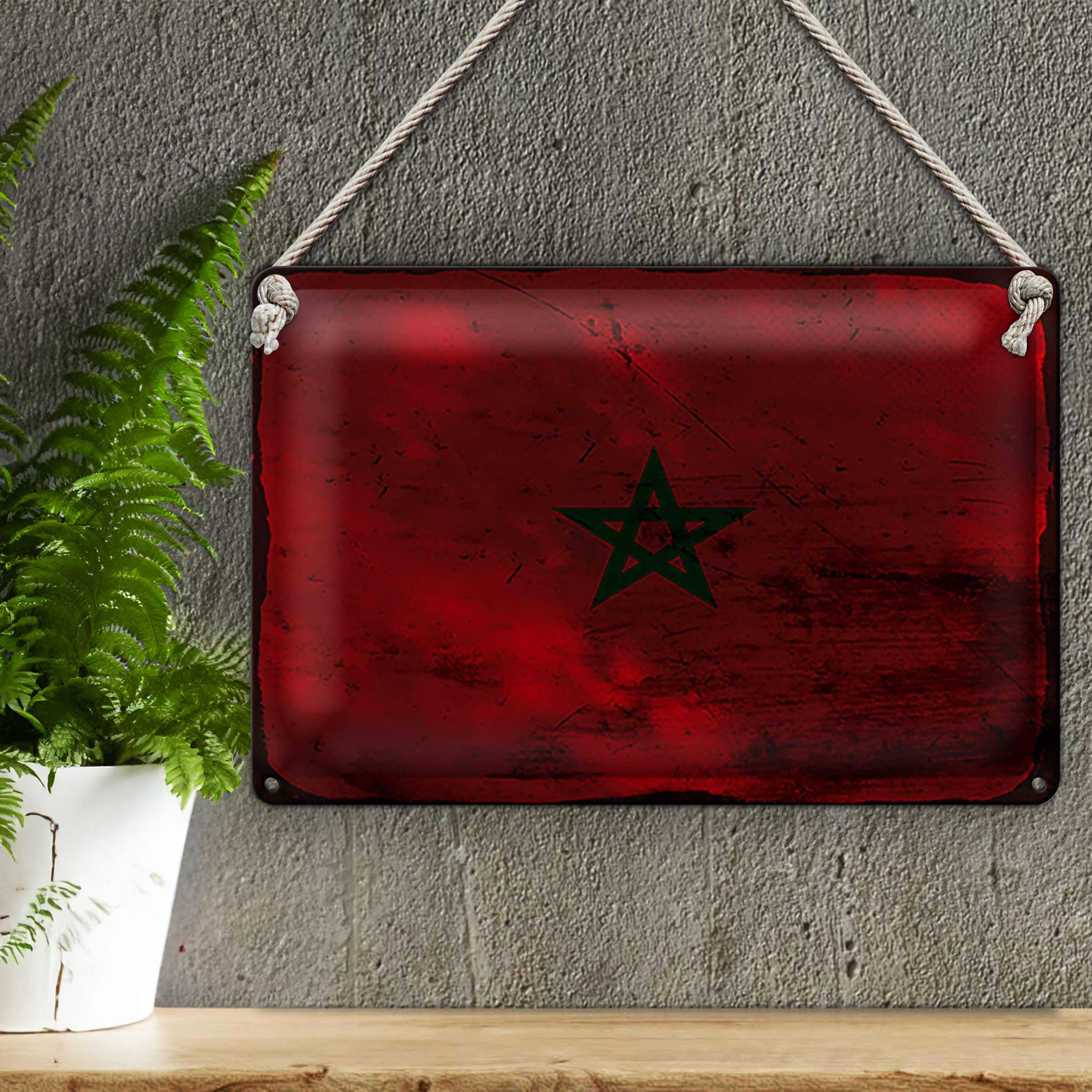 Blechschild Flagge Marokko 30x20cm Flag of Morocco Rost