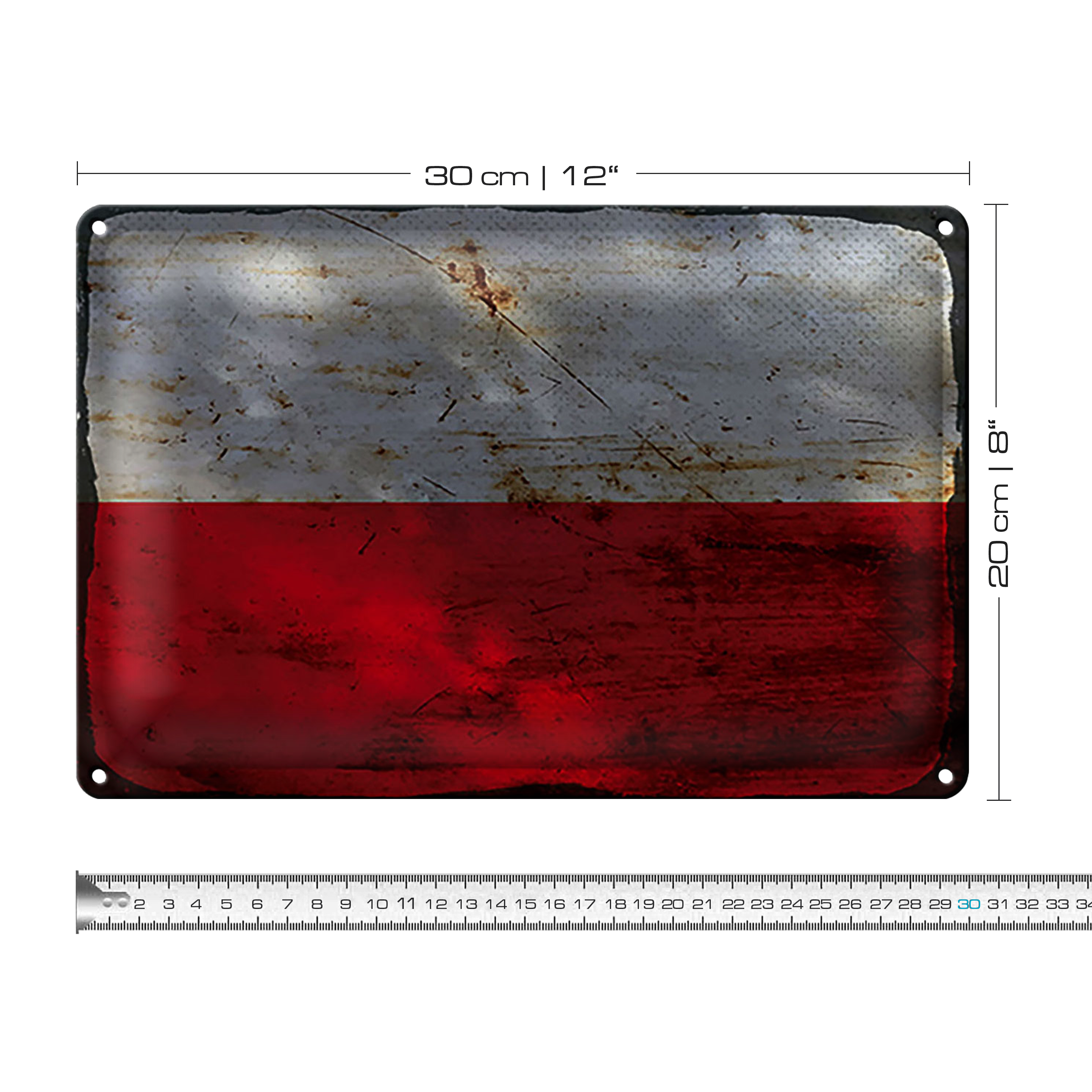 Blechschild Flagge Polen 30x20cm Flag of Poland Rost