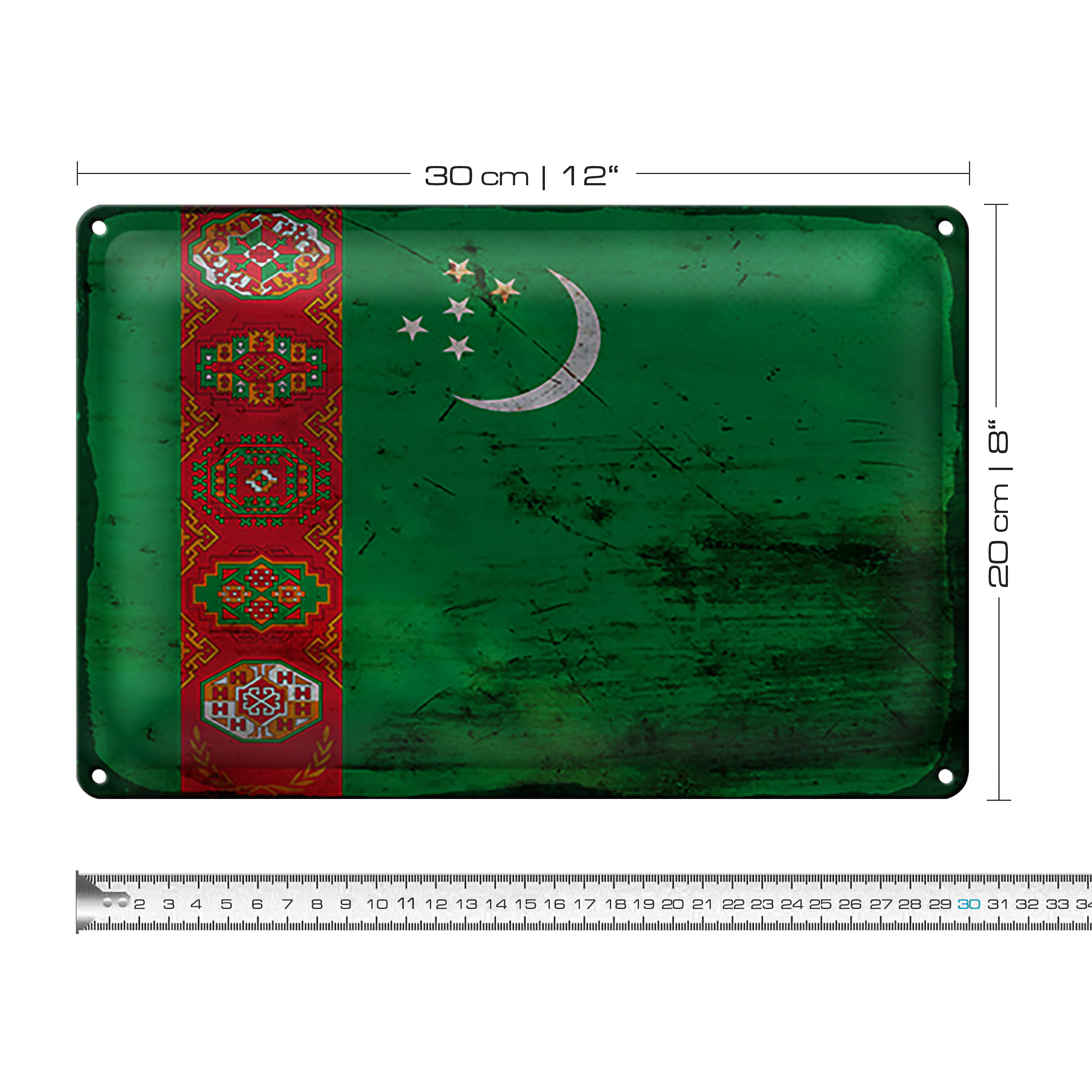 Blechschild Flagge Turkmenistan 30x20cm Turkmenistan Rost