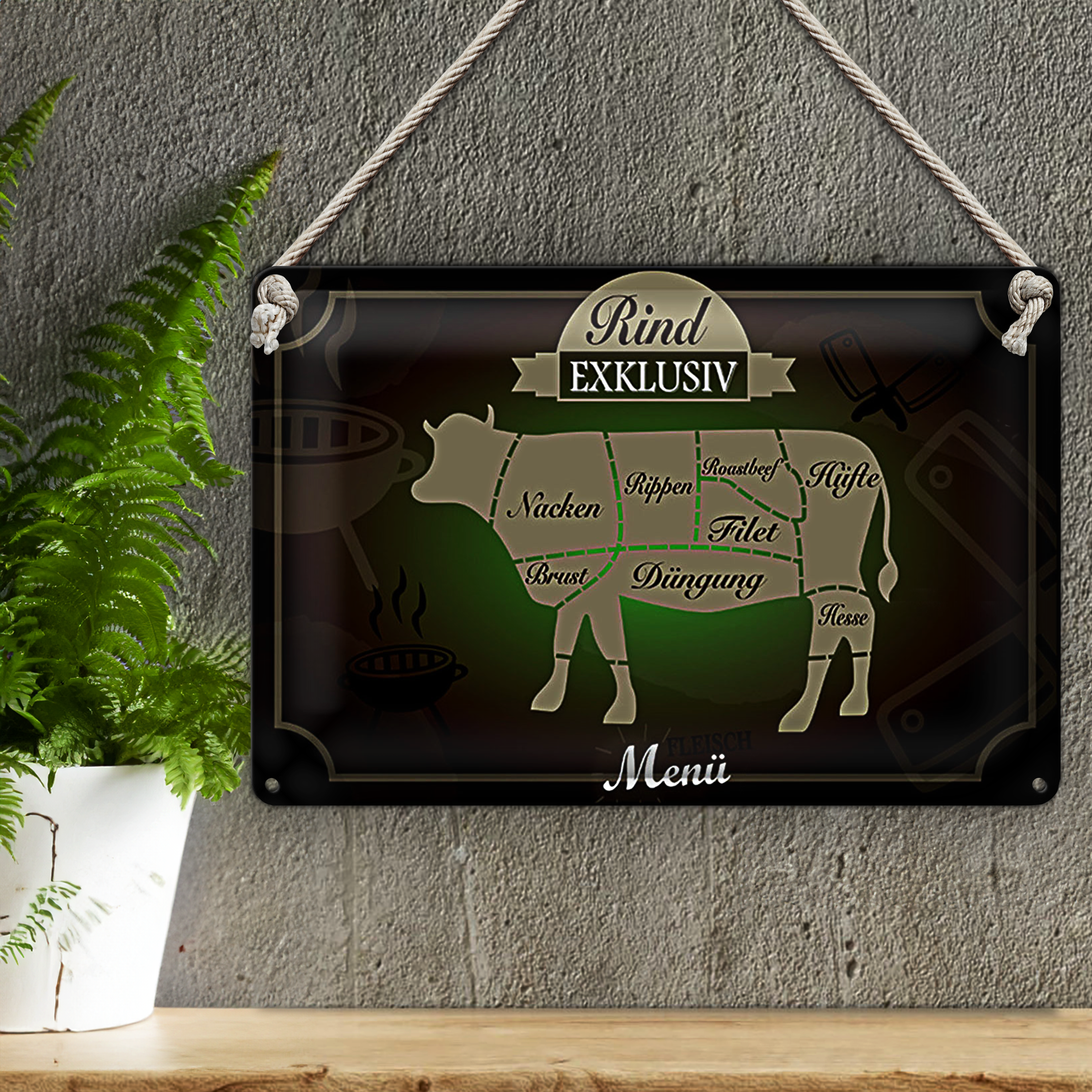 Blechschild Fleisch 30x20cm Schnitte Rind exklusiv Menü