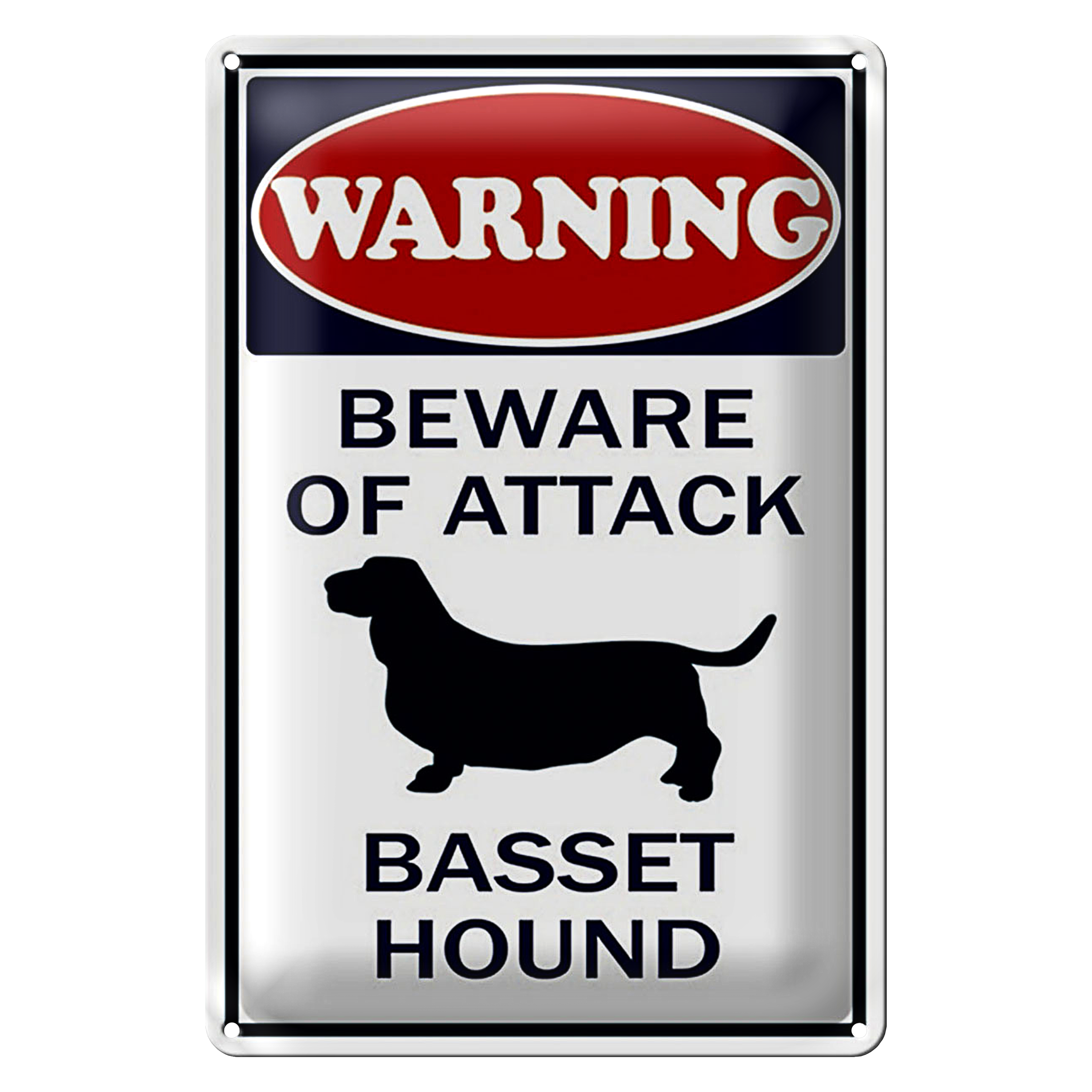 Blechschild Hinweis 20x30cm beware of attack Basset Hound