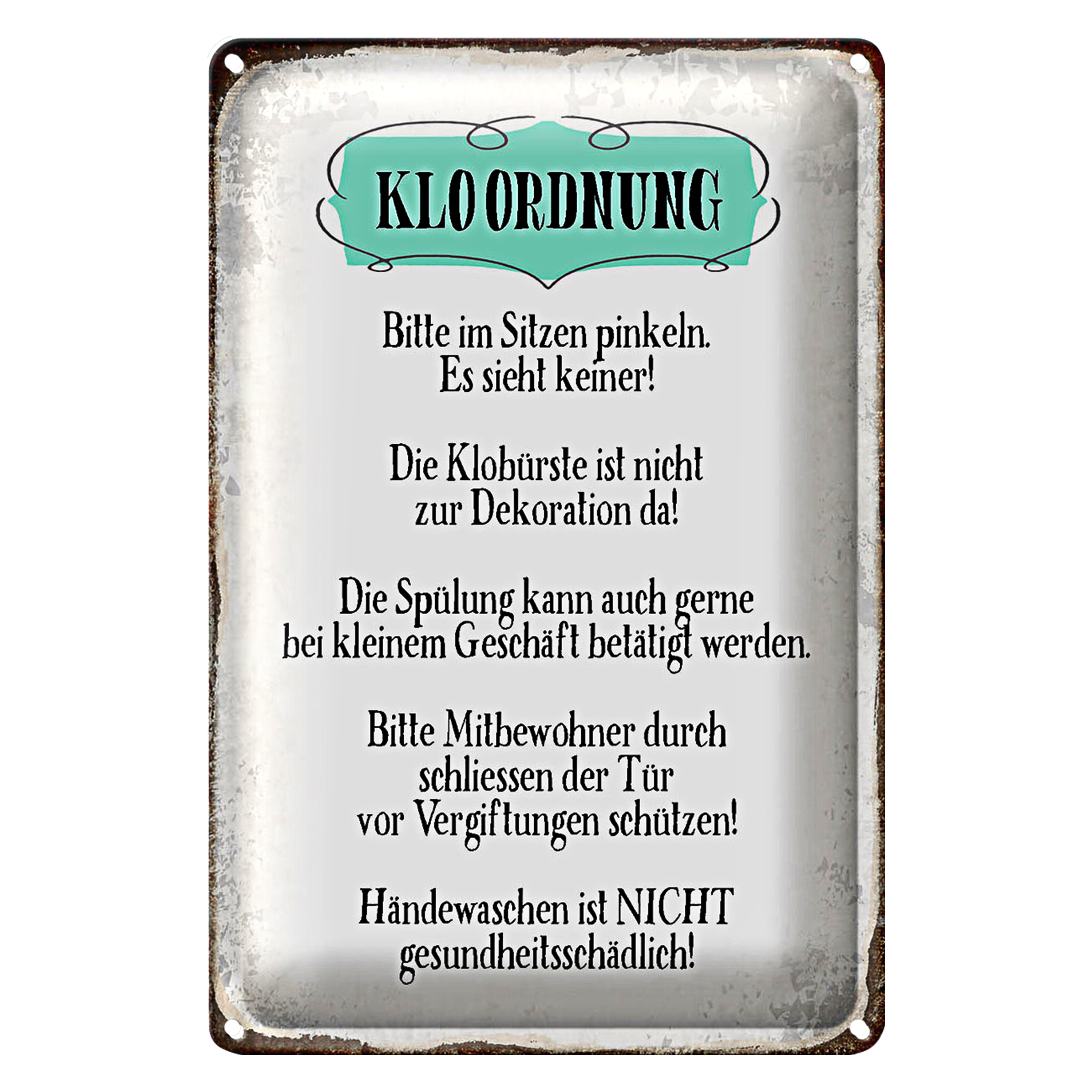 Blechschild Hinweis 20x30cm Klo Ordnung die Klobürste