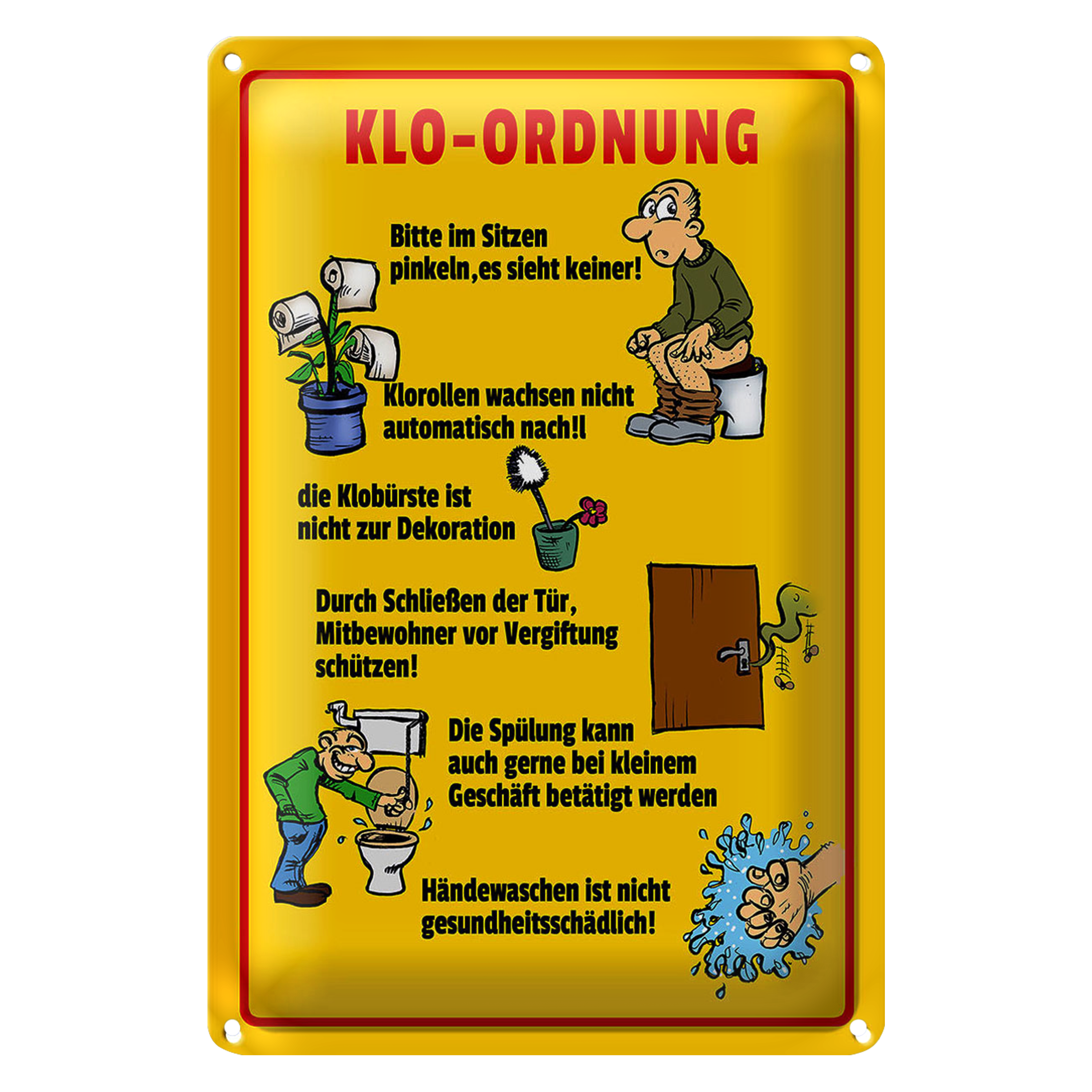 Blechschild Hinweis 20x30cm Klo Ordnung Wandschild