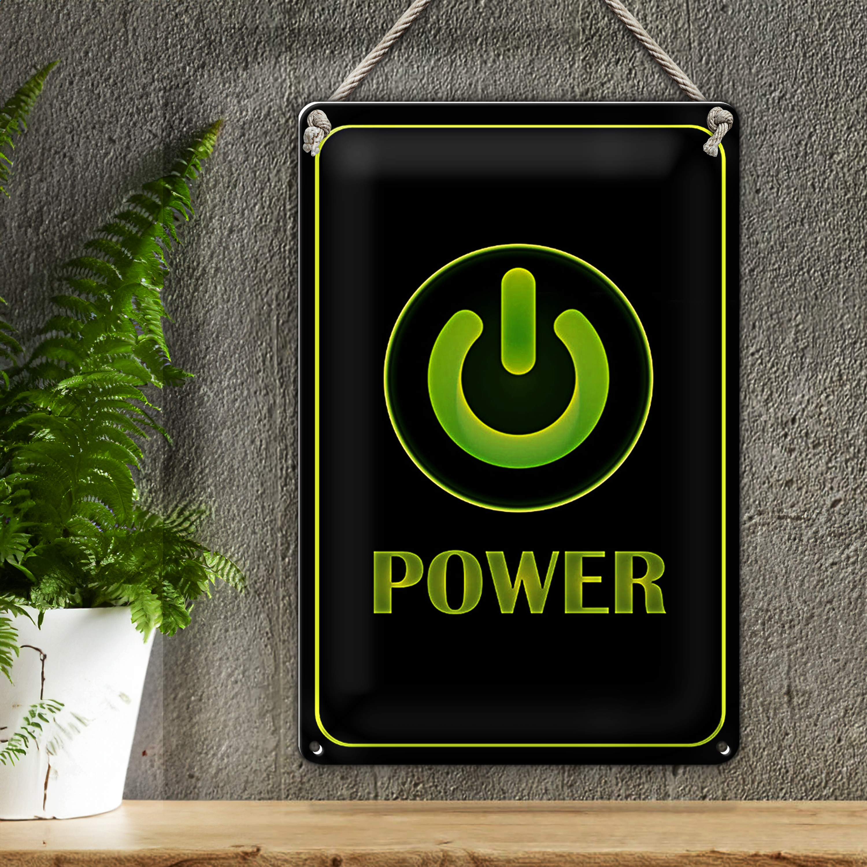 Blechschild Hinweis 20x30cm Power Taste Wanddeko