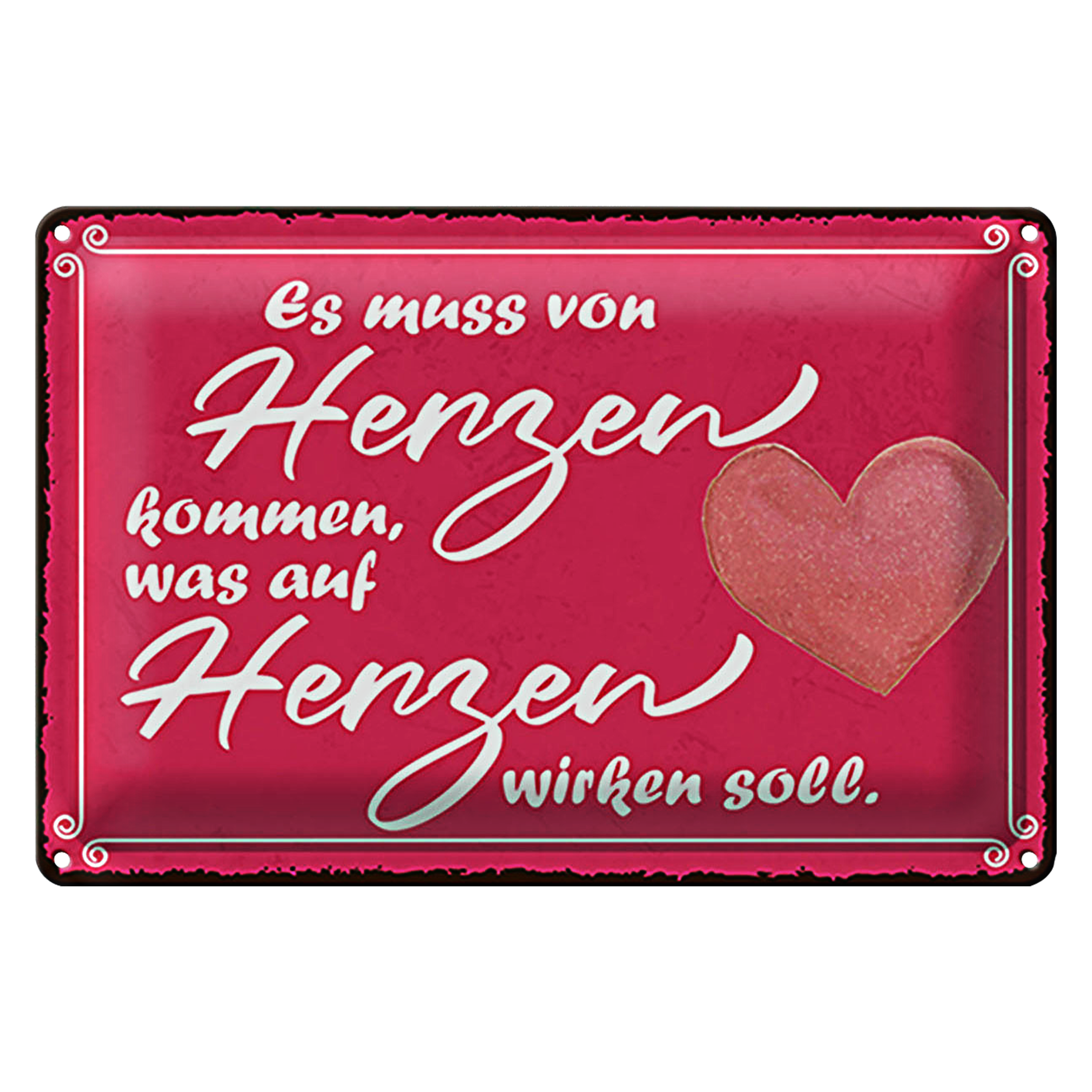 Blechschild Hinweis 30x20cm es muss von Herzen kommen