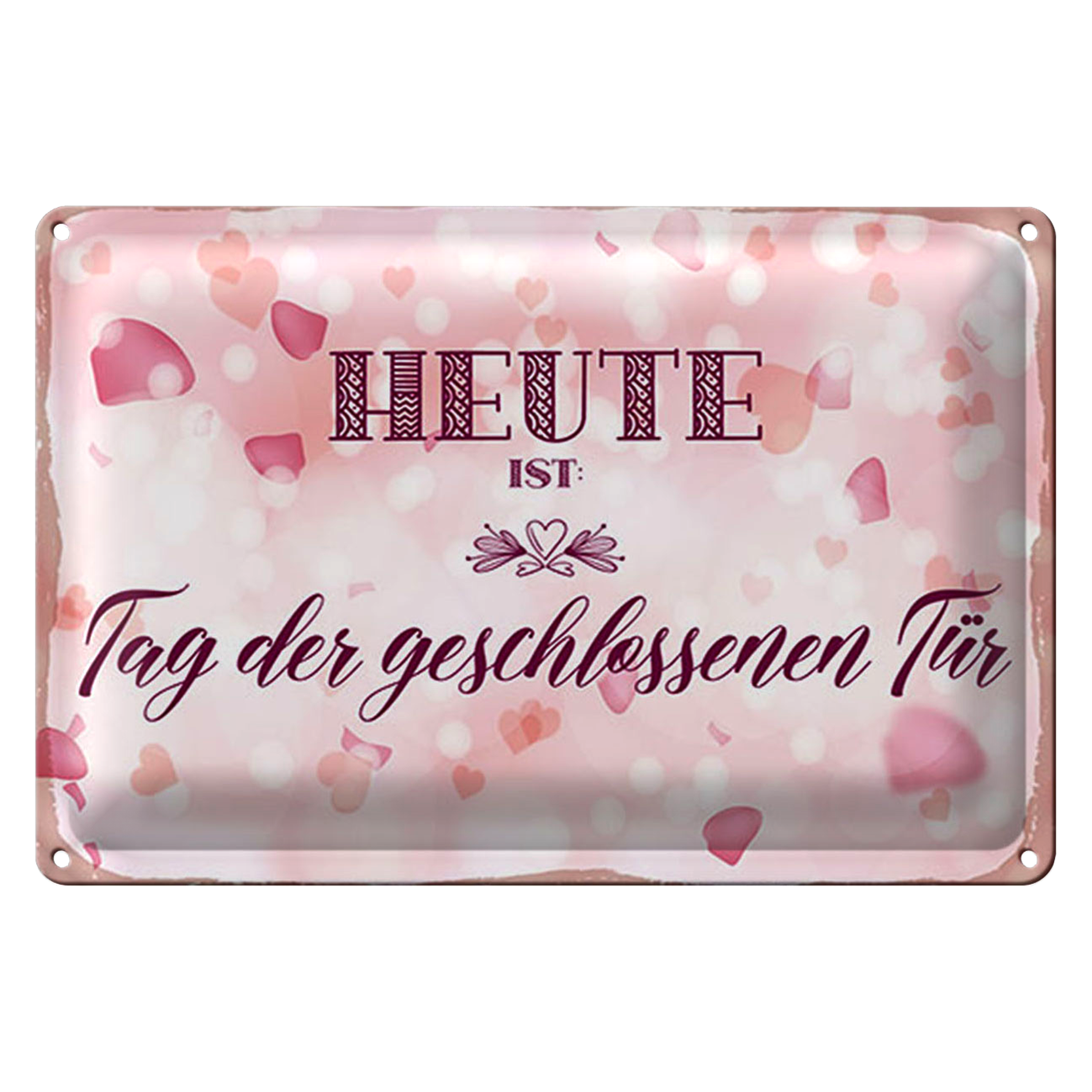 Blechschild Hinweis 30x20cm Heute ist Tag der geschlossenen Tür rosa
