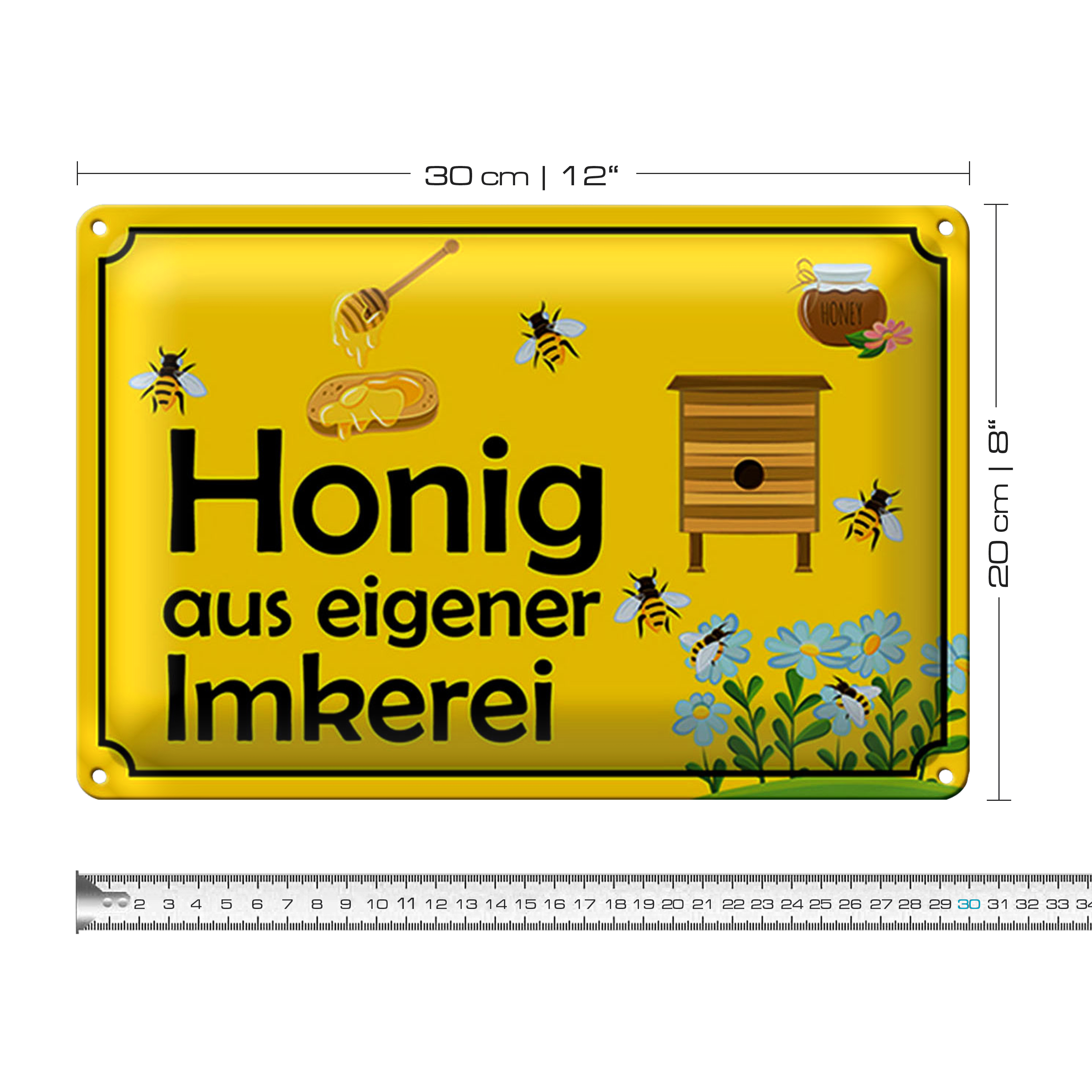 Blechschild Hinweis 30x20cm Honig aus eigener Imkerei Werbeschild