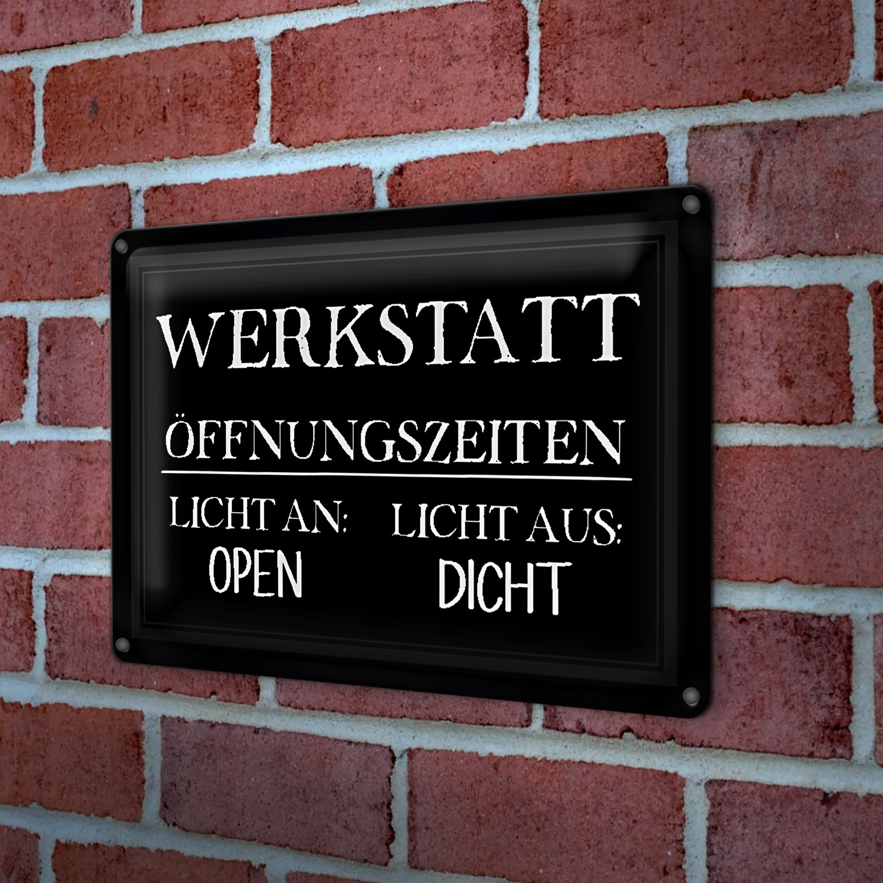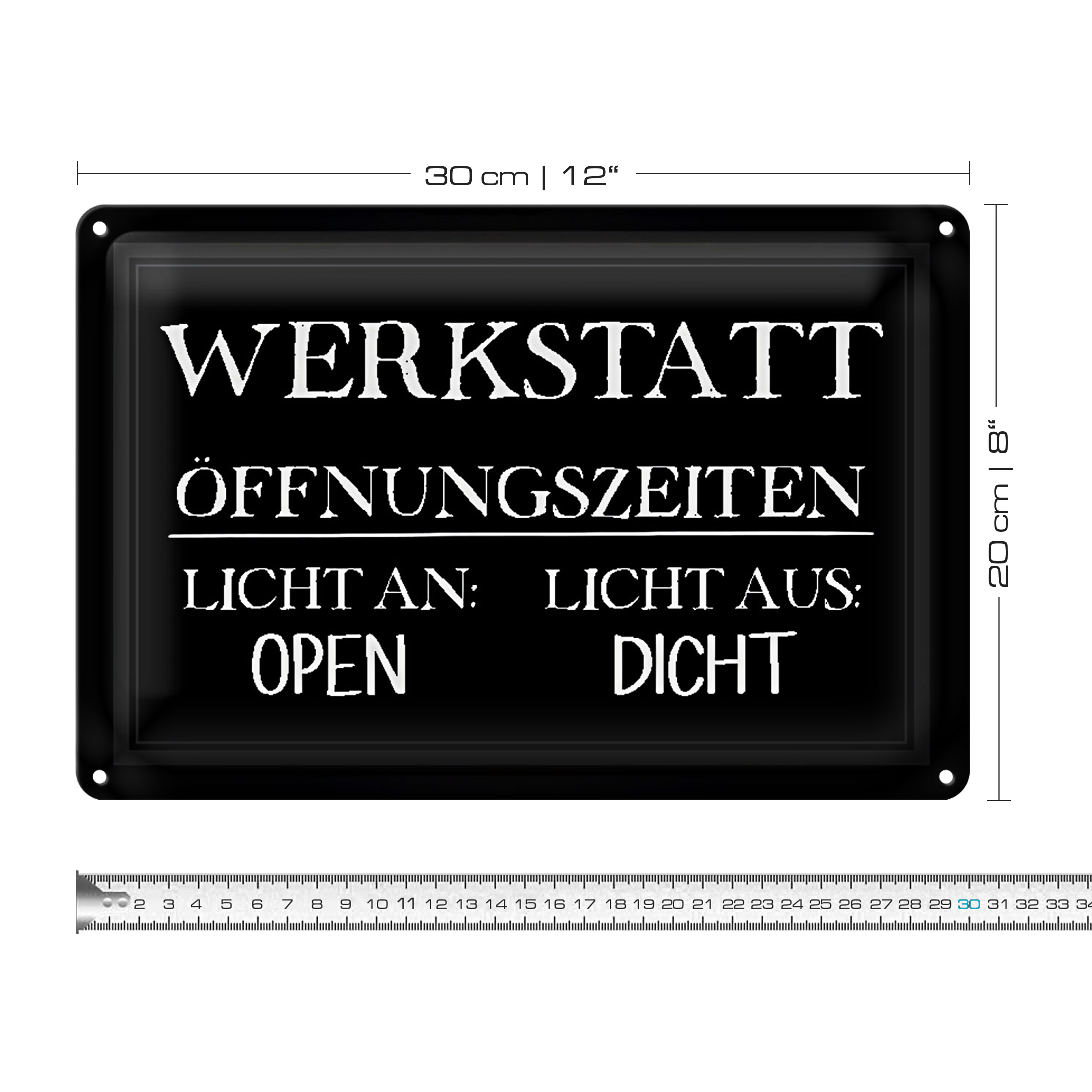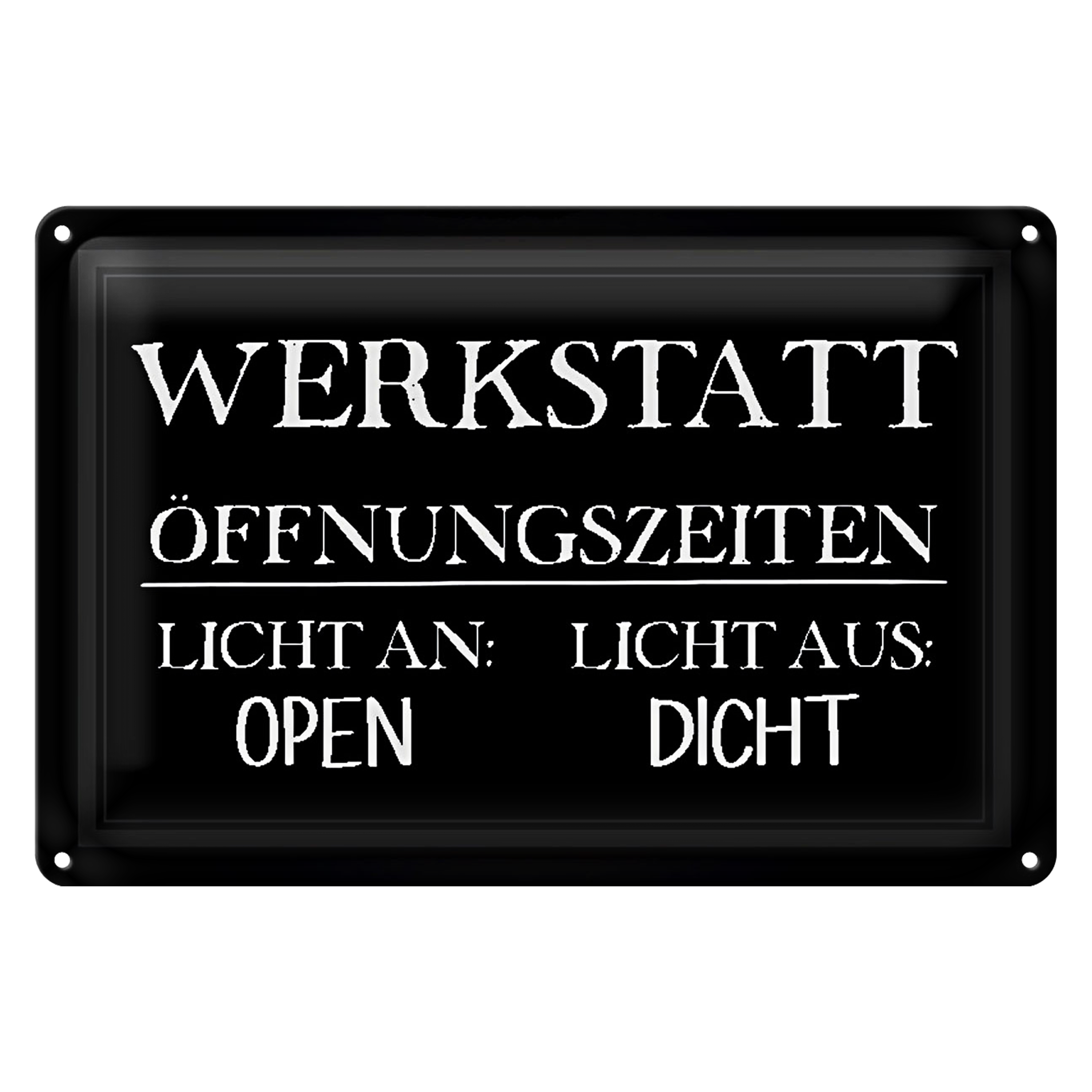 Blechschild Hinweis 30x20cm Werkstatt Öffnungszeiten Licht an offen Licht aus zu