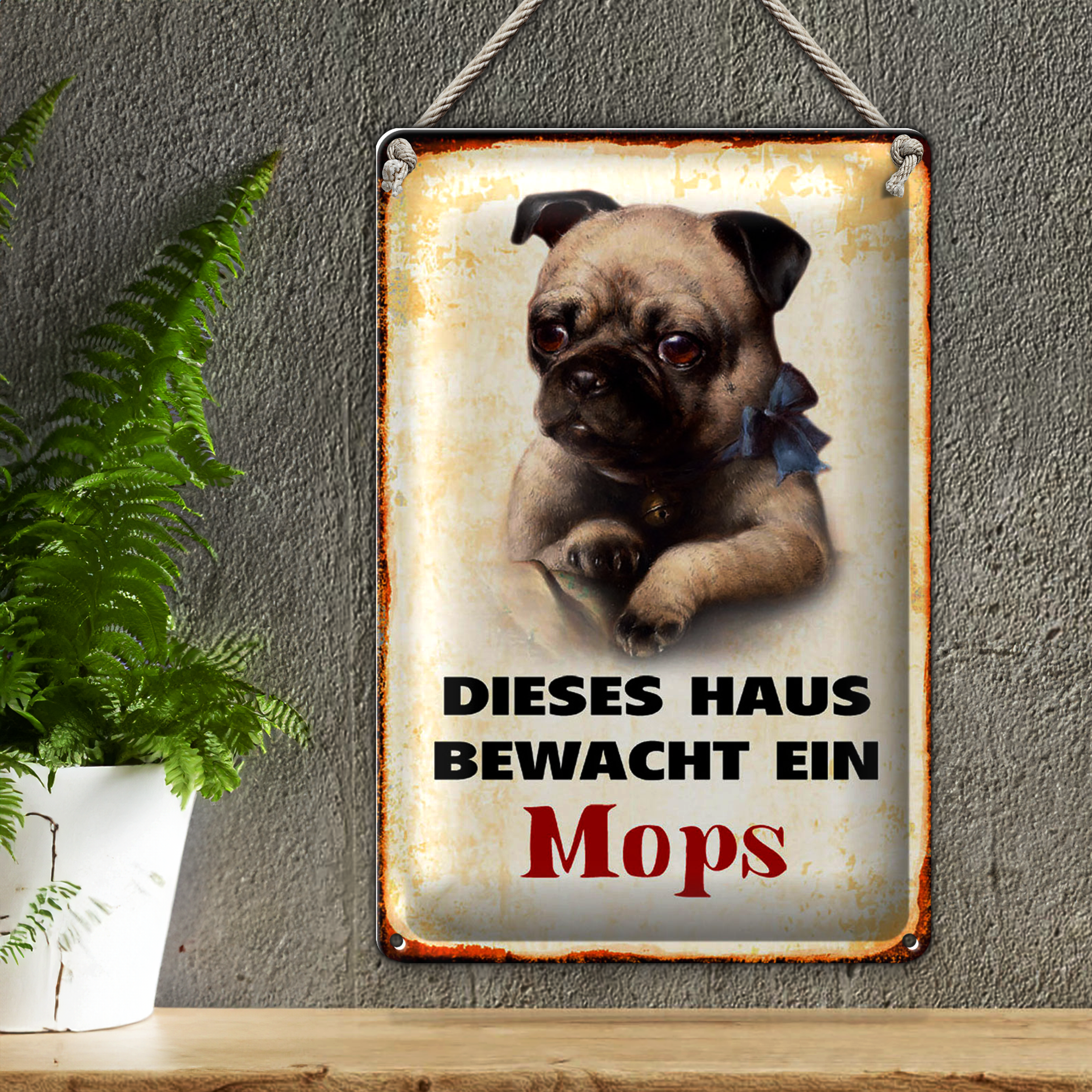 Blechschild Hund 20x30cm dieses Haus bewacht ein Mops