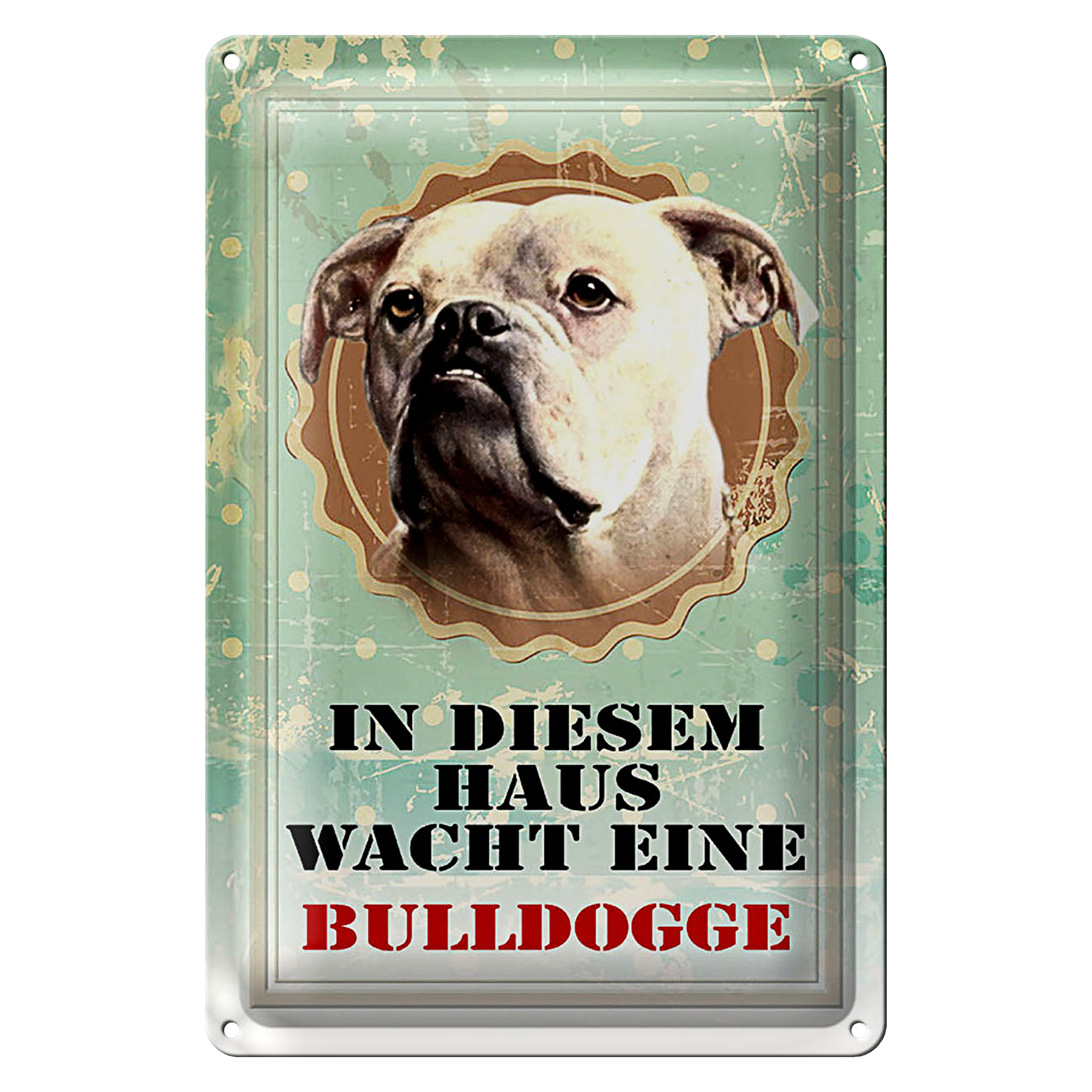 Blechschild Hund 20x30cm in diesem Haus wacht Bulldogge
