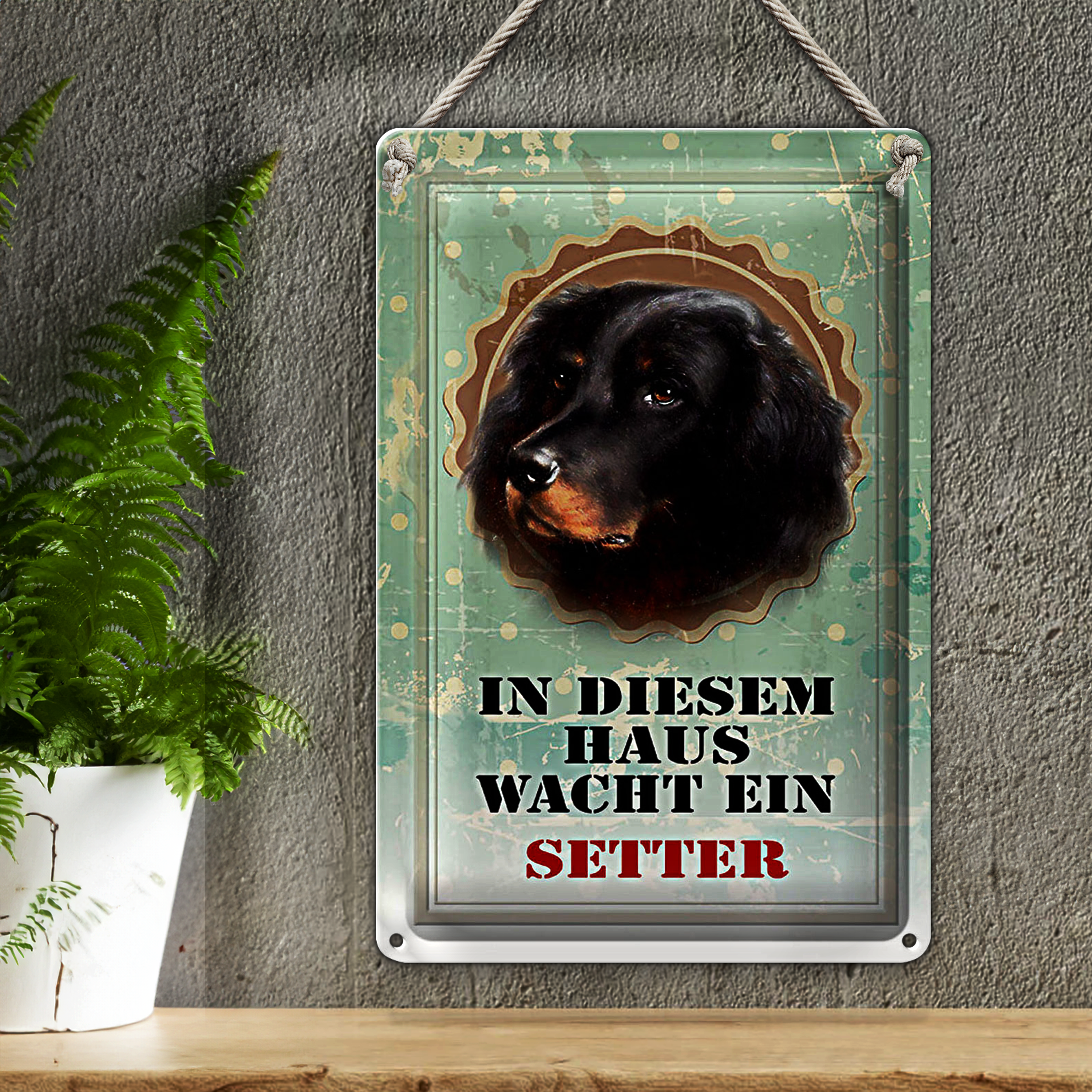 Blechschild Hund 20x30cm in diesem Haus wacht ein Setter