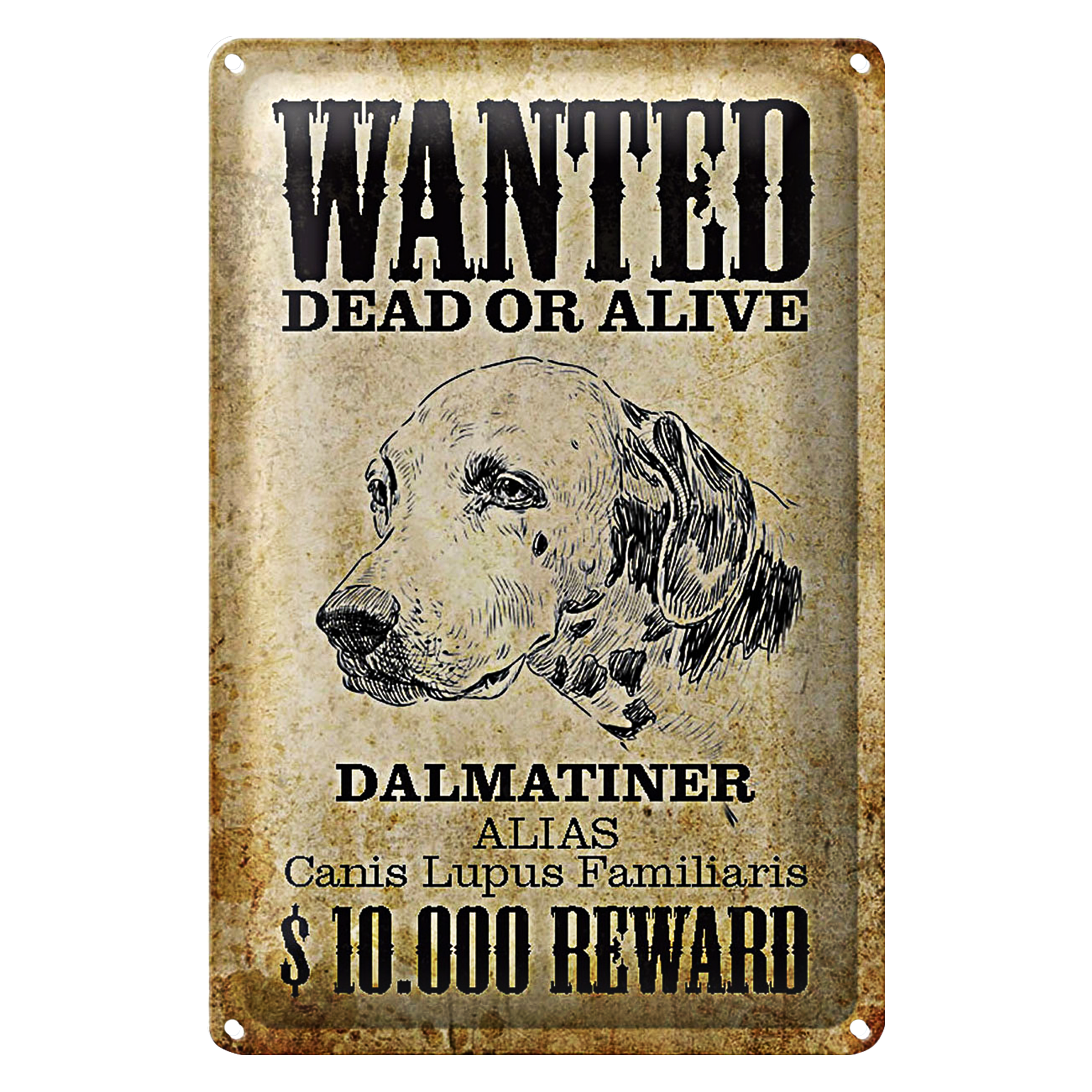 Blechschild Hund 20x30cm wanted dead Dalmatiner