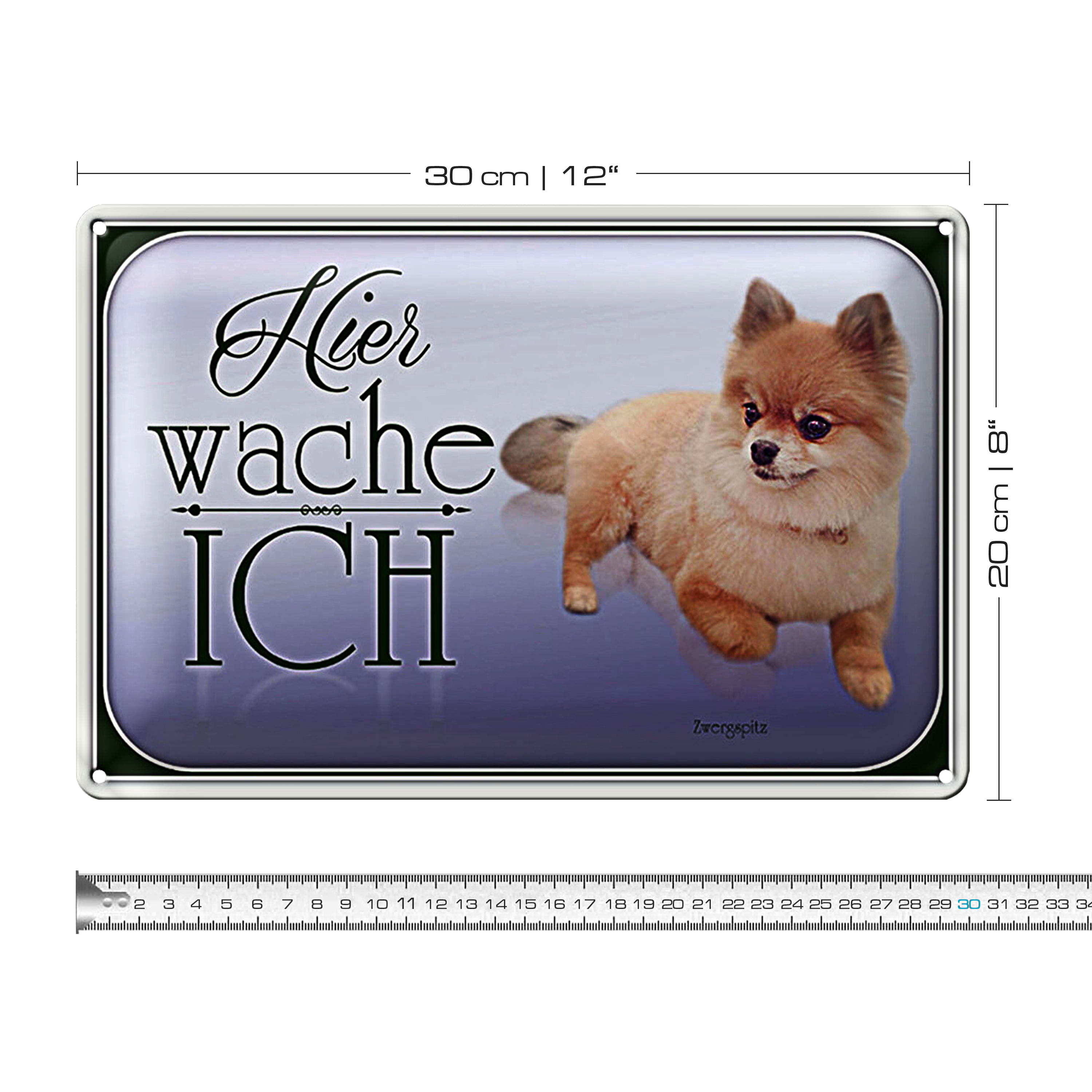 Blechschild Hund 30x20cm Zwergspitz hier wache ich