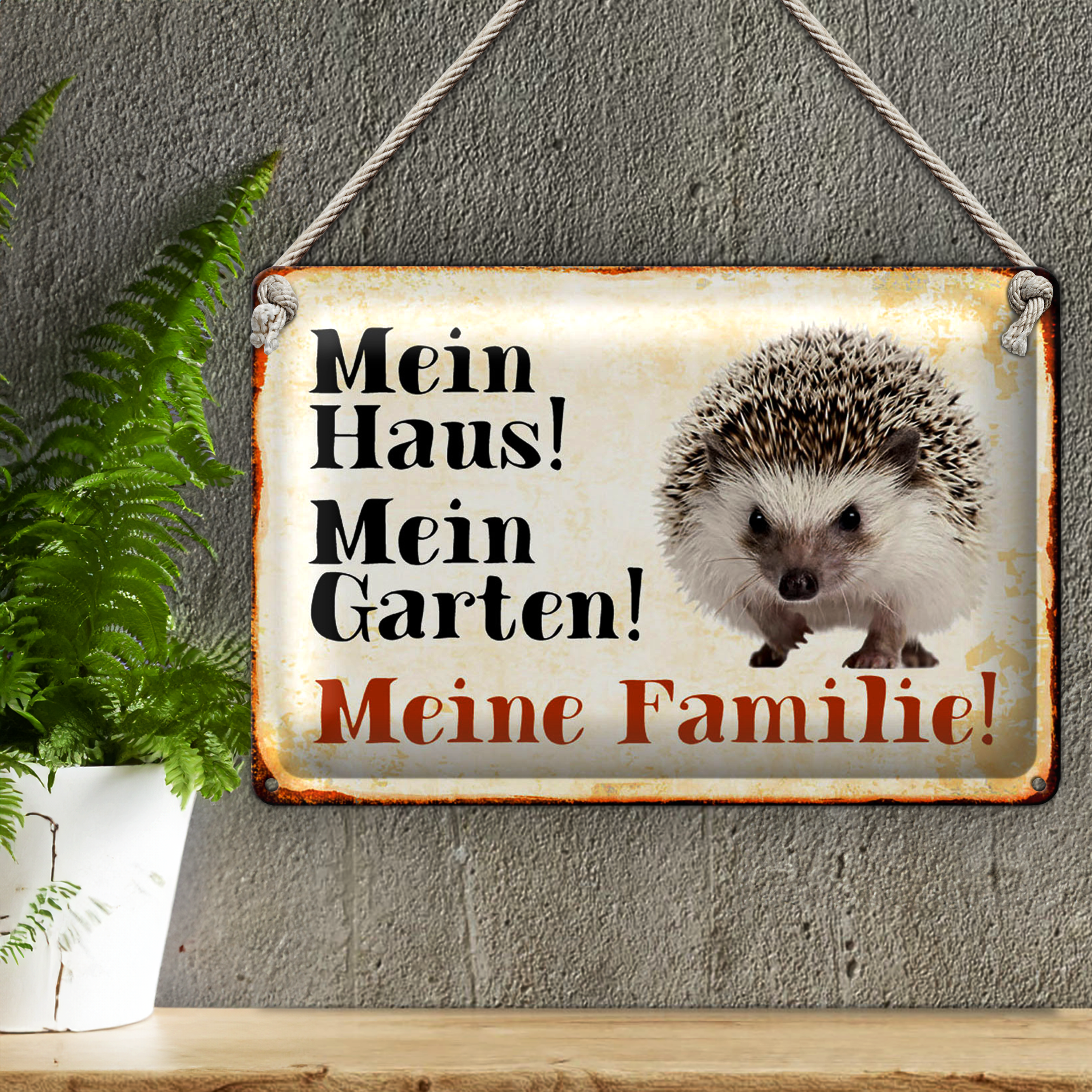 Blechschild Igel 30x20cm mein Haus mein Garten meine Familie