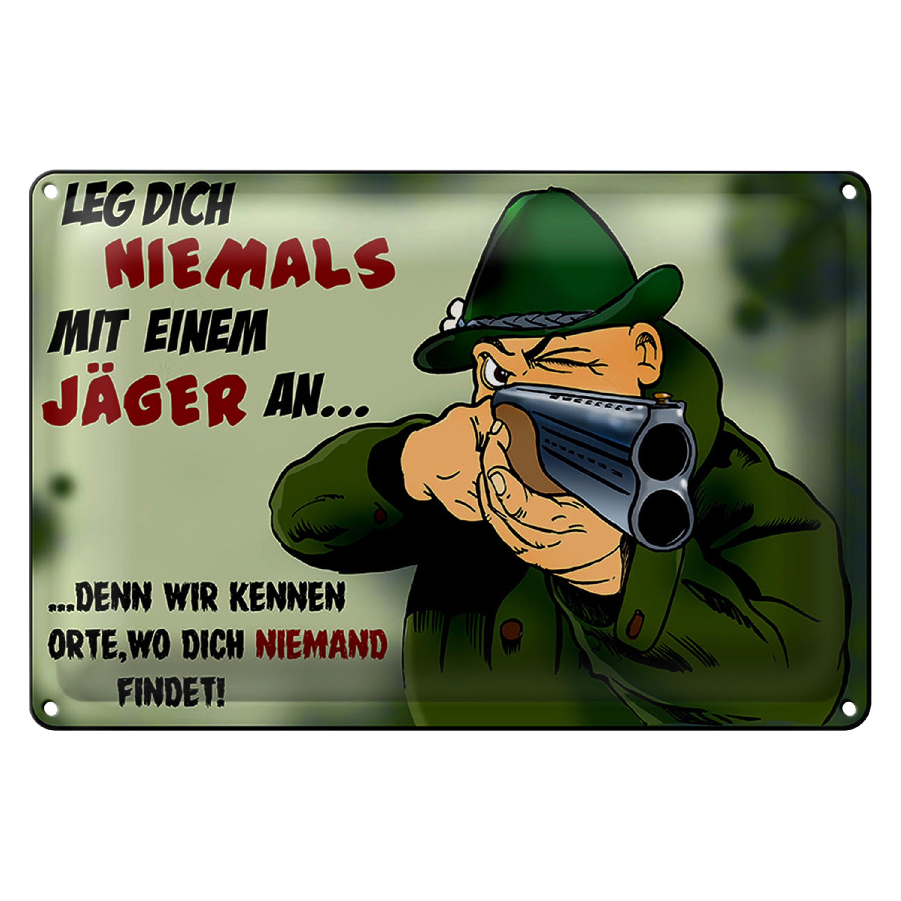 Blechschild Jäger 30x20cm Leg dich niemals mit Jäger an