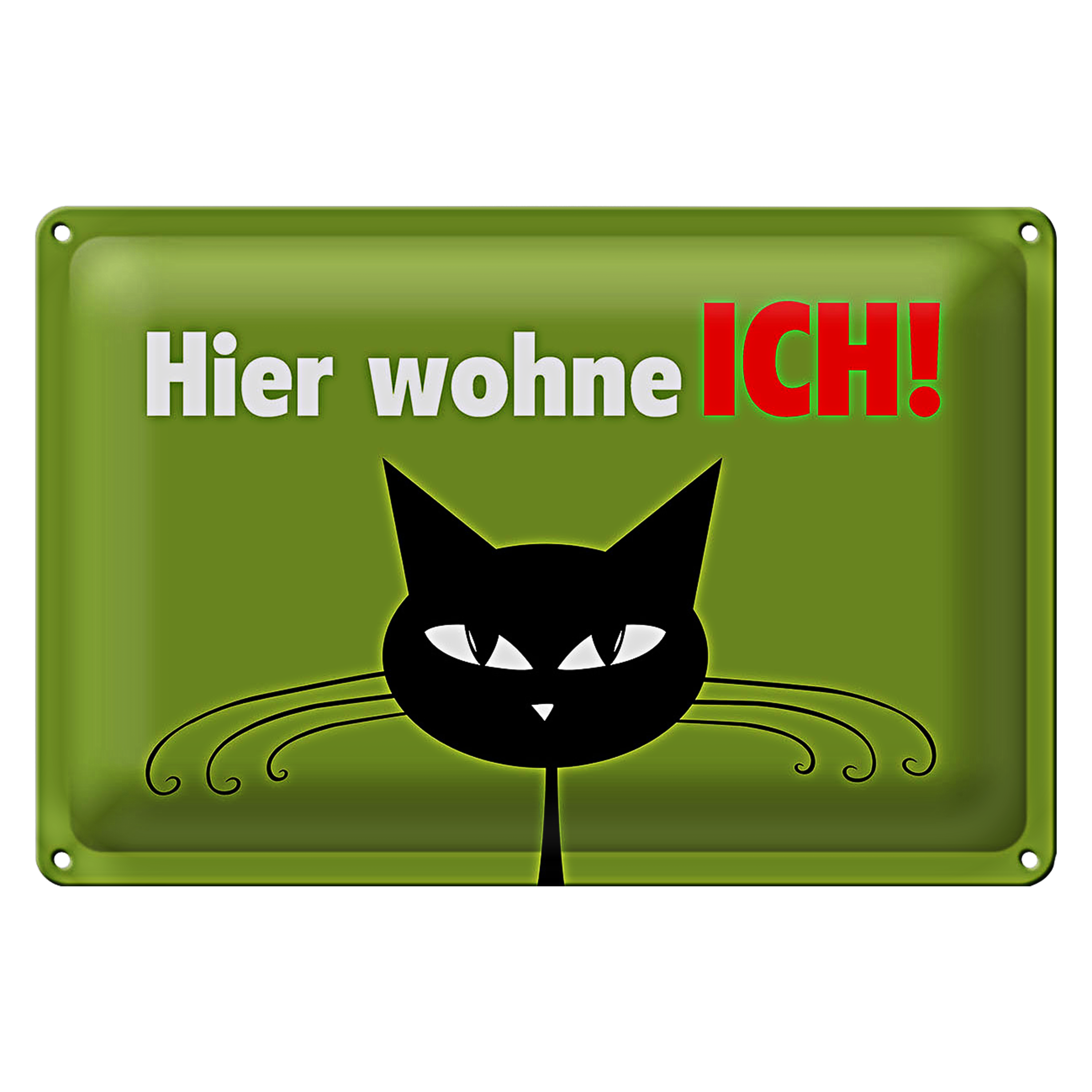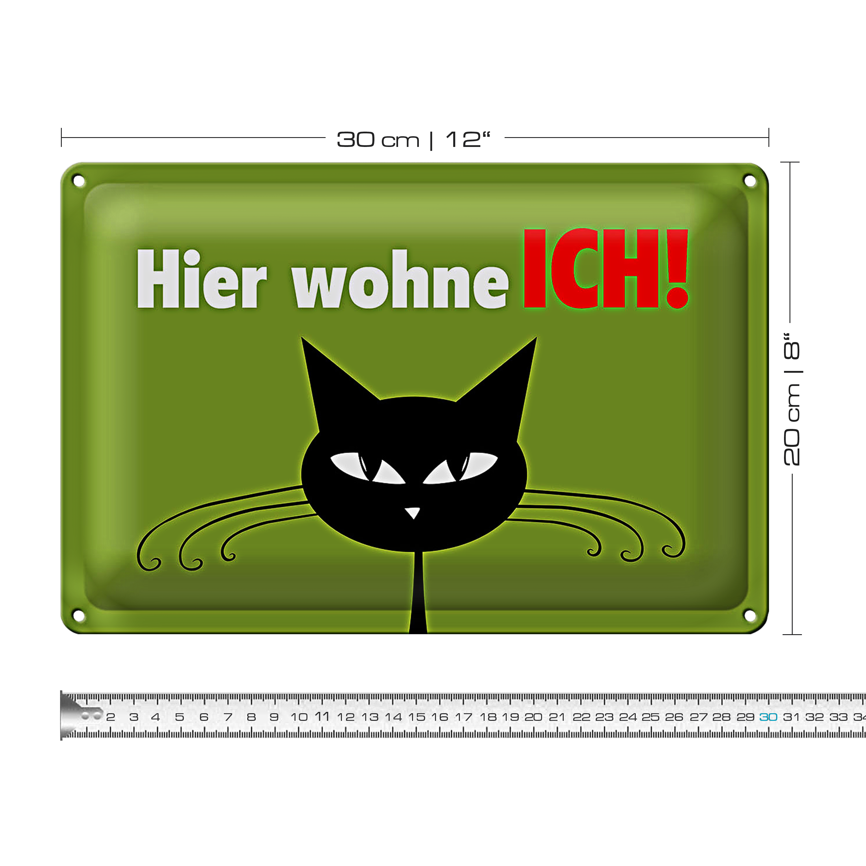 Blechschild Katzenliebhaber 30x20cm Katze hier wohne ich