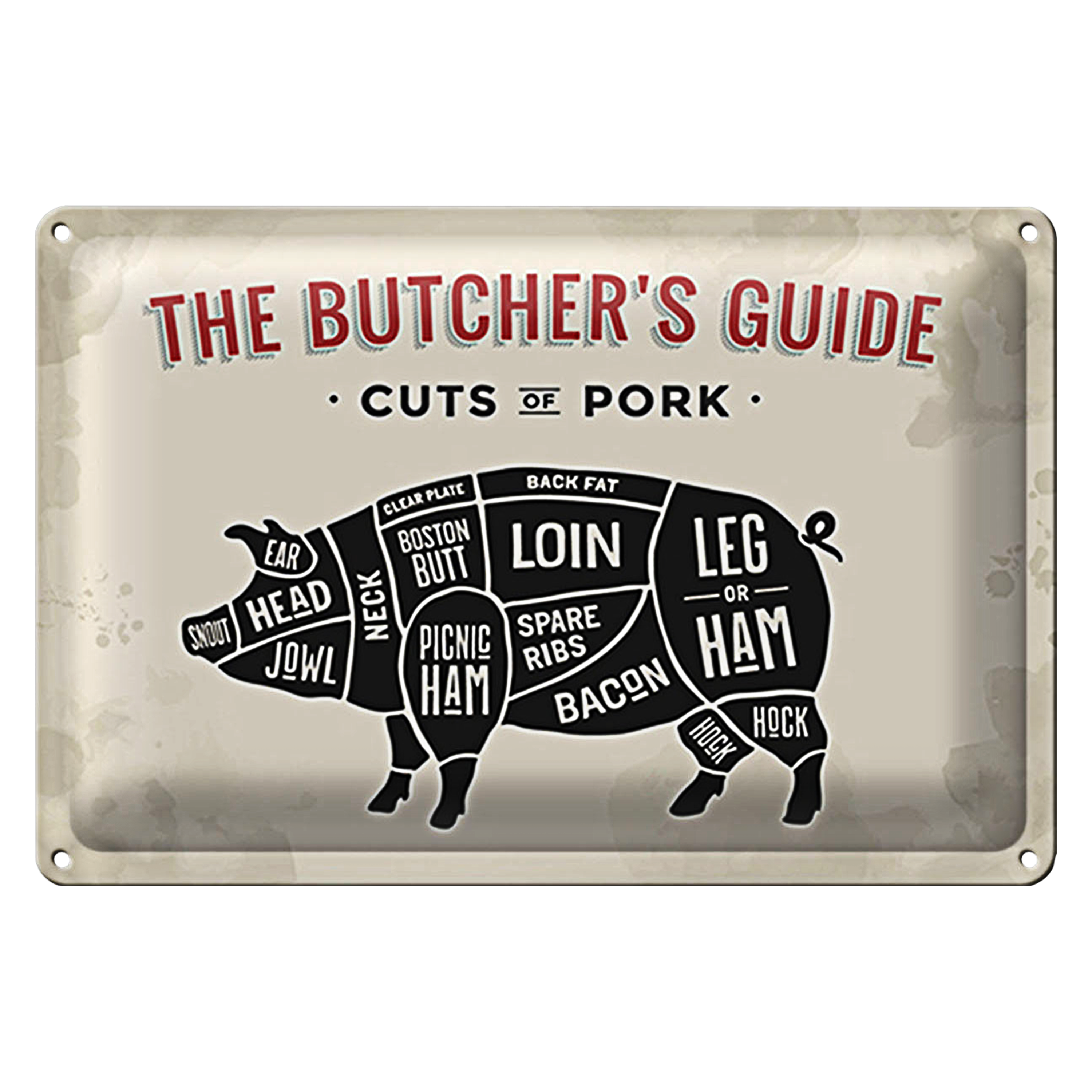 Blechschild Metzgerei 30x20cm Pork cuts Fleisch