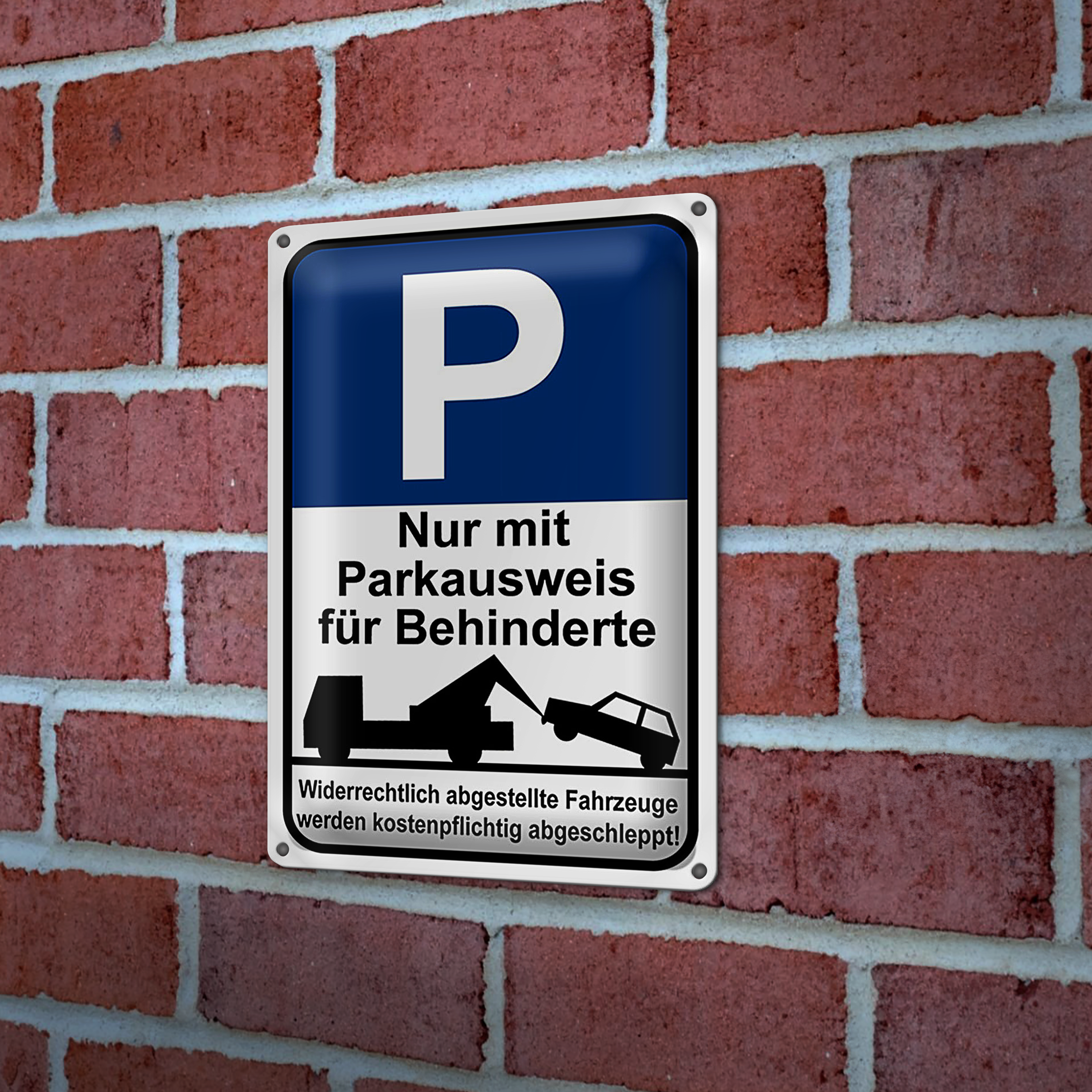 Blechschild Parken 20x30cm nur Parkausweis für Behinderte