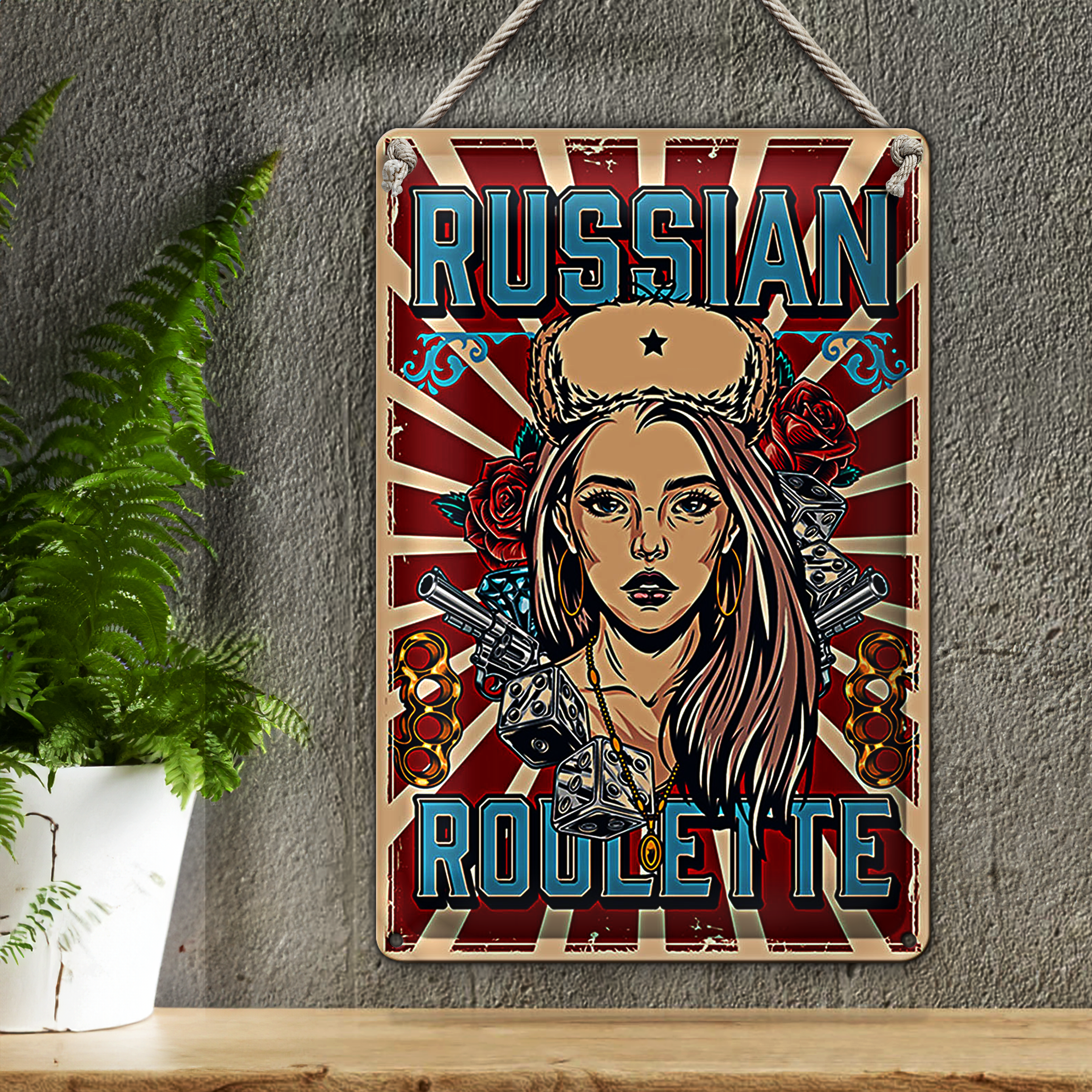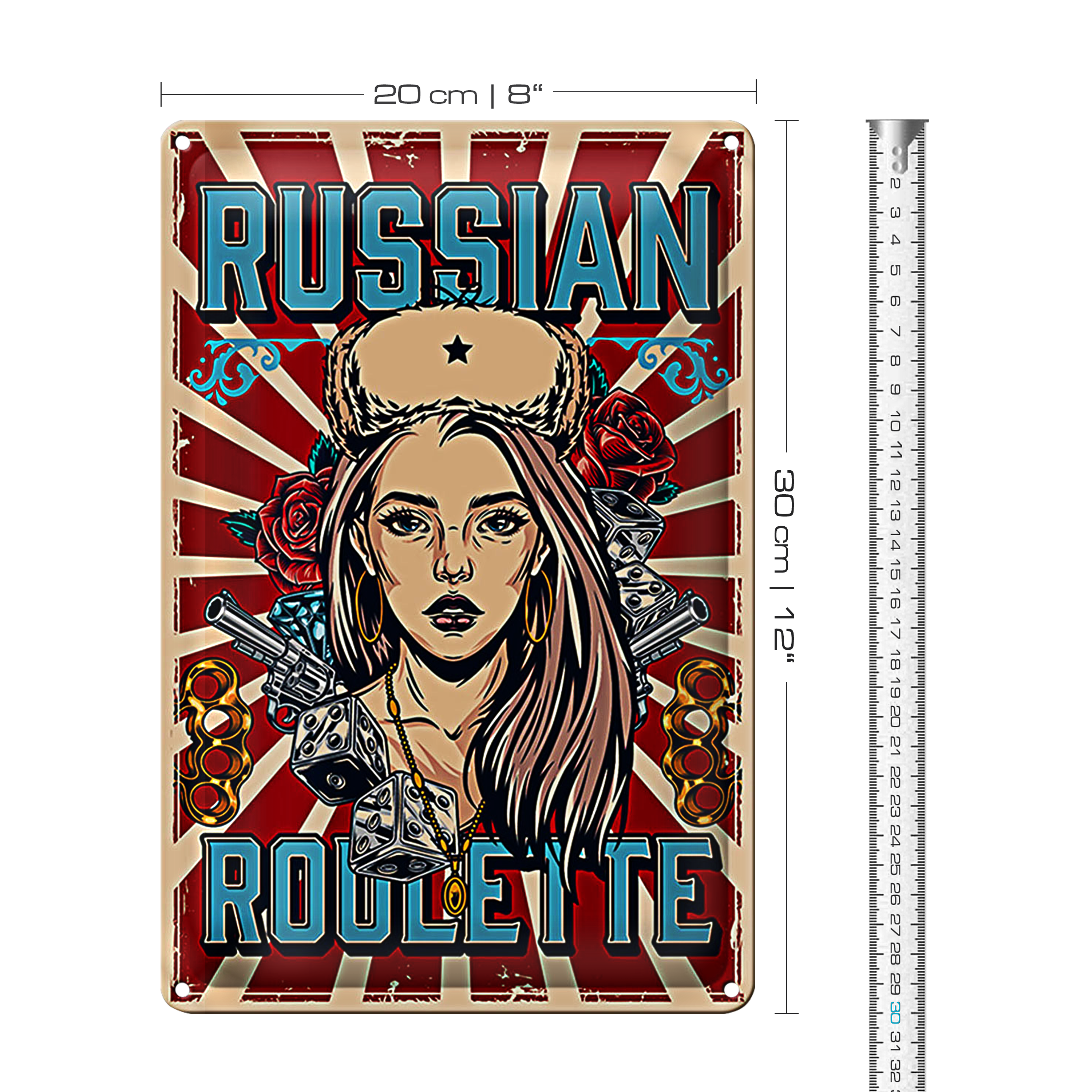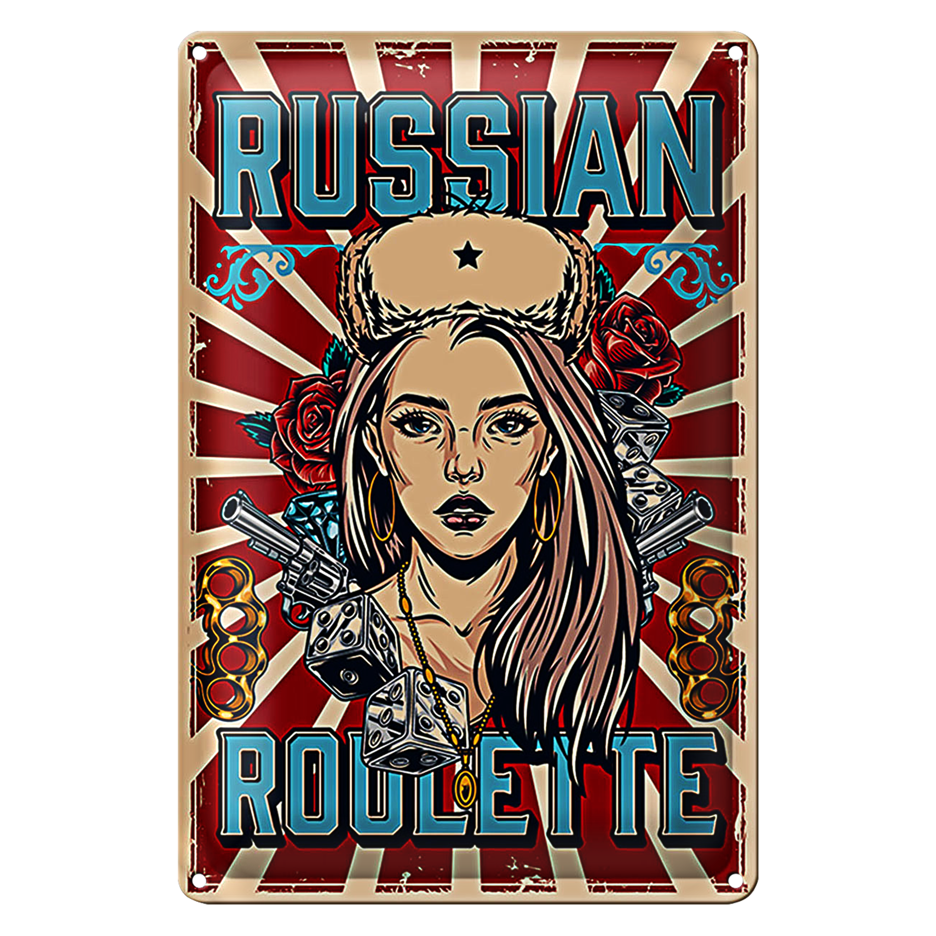 Blechschild Pinup 20x30cm russian roulette