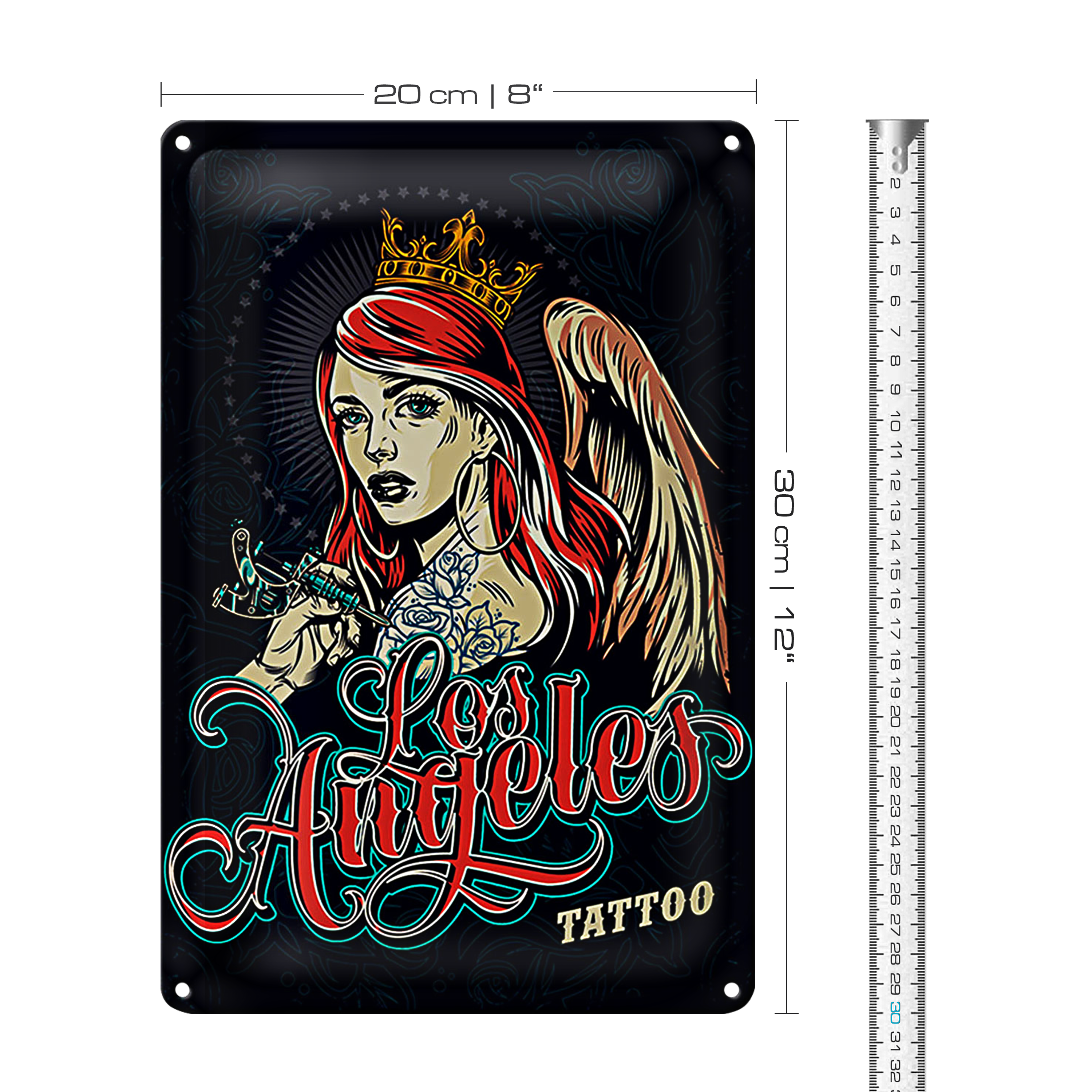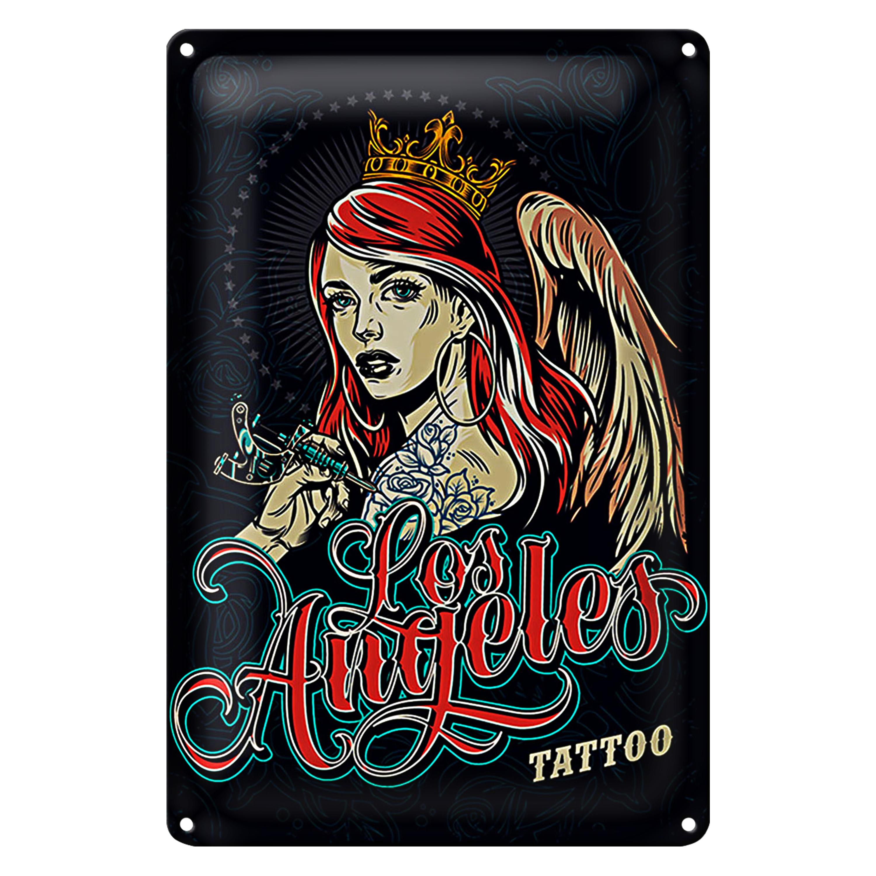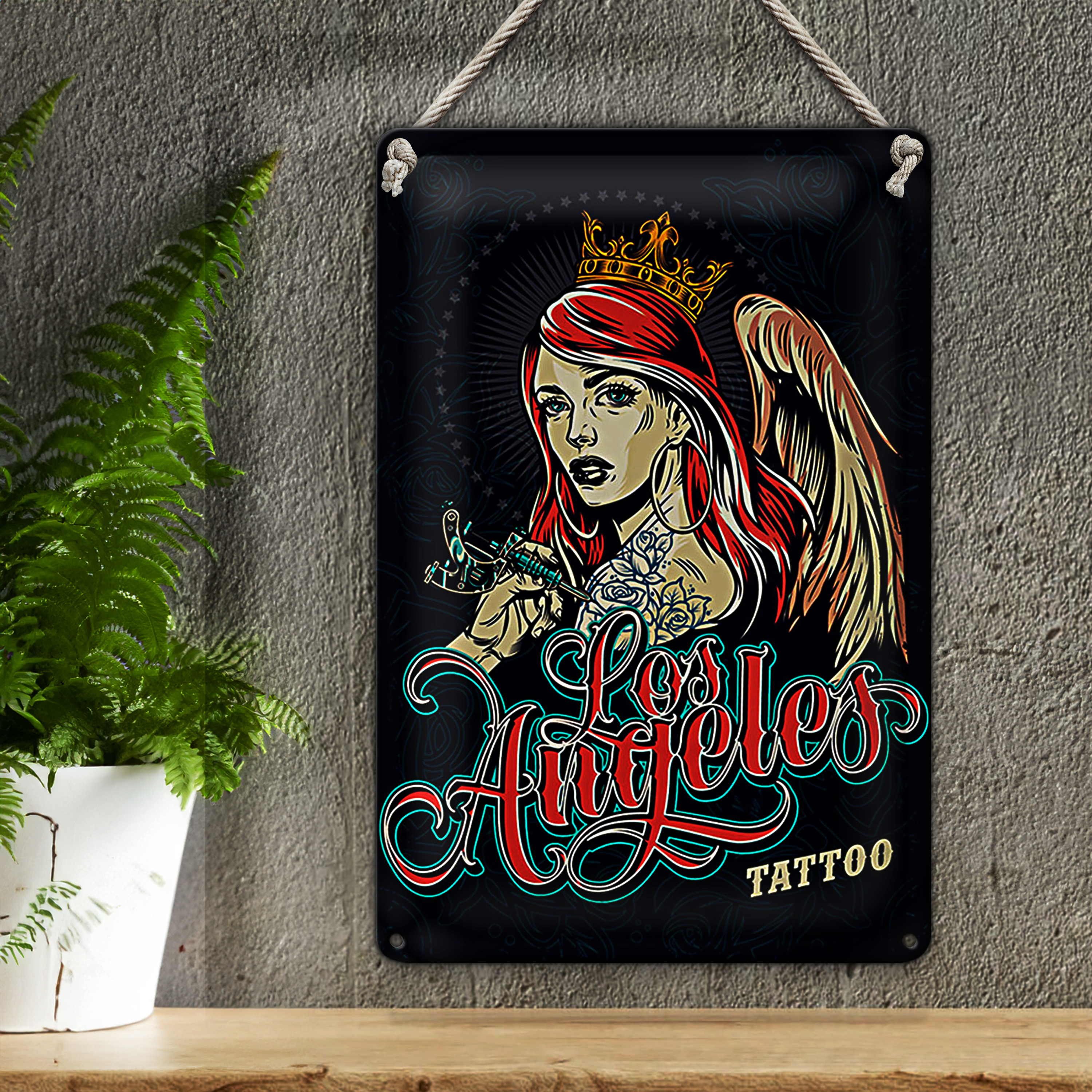 Blechschild Pinup 20x30cm Tattoo Los Angeles blaue Dekoration