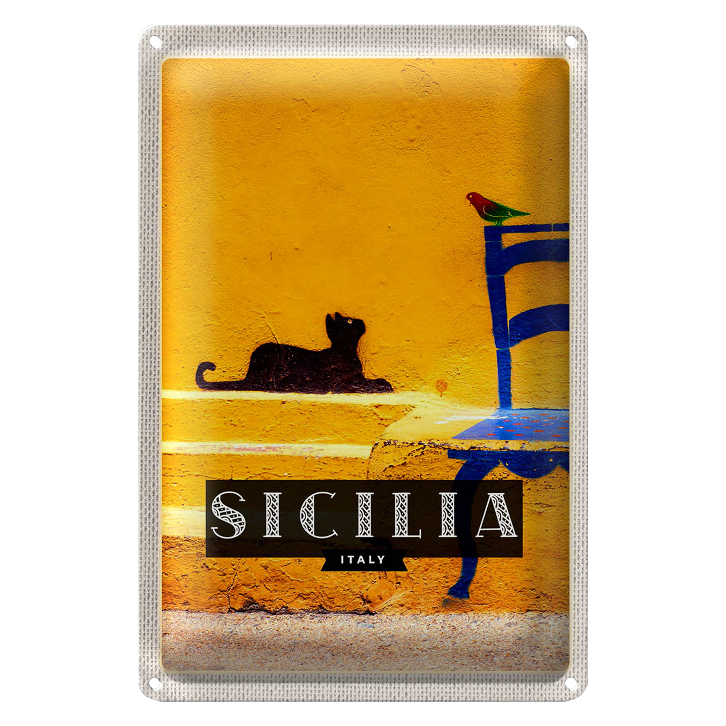 Blechschild Reise 20x30 Sizilien Italien malerisches Bild Katze