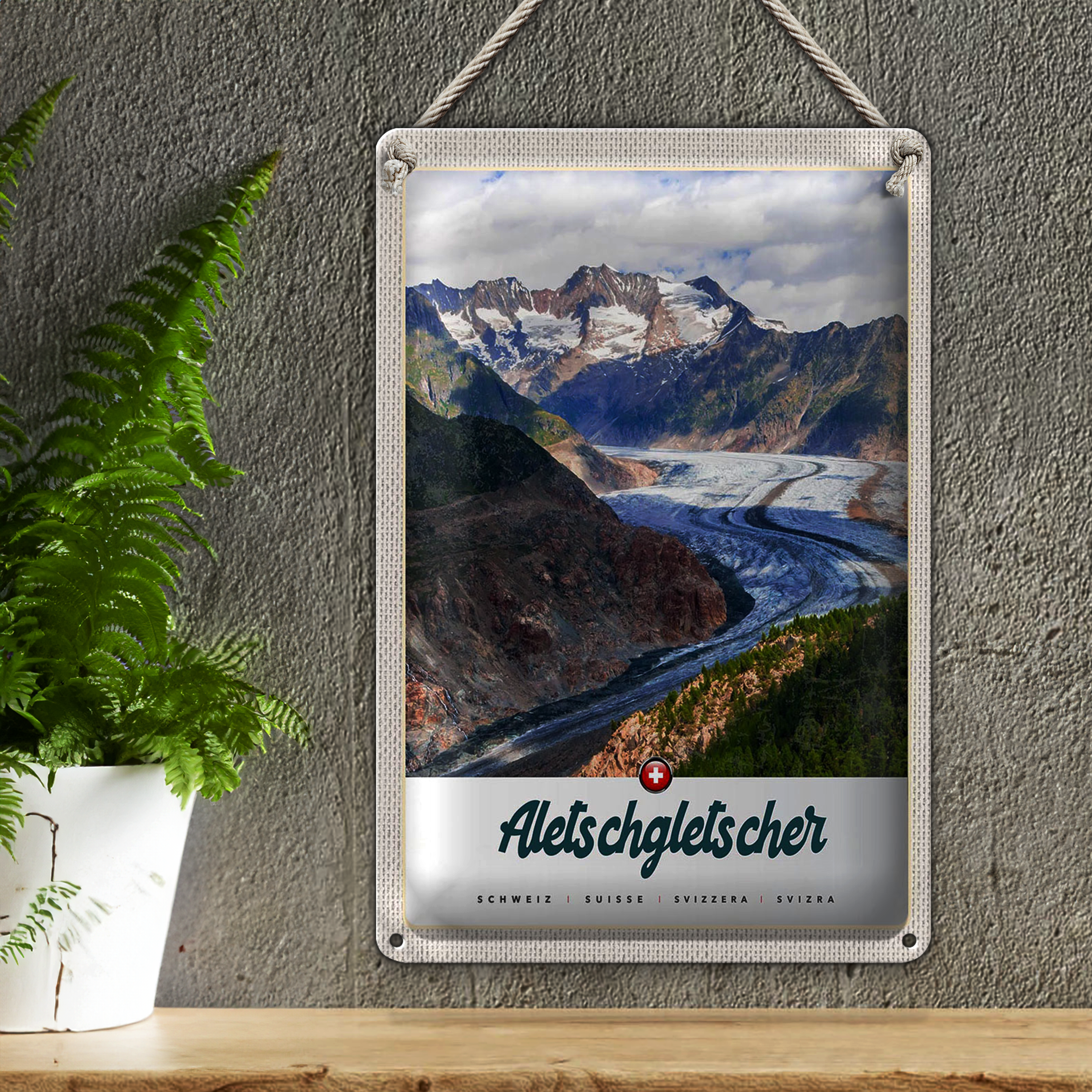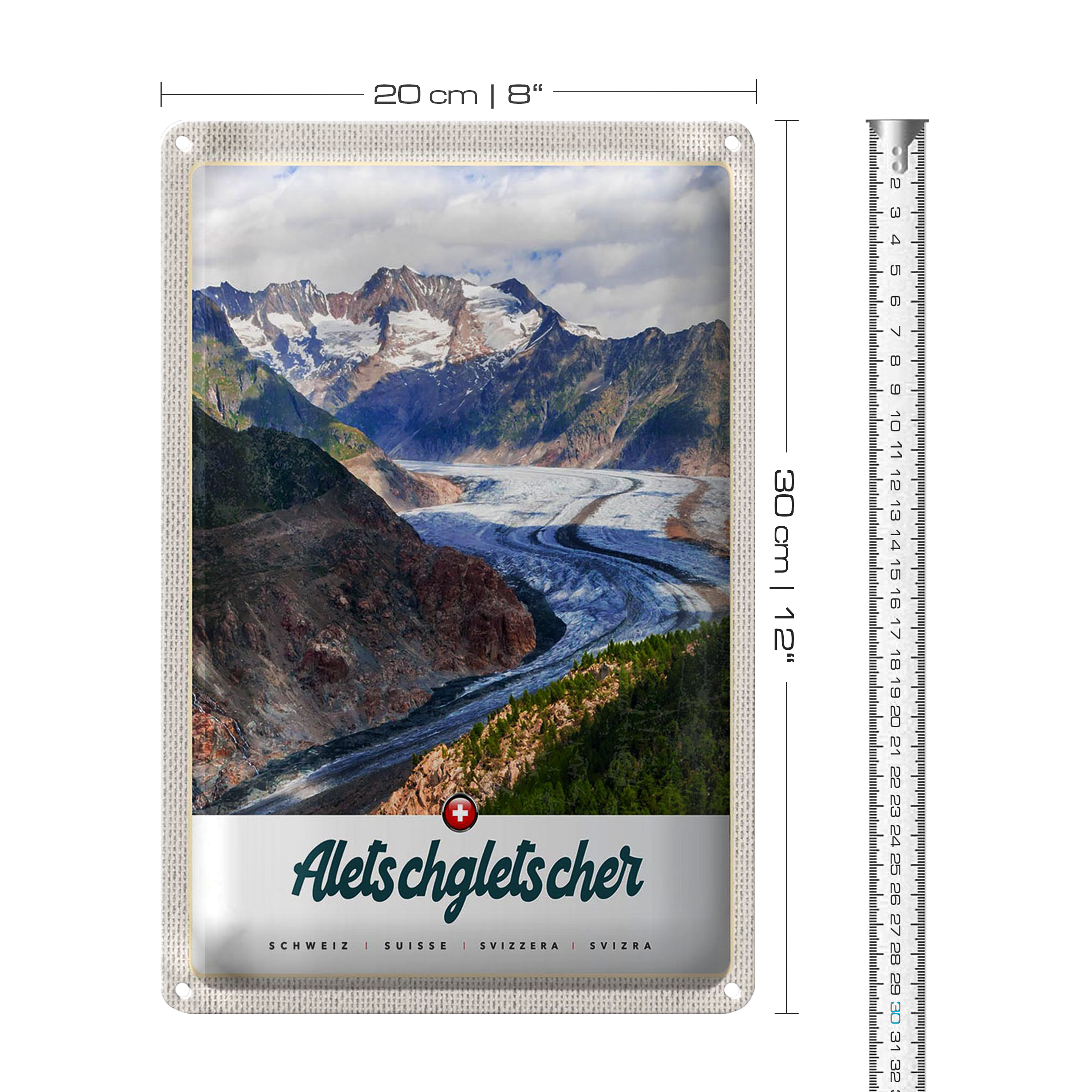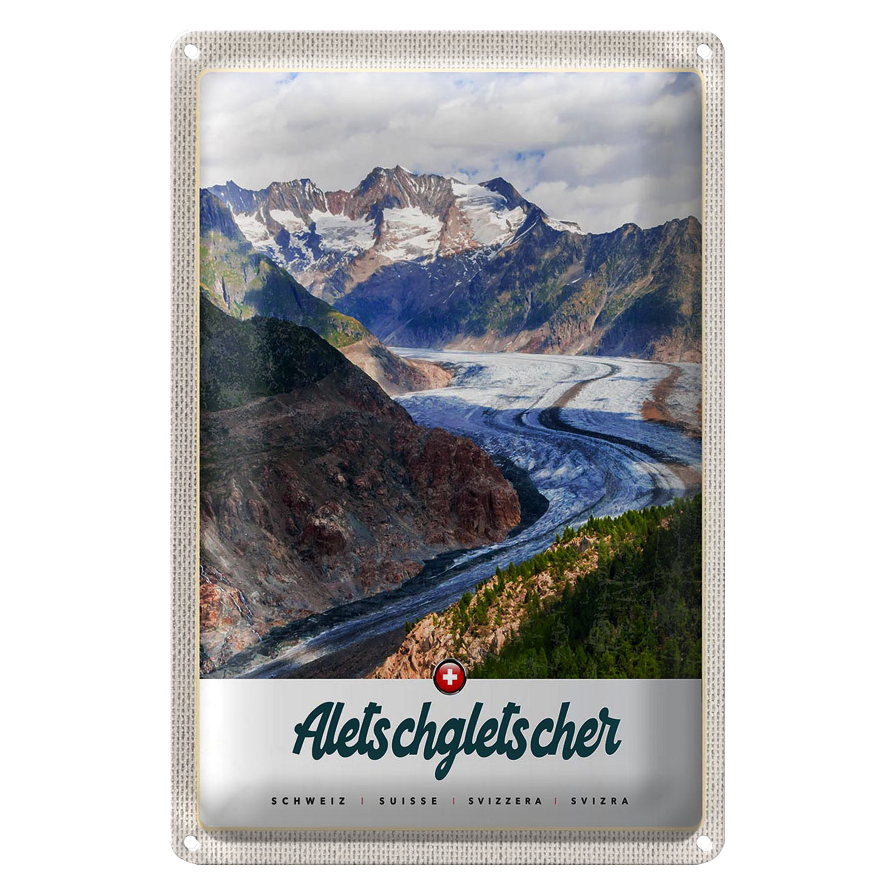 Blechschild Reise 20x30cm Aletschgletsch Schweiz Gebirge Winter