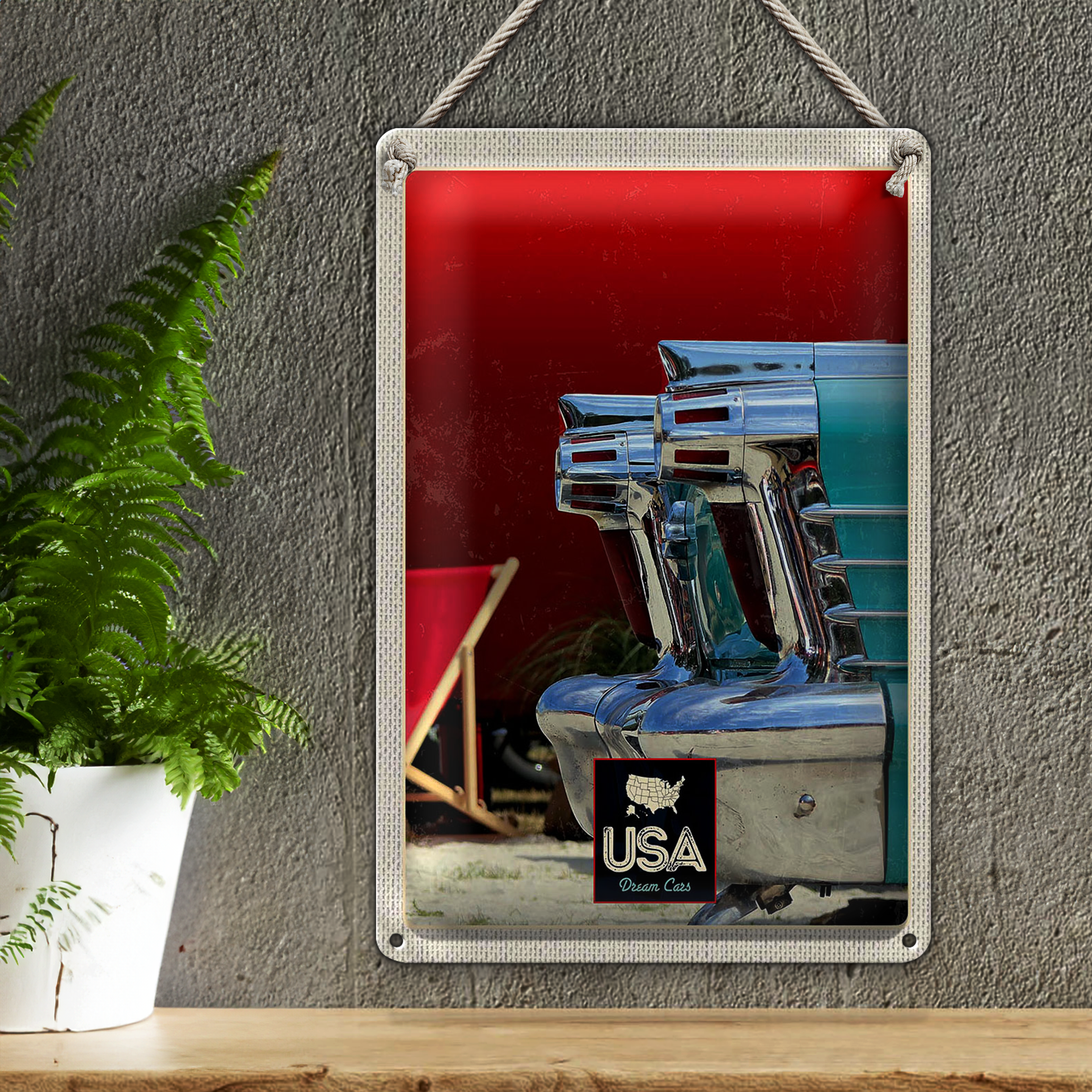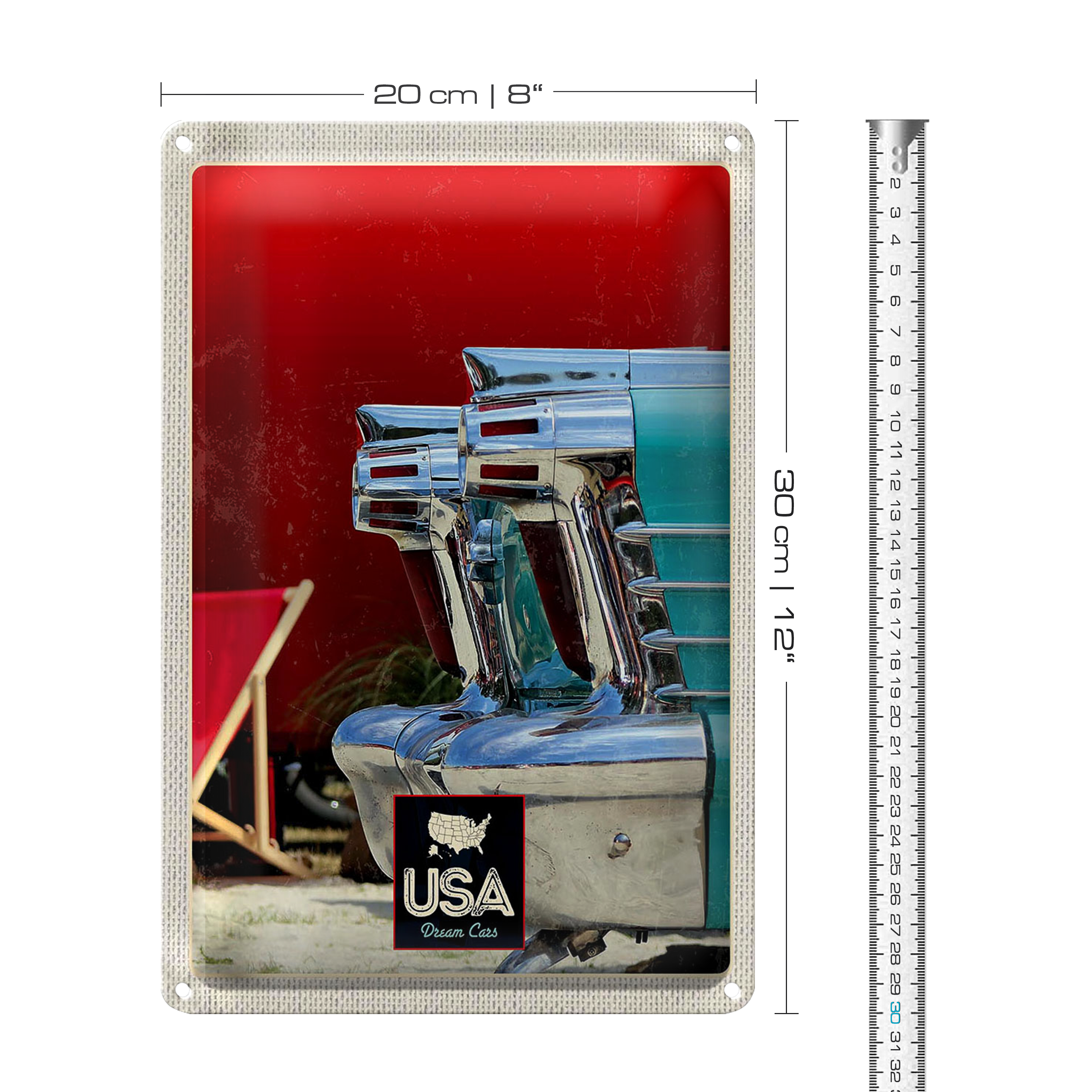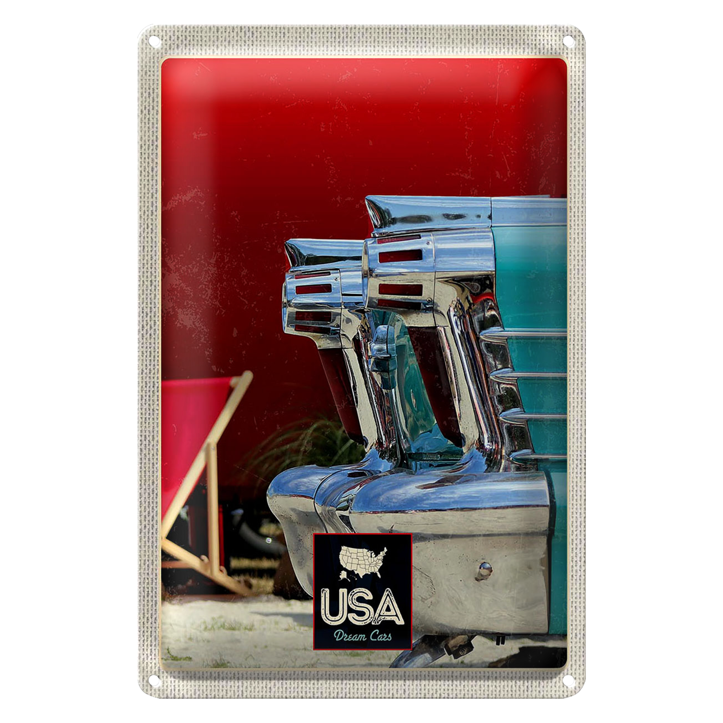 Blechschild Reise 20x30cm Amerika Oldtimer blau silber Urlaub