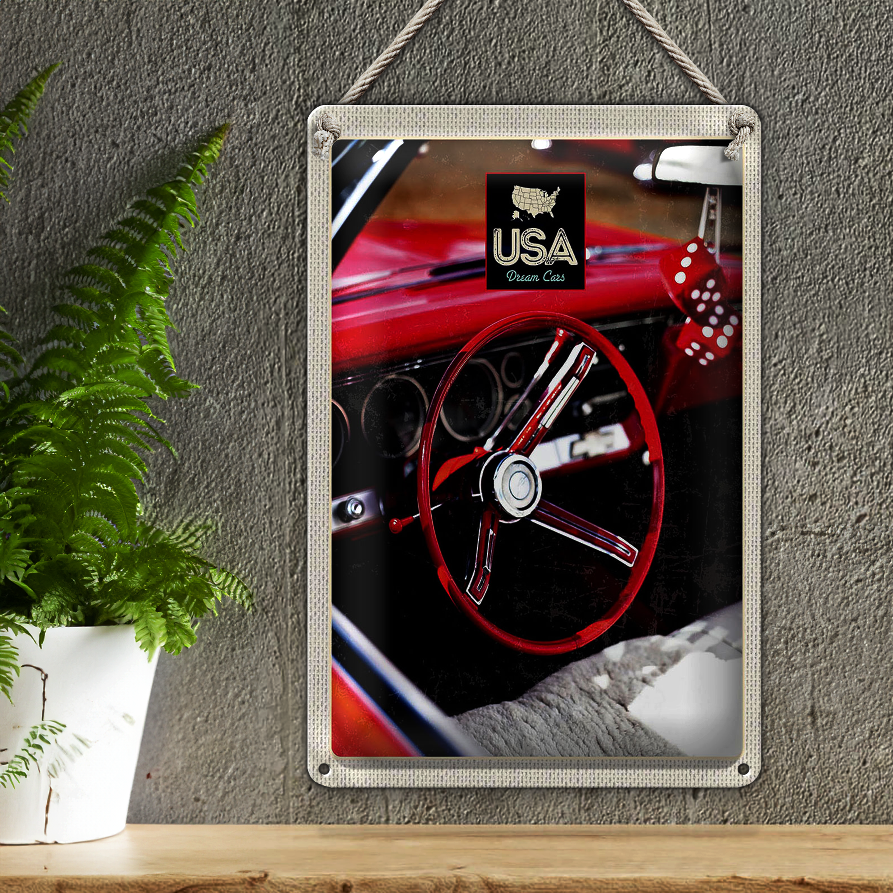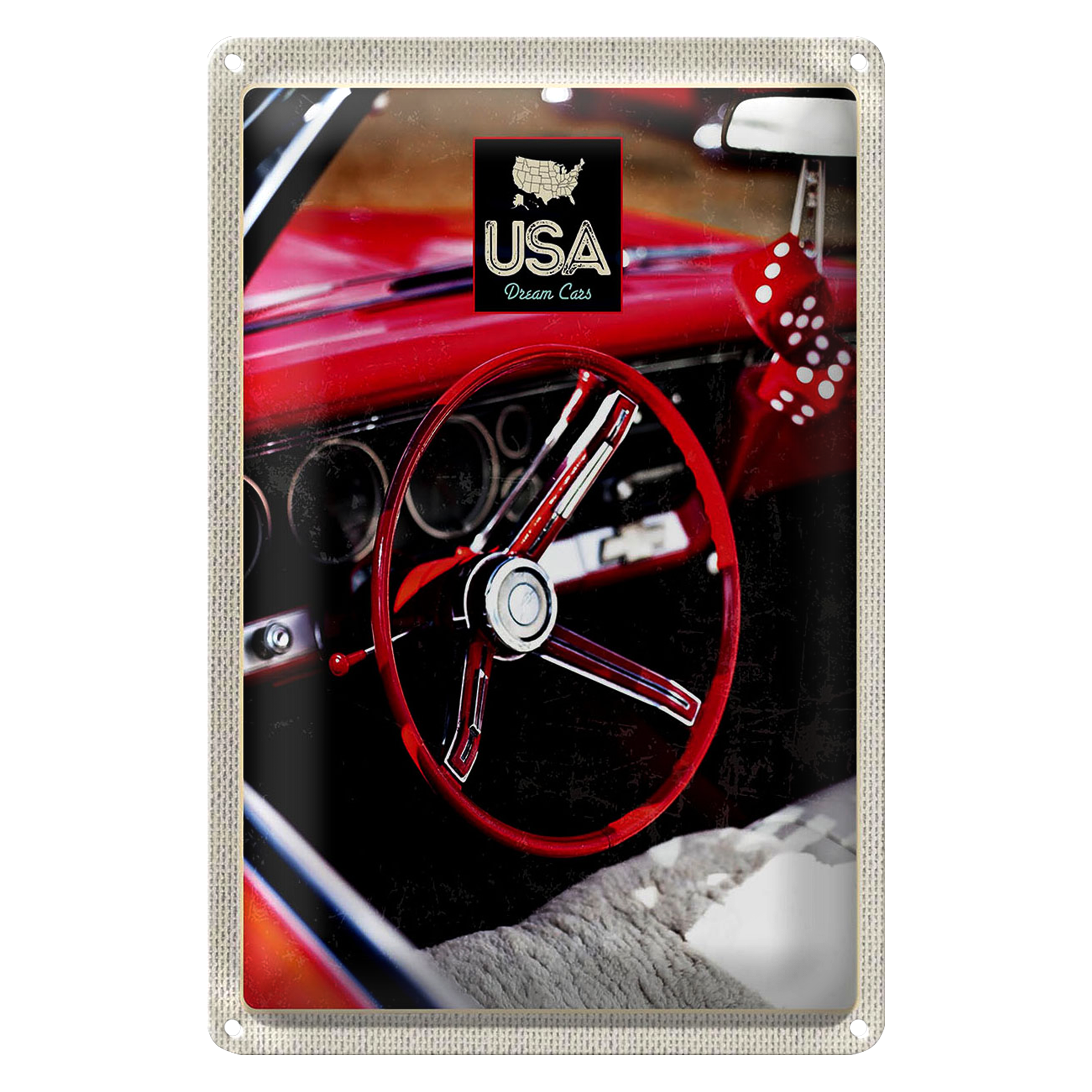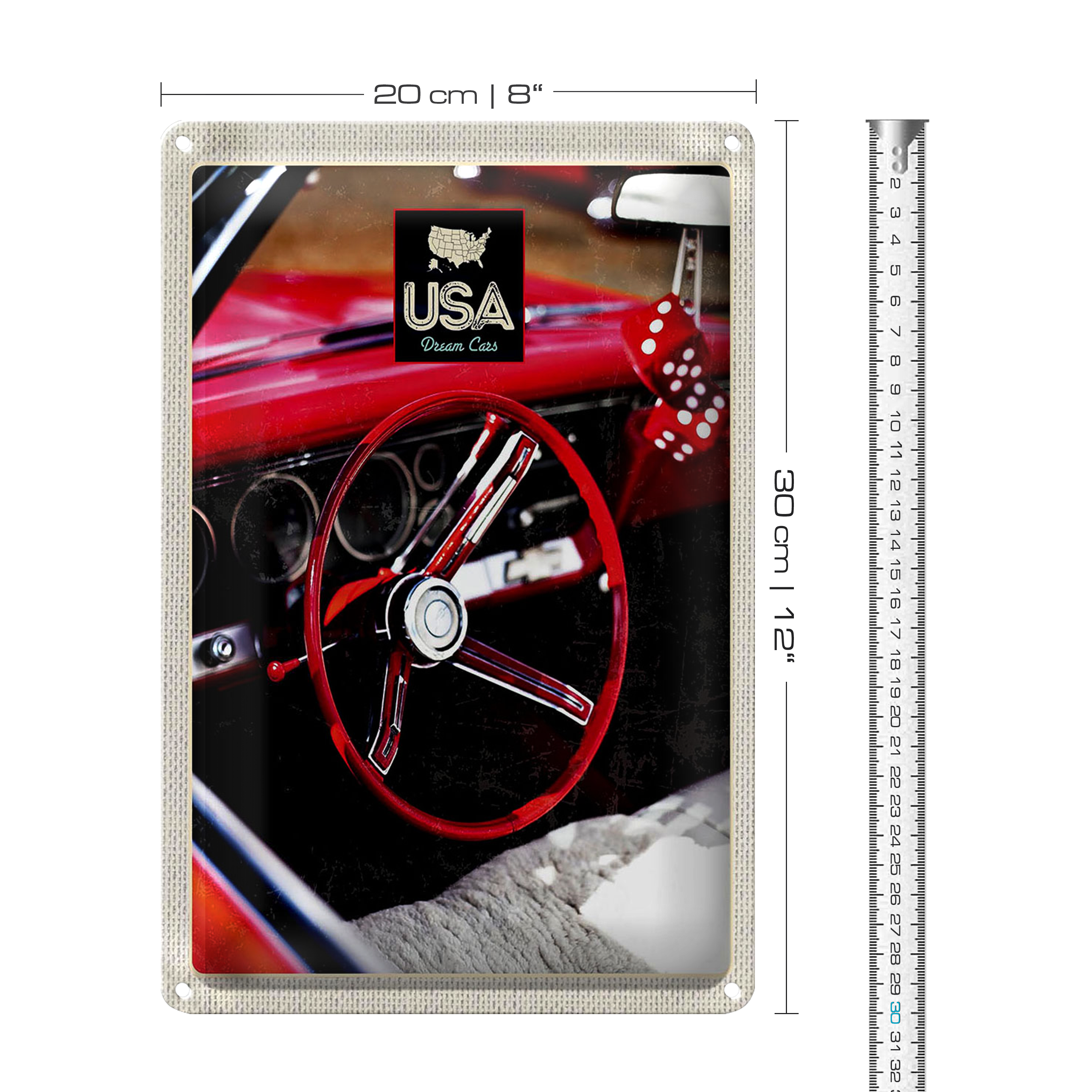 Blechschild Reise 20x30cm Amerika Oldtimer USA Rot Würfel