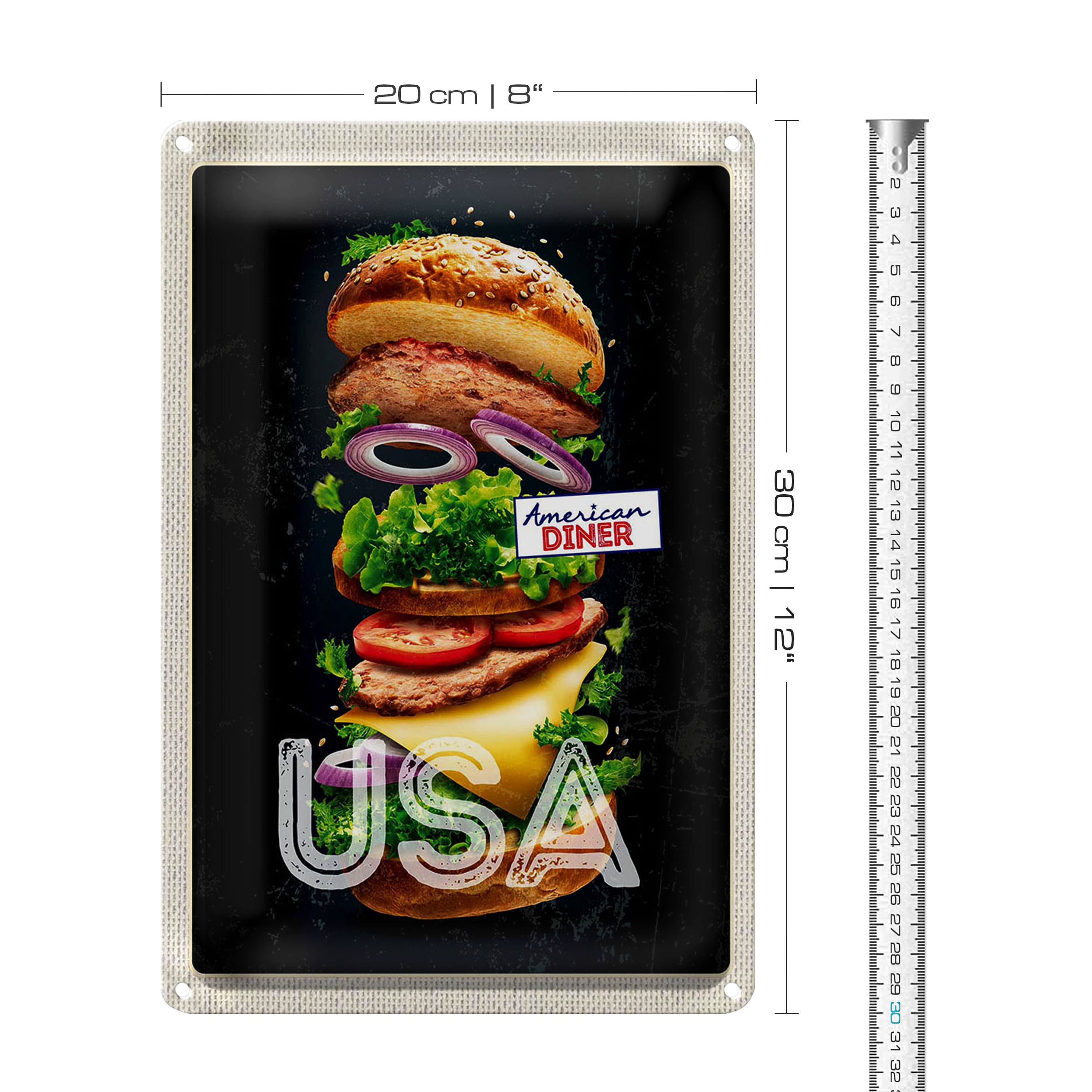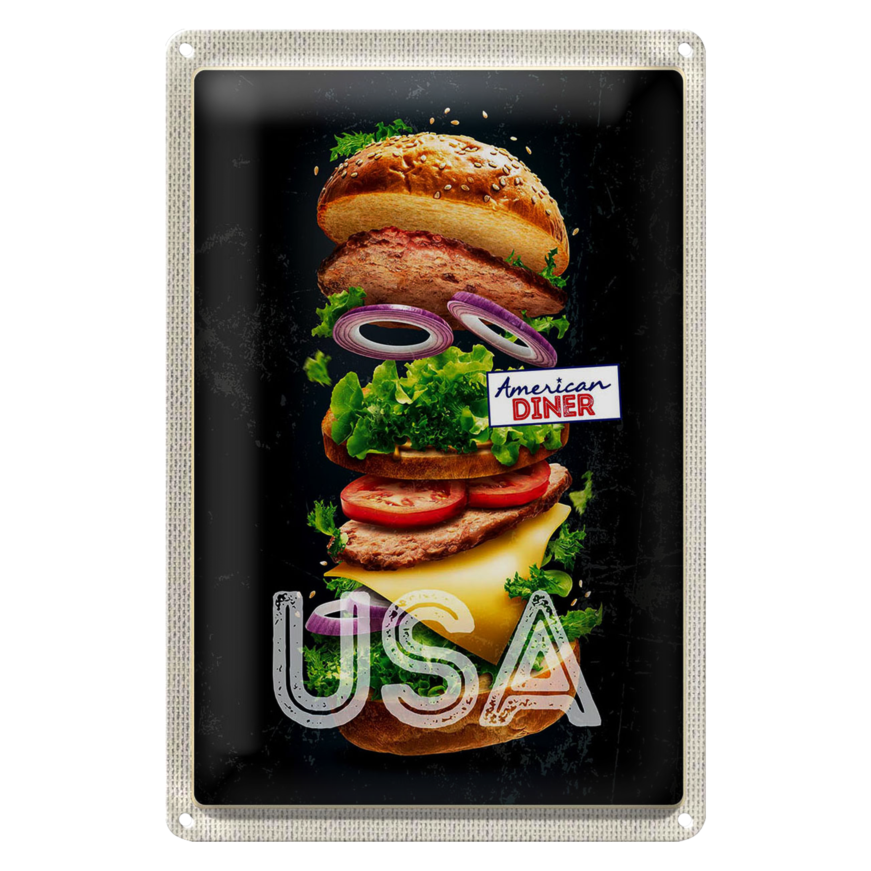 Blechschild Reise 20x30cm Amerika USA Burger Tomaten Gemälde