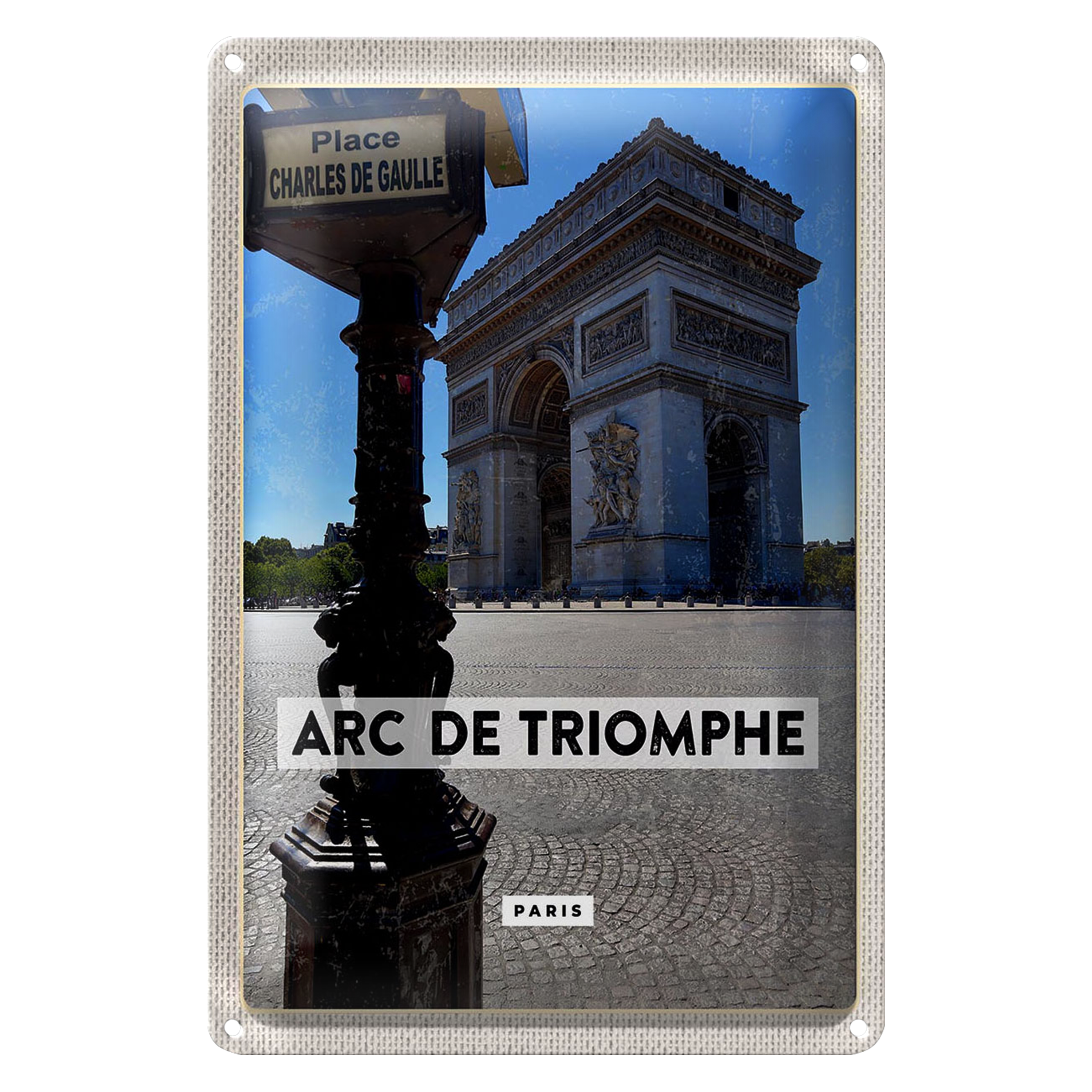Blechschild Reise 20x30cm Arc de Triomphe Paris Seitenansicht Dekoration