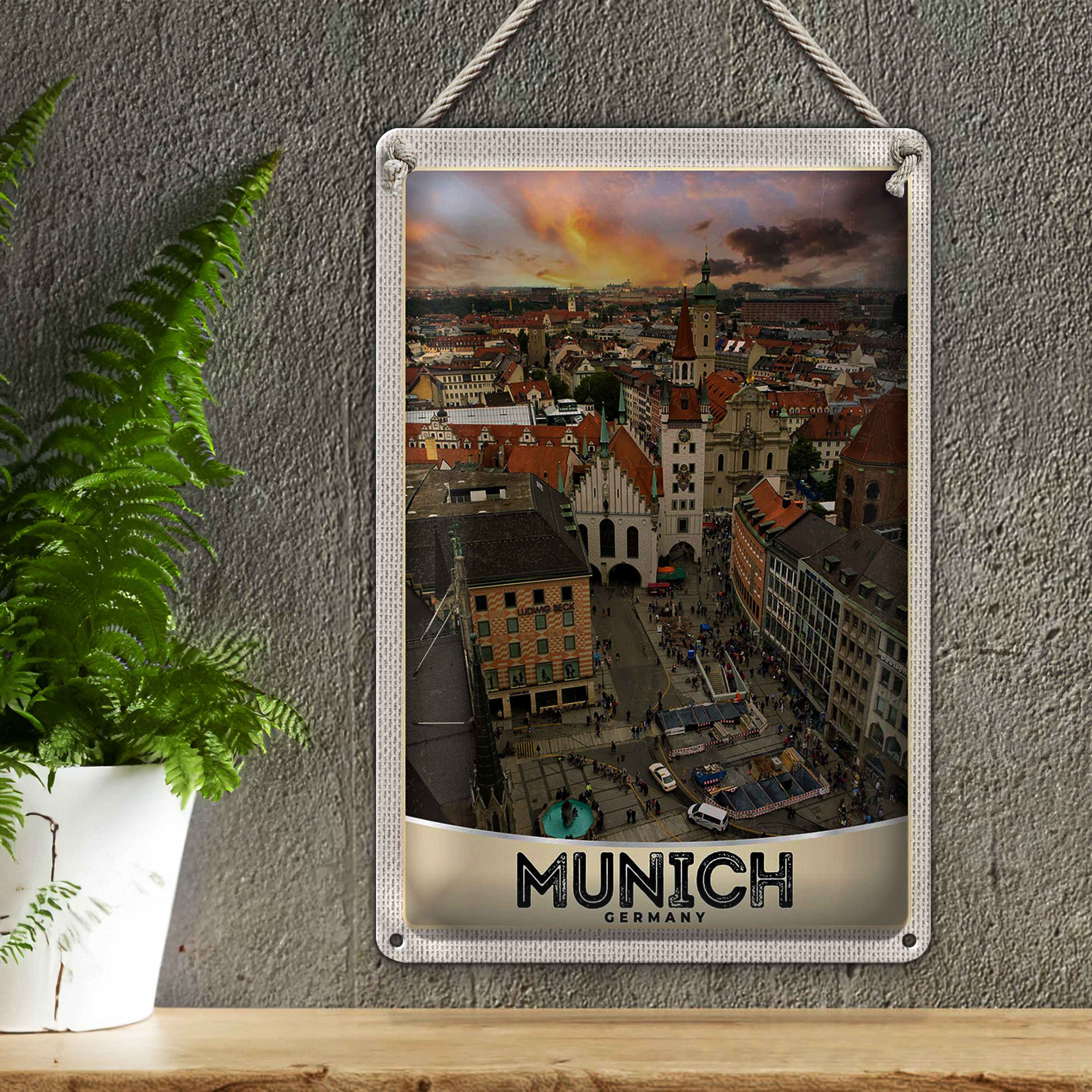 Blechschild Reise 20x30cm Aussblick auf München Deutschland