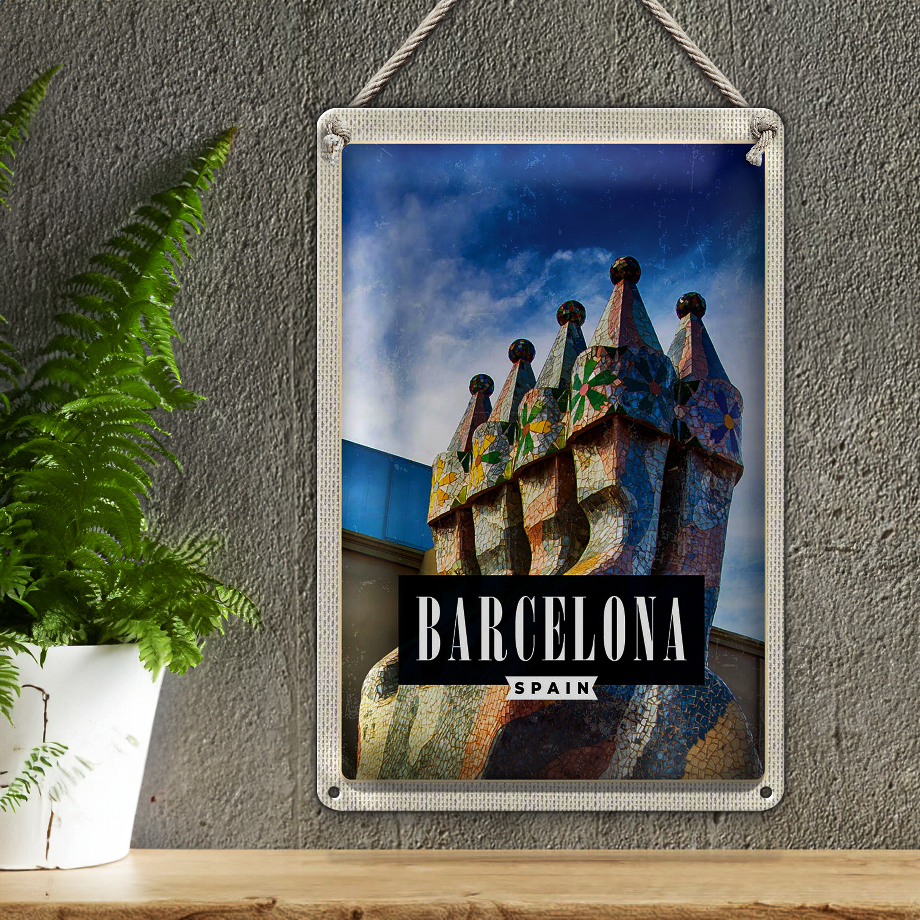 Blechschild Reise 20x30cm Barcelona Spanien Park Guell