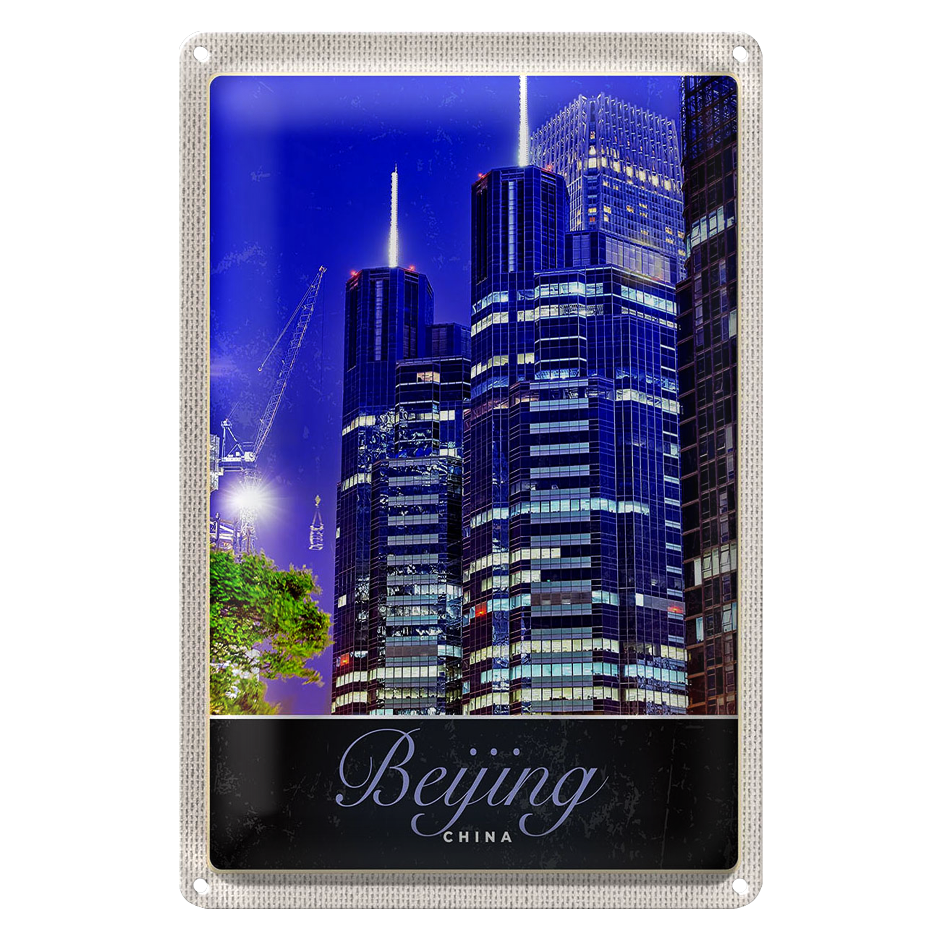 Blechschild Reise 20x30cm Beijing China Asien Hochhaus Urlaub